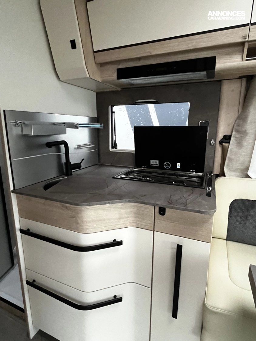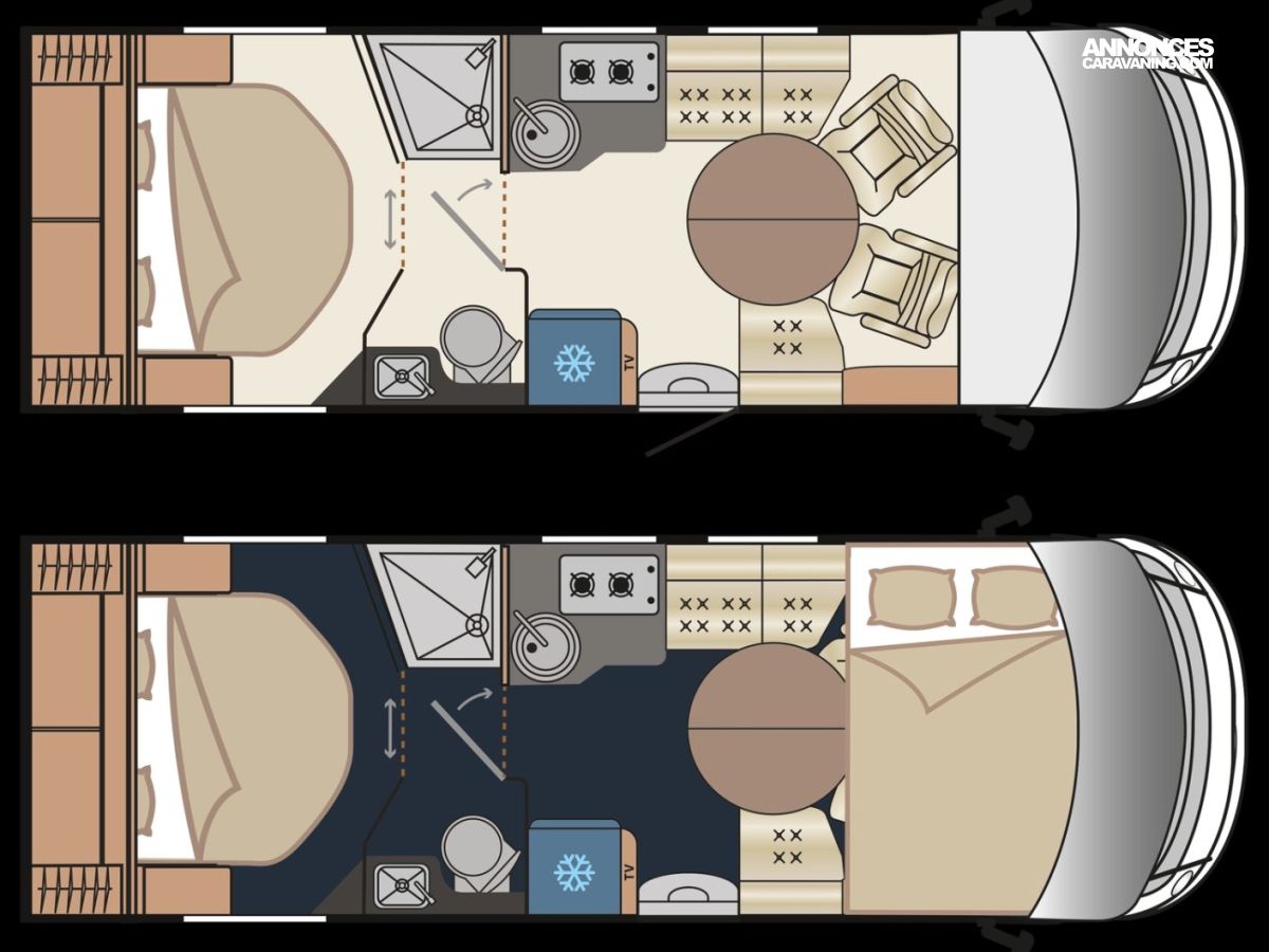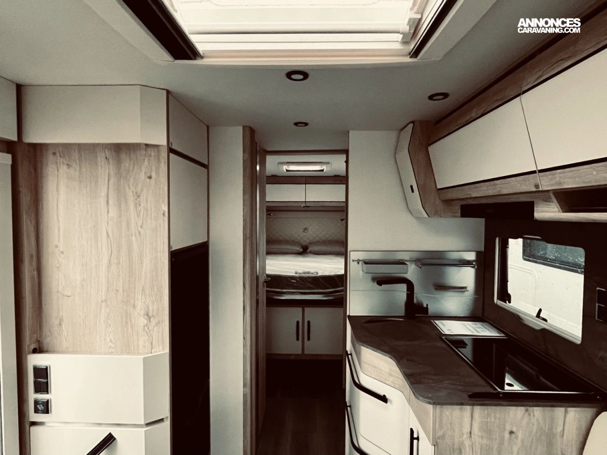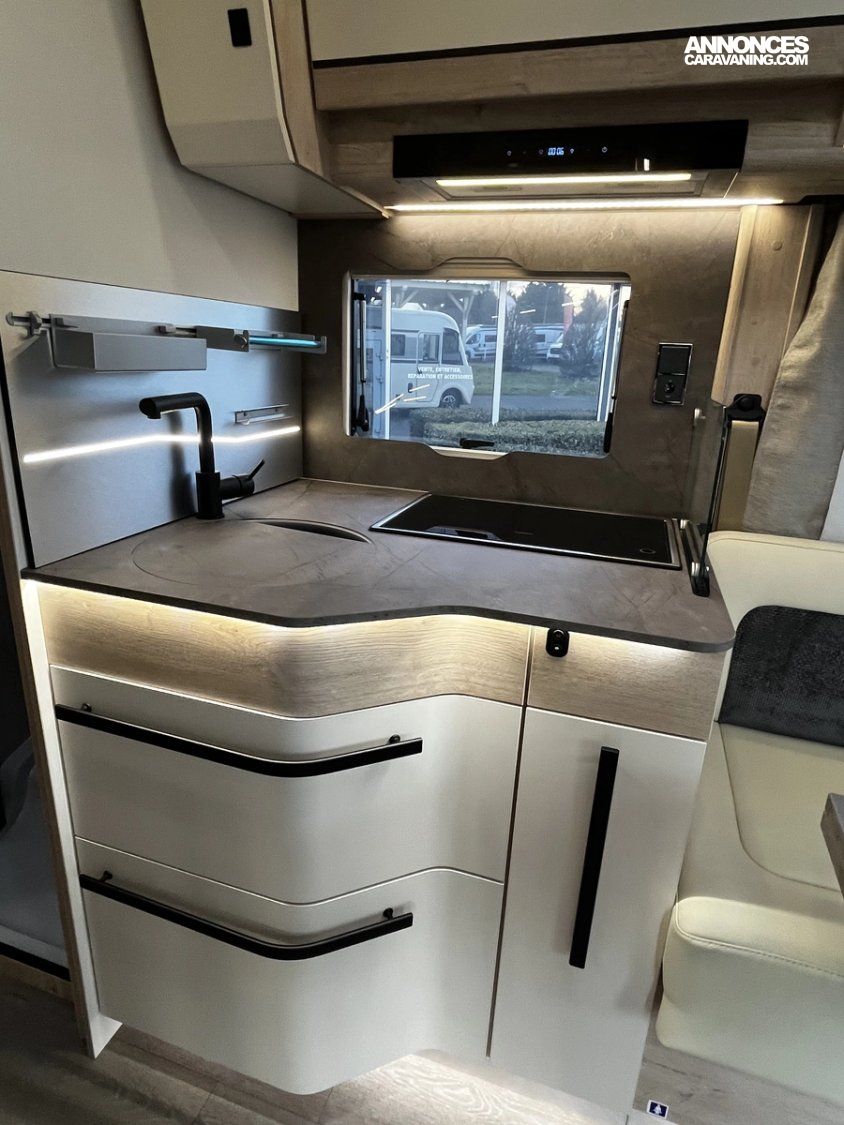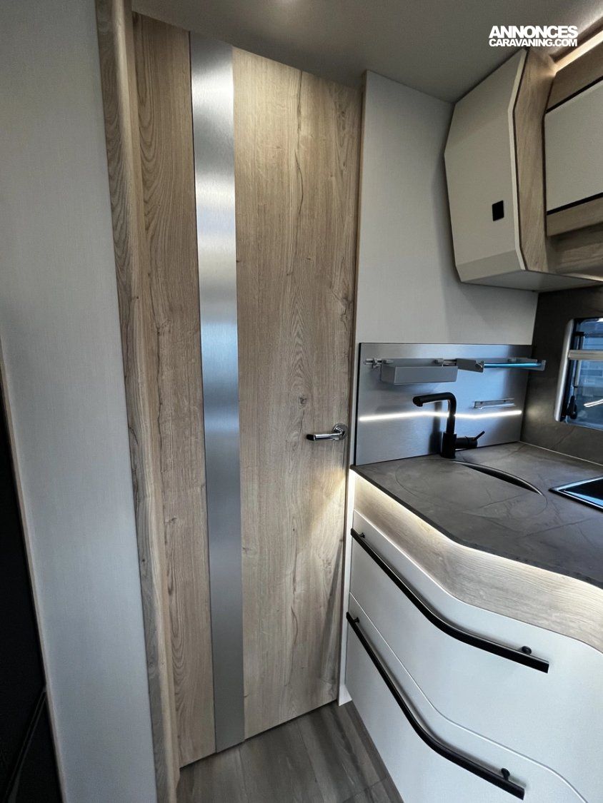 Ce modèle est équipé d’un double plancher de série permettant d’offrir des espaces de rangements supplémentaires, mais aussi une meilleure isolation thermique améliorant le confort et permettant de voyager toute l’année, même l’hiver !