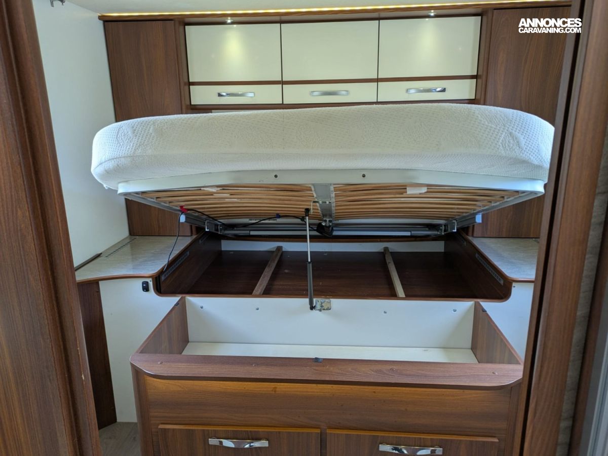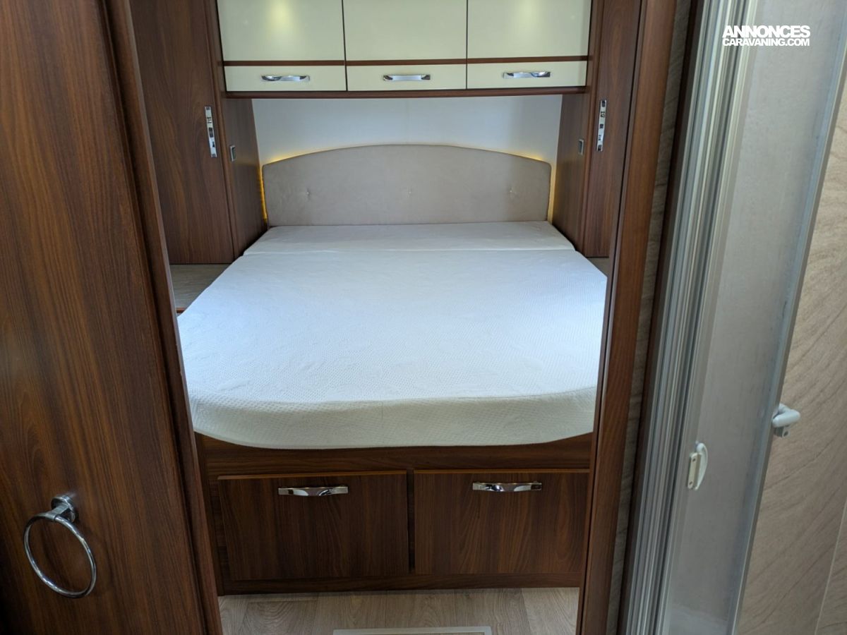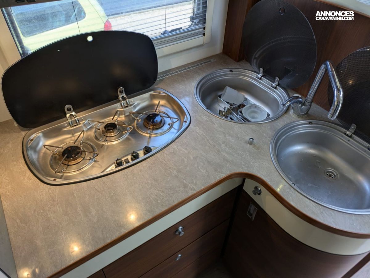 CHAUFFAGE CENTRAL ALDE, REFRIGERATEUR/CONGELATEUR, STORE EXTERIEUR 5M, GAZINIERE 3 FEUX, CUISINE EN L, DOUCHETTE EXTERIEURE, DOUCHE ET WC SEPARES, ECLAIRAGE LED, MOUSTIQUAIRE DE PORTE CELLULE, RÉFRIGÉRATEUR 190L