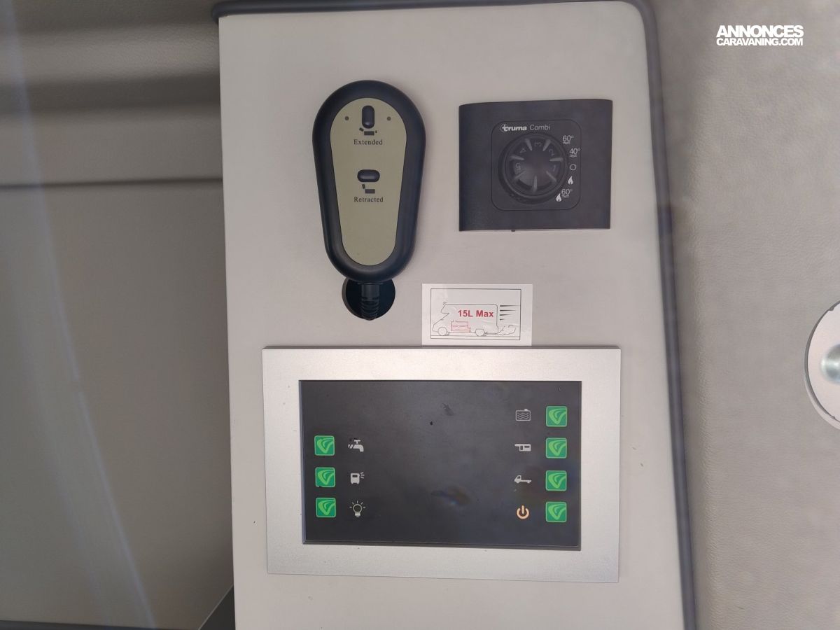 REFRIGERATEUR/CONGELATEUR, STORE EXTERIEUR 3.5M, GAZINIERE 2 FEUX, ECLAIRAGE LED, VOLET ISOTHERME INTERIEUR, REFRIGERATEUR 12V A COMPRESSION, COMBINE CHAUFFAGE / CHAUFFE-EAU TRUMA D4 GASOIL AVEC KIT ALTITUDE
