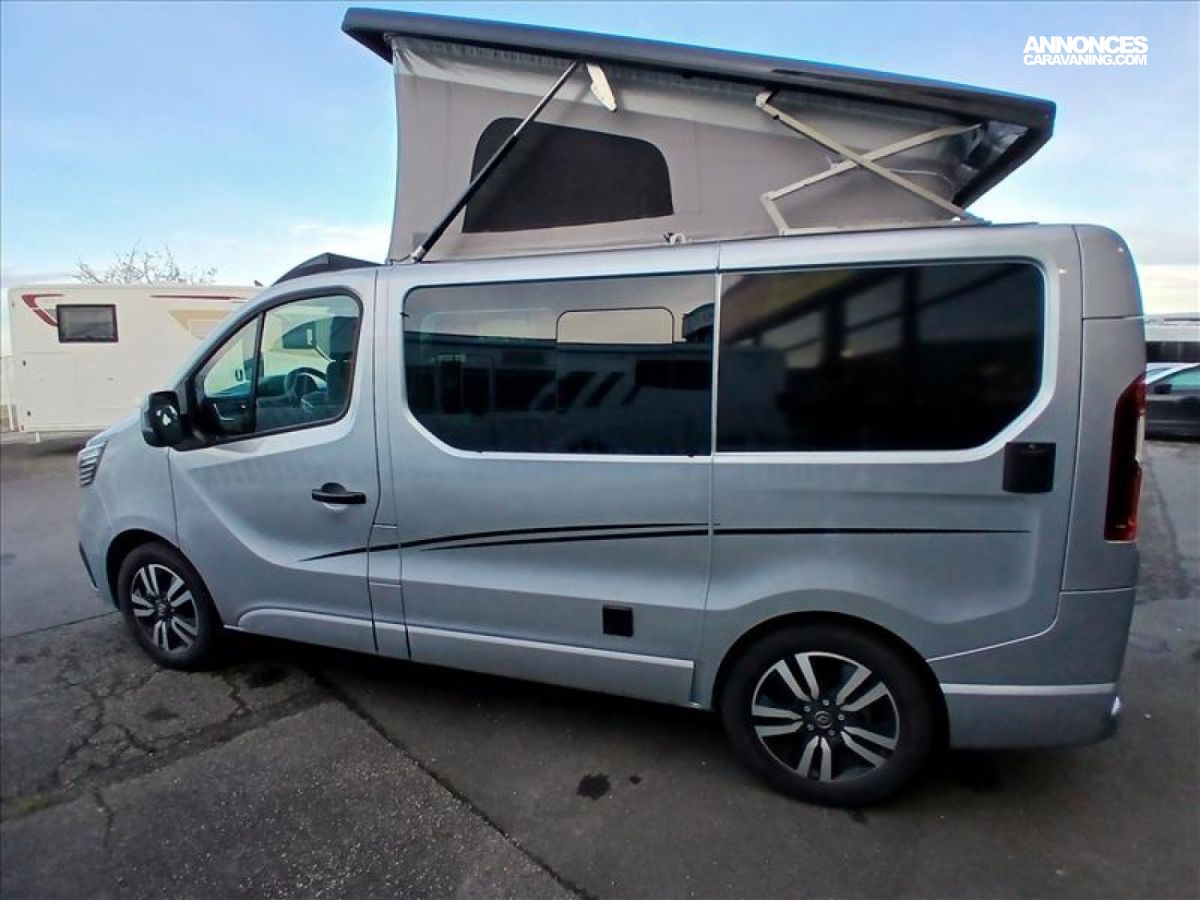 1/Jantes alu 17", 1/PACK LOOK, 1/Pare-chocs et protections latérales peintes, 1/Volant simili cuir, 2/Android auto et/ou Apple Car Play, 2/Navigation, 2/PACK EASY NAV LINK, AMB. HELSINKI, AMB. MOBILIER HIMALAYA GREY, ANTIBROUILLARDS, AUTORADIO SIMPLE DIN, BANQUETTE ARRIERE ISOFIX MODULABLE ET COULISSANTE, BOITE AUTOMATIQUE, CHASSIS GRIS HIGHLAND, CHAUFFAGE WEBASTO 2KW, CLIMATISATION DE CABINE, COFFRE A GAZ 1 BOUTEILLE 2.7KG, COUCHAGE DOUBLE DANS LE TOIT, DOUBLE AIRBAG, DOUCHETTE EXTERIEURE, ESP/ABS, RADAR ET CAMERA DE RECUL, REFRIGERATEUR A COMPRESSION 41L, REGULATEUR DE VITESSE, RENAULT TRAFIC 2.0L BKUE DCI 150CV, TABLE DINETTE, TOIT RELEVABLE ELECTRIQUE AVEC 3 FENETRES