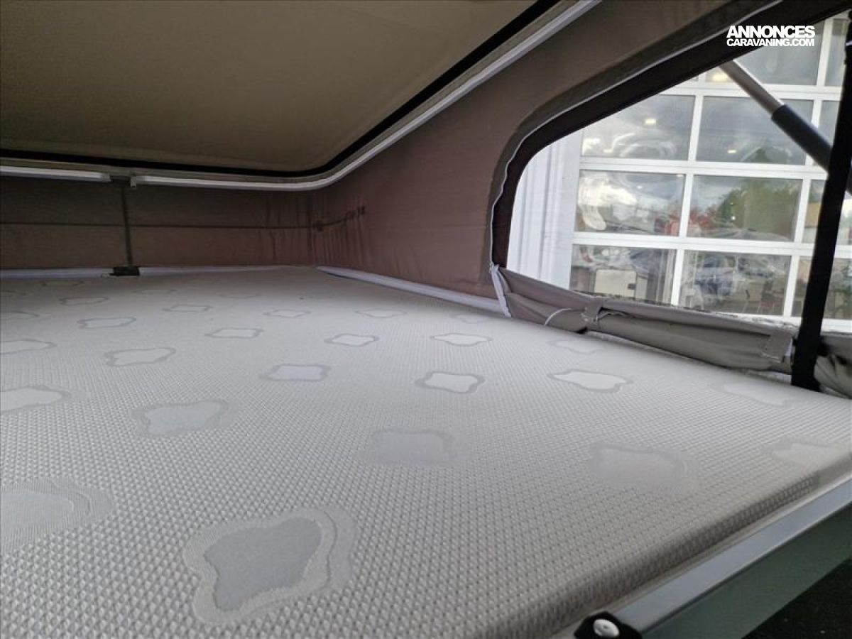 Couchage double dans le toit, Vitres et rétroviseurs à commandes électriques, Climatisation cabine, Régulateur de vitesse, Pré-équipement caméra de recul, Verrouillage centralisé à distance, ESP/ABS, Douchette extérieur, Réfrigérateur à compression 41 litres, Toit relevable électrique avec 3 fenêtres