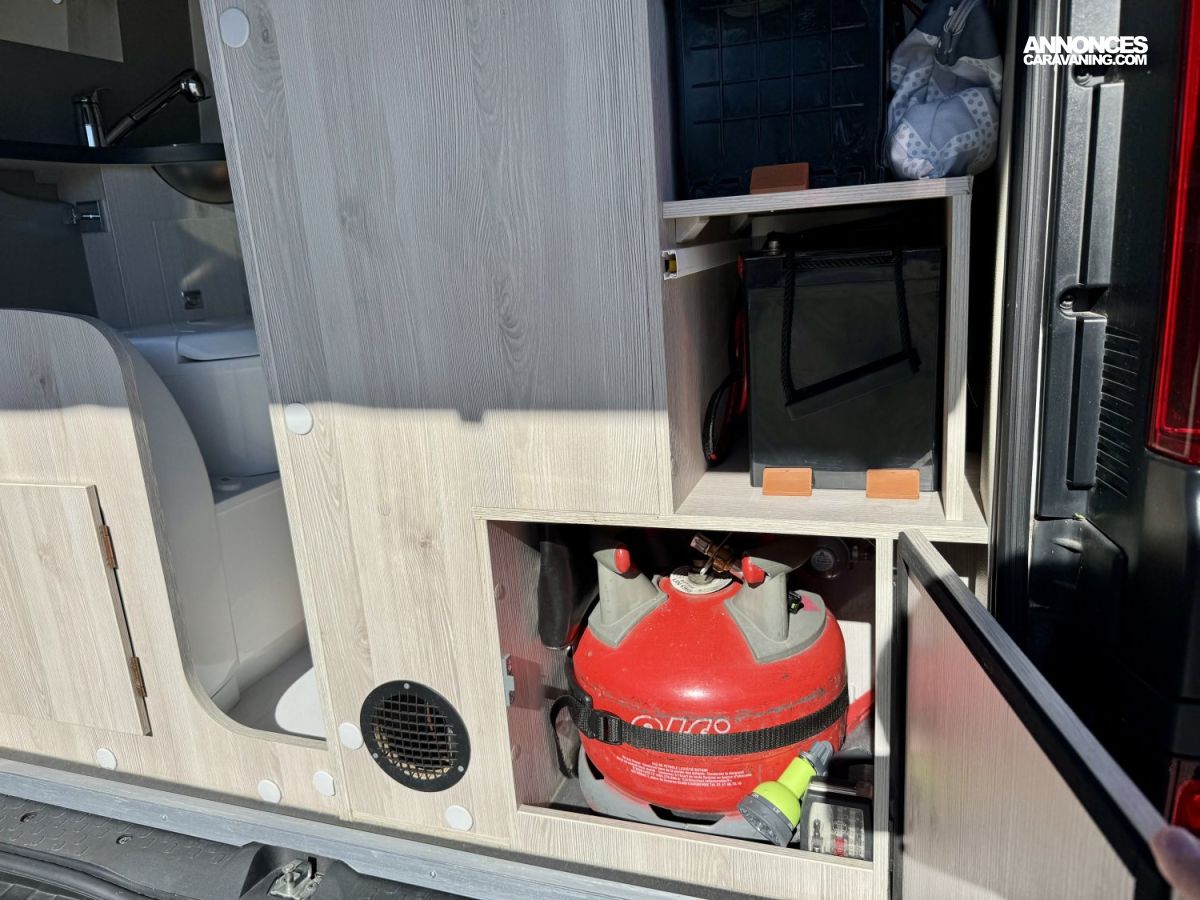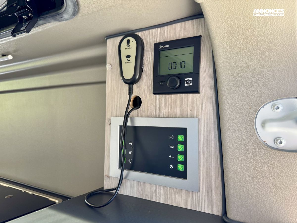 ECLAIRAGE LED, VOLET ISOTHERME INTERIEUR, STORE EXTERIEUR 2.6m, DOUCHETTE EXTERIEURE EAU CHAUDE ET FROIDE, COMBINE CHAUFFAGE / CHAUFFE EAU TRUMA D4 GASOIL AVEC KIT ALTITUDE
