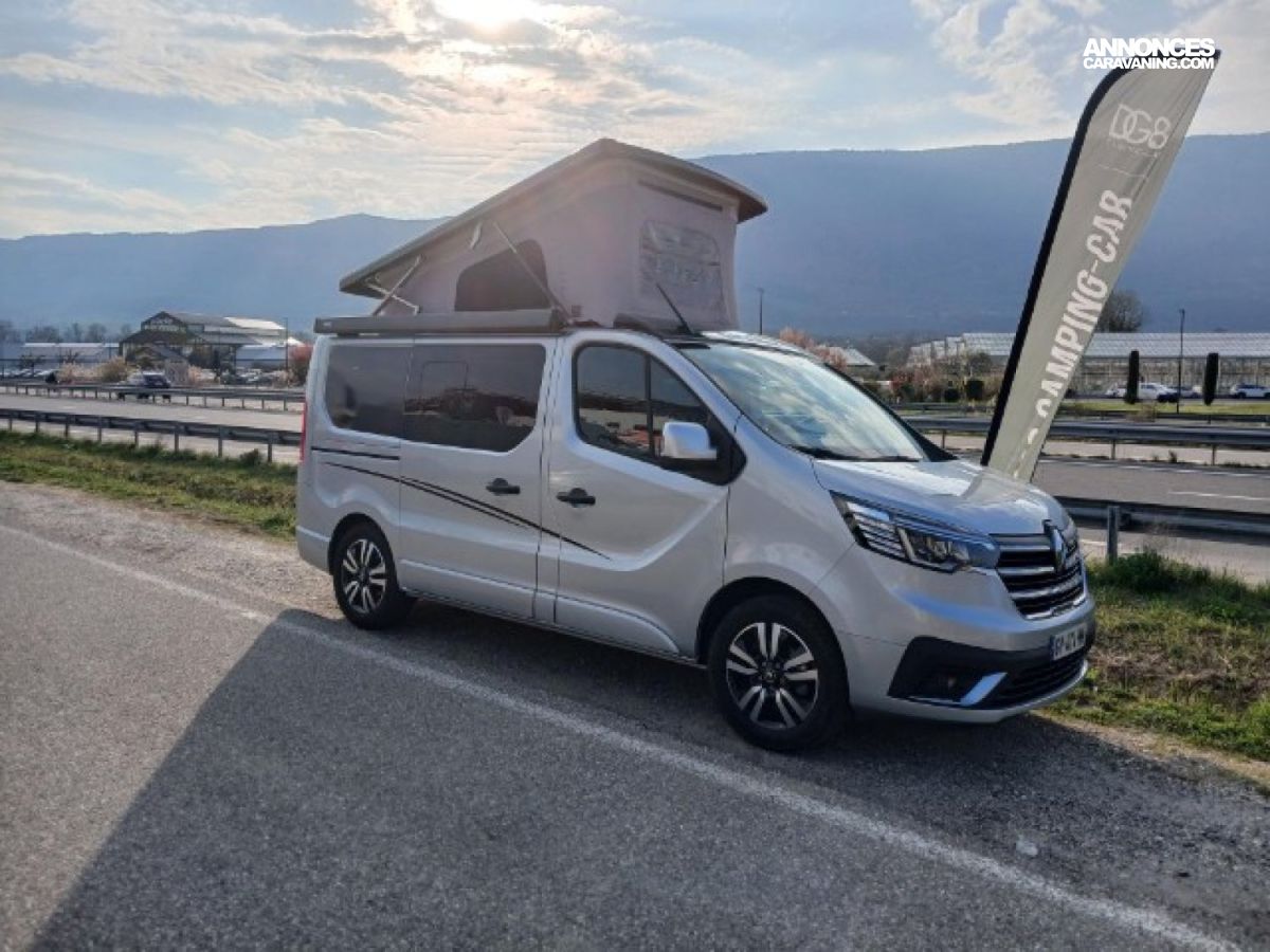 1/Jantes alu 17", 1/PACK LOOK, 1/Pare-chocs et protections latérales peintes, 1/Volant simili cuir, 2/Android auto et/ou Apple Car Play, 2/Navigation, 2/PACK EASY NAV LINK, AMB. HELSINKI, AMB. MOBILIER HIMALAYA GREY, ANTIBROUILLARDS, AUTORADIO SIMPLE DIN, BANQUETTE ARRIERE ISOFIX MODULABLE ET COULISSANTE, BOITE AUTOMATIQUE, CHASSIS GRIS HIGHLAND, CHAUFFAGE WEBASTO 2KW, CLIMATISATION DE CABINE, COFFRE A GAZ 1 BOUTEILLE 2.7KG, COUCHAGE DOUBLE DANS LE TOIT, DOUBLE AIRBAG, DOUCHETTE EXTERIEURE, ESP/ABS, RADAR ET CAMERA DE RECUL, REFRIGERATEUR A COMPRESSION 41L, REGULATEUR DE VITESSE, RENAULT TRAFIC 2.0L BKUE DCI 150CV, TABLE DINETTE, TOIT RELEVABLE ELECTRIQUE AVEC 3 FENETRES