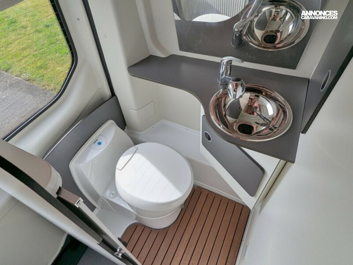- Évier & réserves eau propre (50L) et eaux usées (35L)
