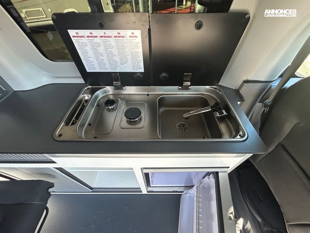 -ESP, ASR, ABS, -Alerte franchissement de ligne, -Couchage banquette : 189 x 114 cm, - Réchaud 2 feux, - Réfrigérateur 42L, - Chauffage Diesel Webasto 2 KW, - BVA, -Ecran audio 13" (Apple carplay, Android Auto), -Feux brouillard avant, -Caméra de recul, -Jantes alu 17", -Feux LED, -Aide au fonctionnement avant et arrière, - Banquette coulissante ISOFIX, -Couchage toit : 190 x 118 cm, EQUIPEMENT PORTEUR :, - Réservoir carburant 70L, -Prévention de collision, EQUIPEMENT CELLULE :, - Sièges avants pivotants, réglables et chauffants, -Vitres teintées à commande électronique, - Rétroviseurs électriques et dégivrants, -Chargeur de batterie, - Panneau solaire, - Douchette extérieure, -Reconnaissance des panneaux de vitesse, -Régulateur et limitateur de vitesse