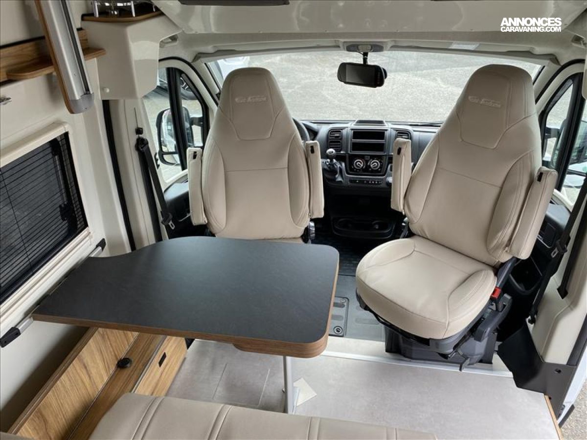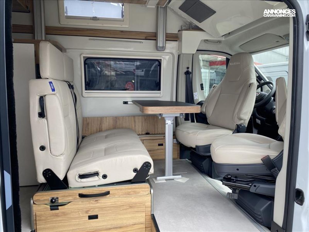 ABS, Air bag chauffeur, Air bag passager, Batterie lithium 100 Ah, Climatisation avant de cabine, Combiné chauffage - chauffe-eau Truma D4 gasoil, ESP + ASR, Hotte aspirante, Moustiquaire de porte latérale, Réfrigérateur à compression110 litres, Régulateur de vitesse, Rétro-caméra de recul, Rétroviseurs à commande électrique, Stores occultants plissés de cabine