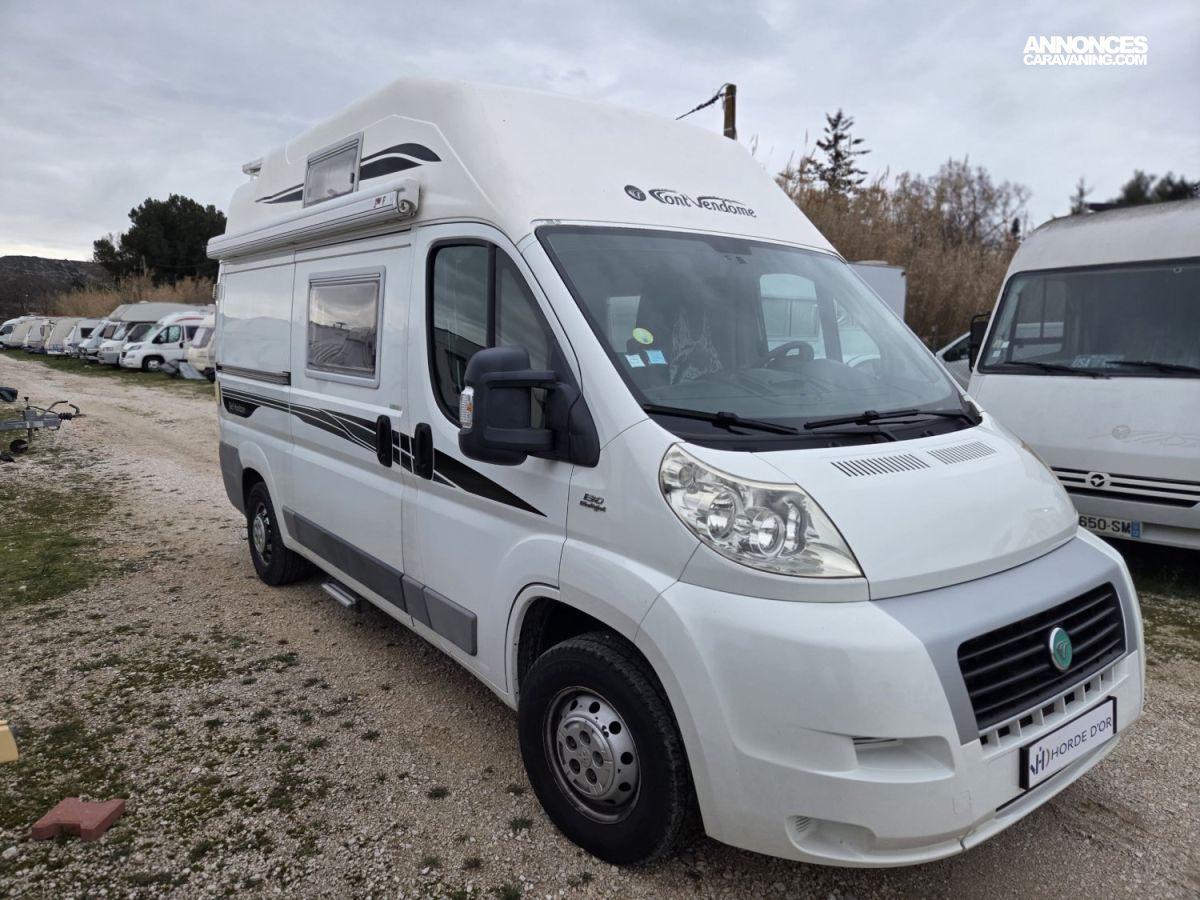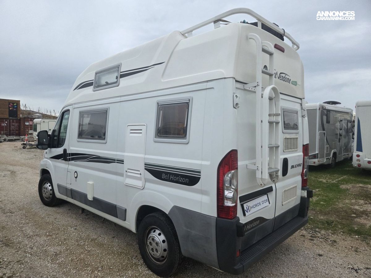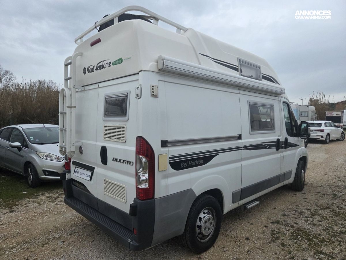 Fourgon Font Vendôme Bel Horizon de 2013, compact et très maniable, idéal aussi bien pour les escapades de week-end que pour les voyages au long cours. Son aménagement astucieux offre un espace de vie confortable avec un couchage permanent, une cuisine fonctionnelle et de nombreux rangements. Facile à conduire et économique, il se faufile aussi bien en ville que sur les routes de campagne. Réputé pour la qualité de fabrication Font Vendôme, ce fourgon allie fiabilité et confort.