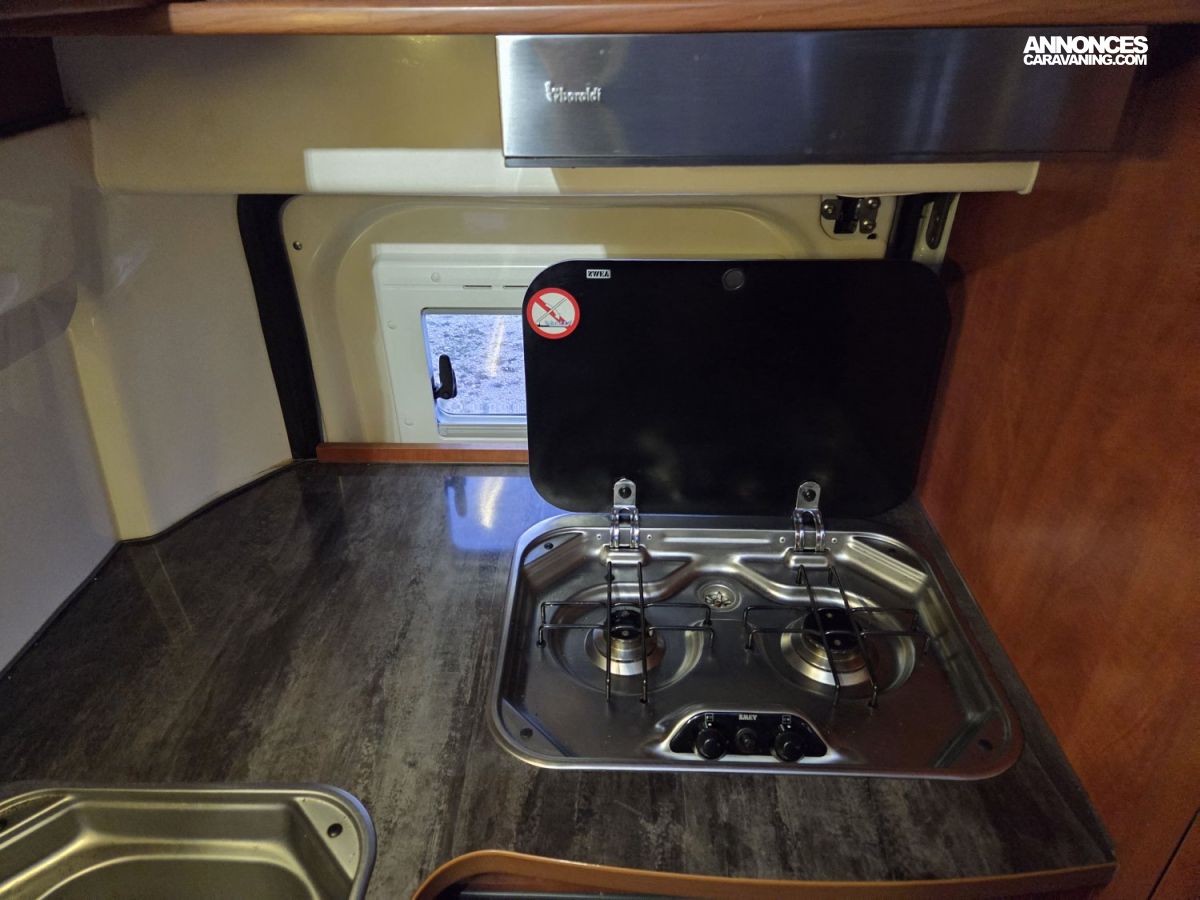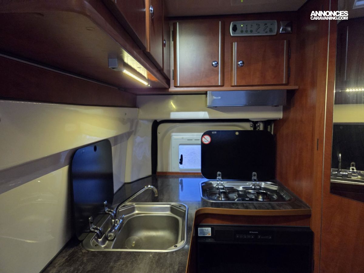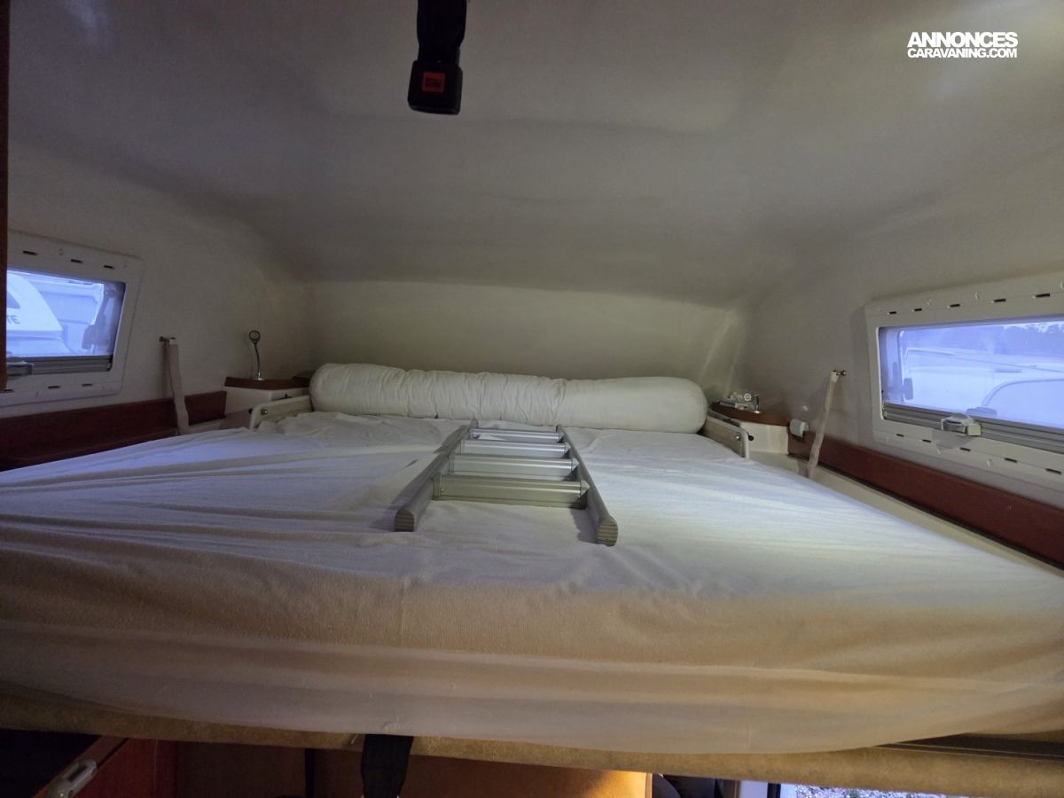 CHAUFFAGE CARBURANT, STORE EXTERIEUR 3M, GAZINIERE 2 FEUX, FENETRE SDB, CUISINE EN L, ECLAIRAGE LED, HOTTE ASPIRANTE, MOQUETTE CABINE, REFRIGERATEUR TRI MIX, STORES PLISSES DE CABINE