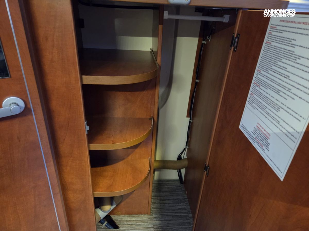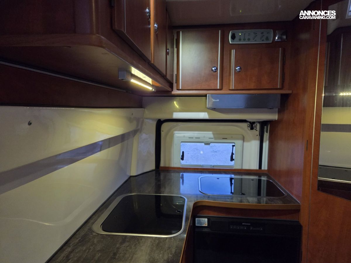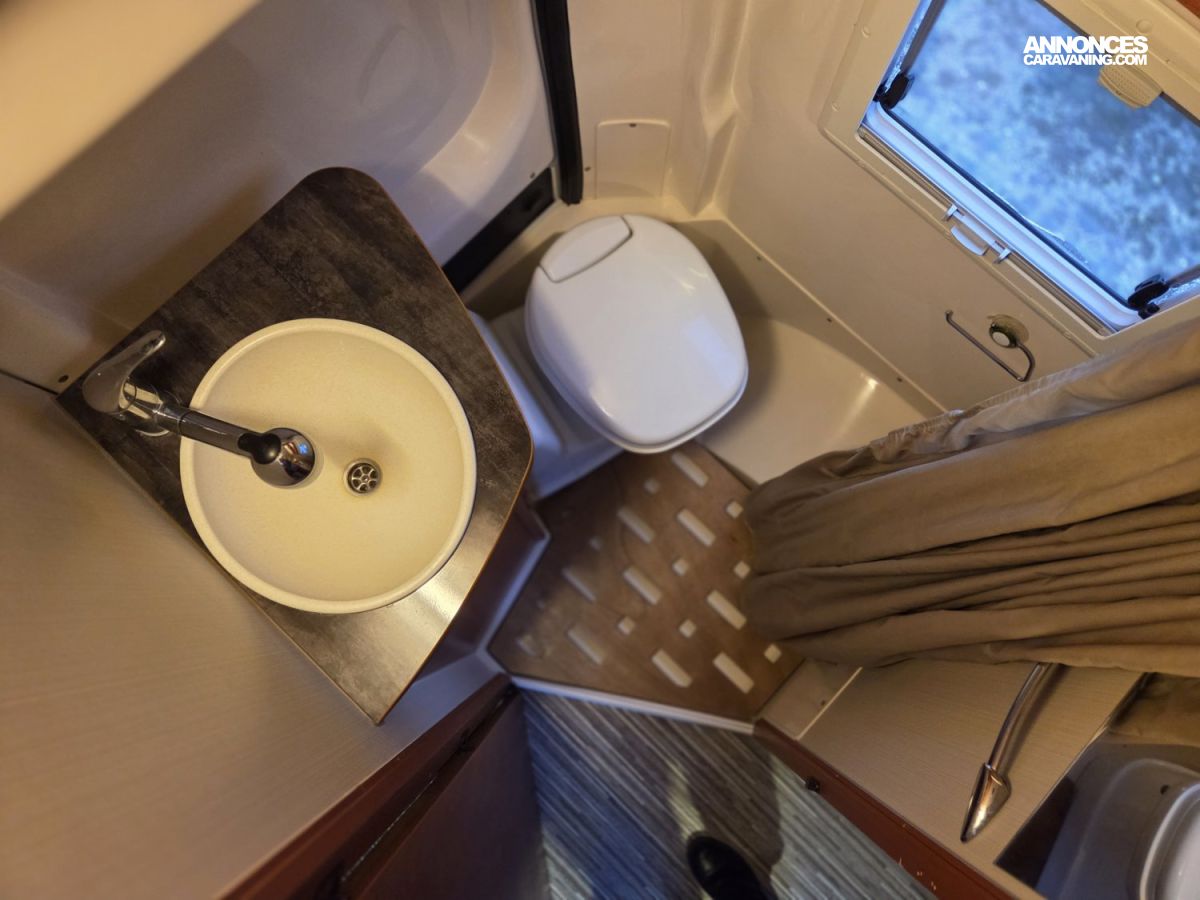 CHAUFFAGE CARBURANT, STORE EXTERIEUR 3M, GAZINIERE 2 FEUX, FENETRE SDB, CUISINE EN L, ECLAIRAGE LED, HOTTE ASPIRANTE, MOQUETTE CABINE, REFRIGERATEUR TRI MIX, STORES PLISSES DE CABINE