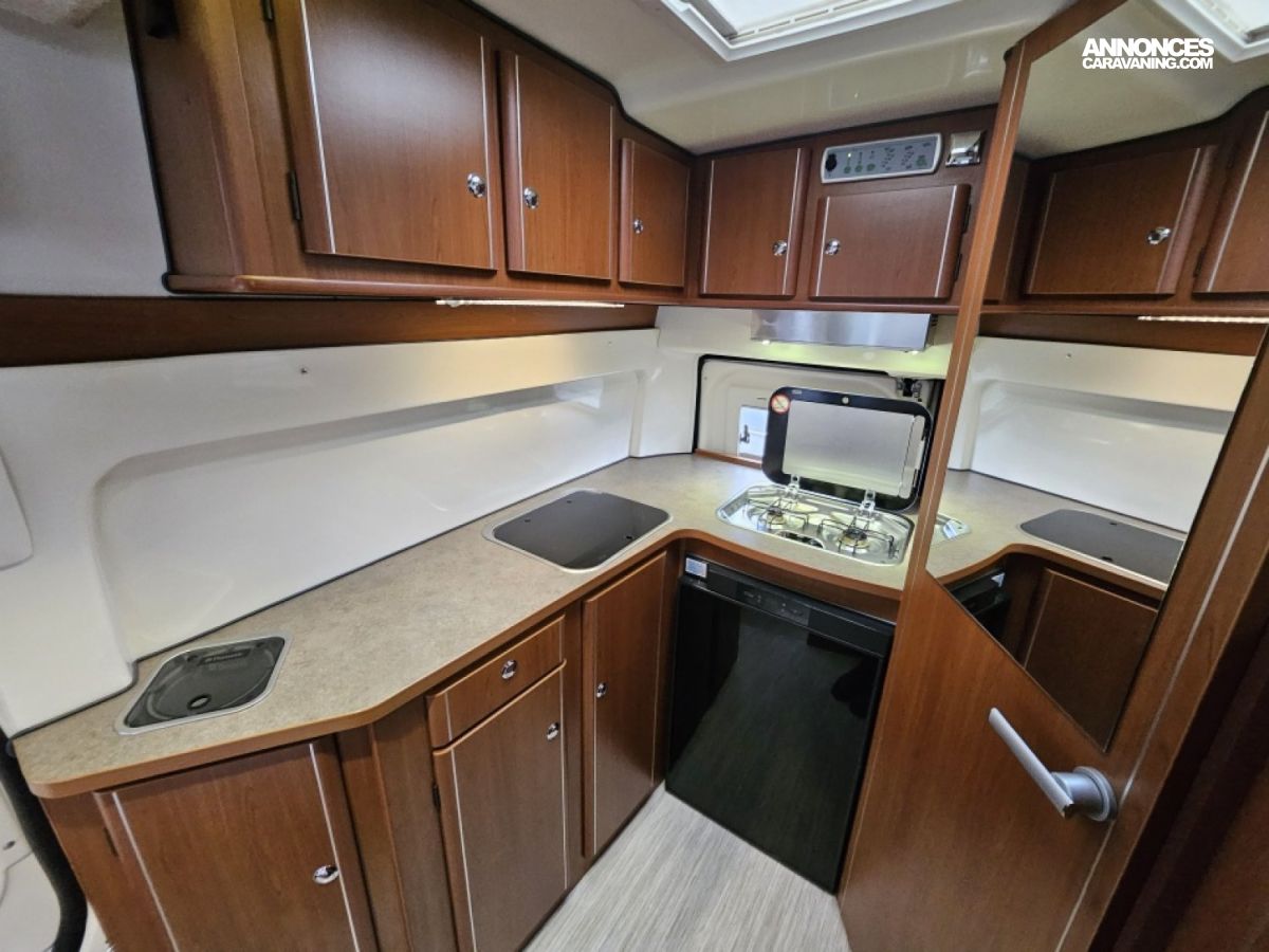 Lit pavillon 2 places. Lit dinette 2 places. Salle de bain et toilette. Moustiquaires + stores occultants. Siège conducteur et passager pivotants grande cuisine en L – réfrigérateur dometic 92 litres avec freezer – grande cabine de douche - Gazinière 2 feux - Fenêtre de salle de bain - Éclairage LED - Hotte aspirante – poubelle de plan de travail -