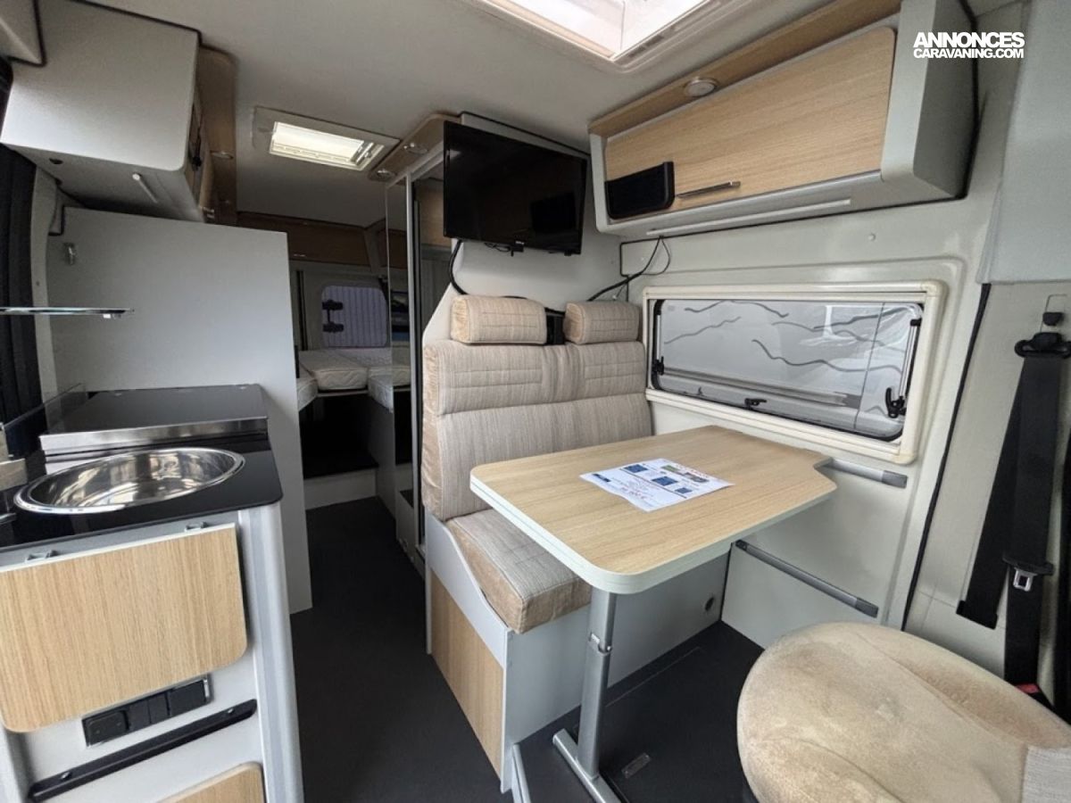 Antenne sat automatique, Attelage, Batterie Lithium, Camera de recul, Clim moteur, Panneau solaire, Régulateur de vitesse, Store extérieur, TV.