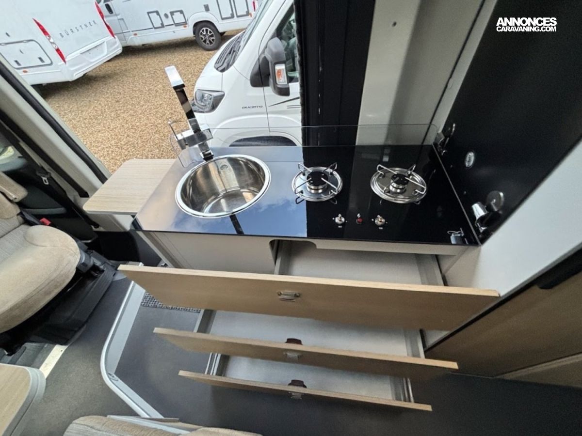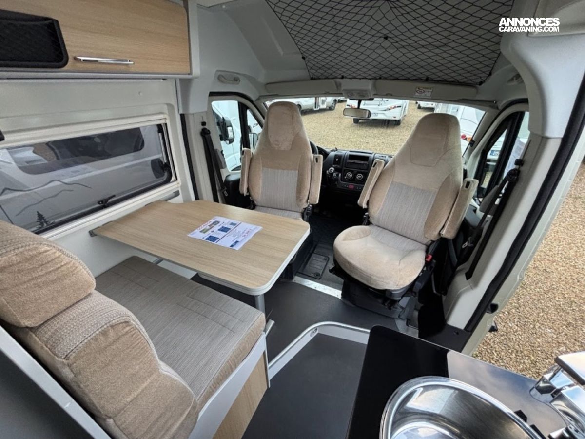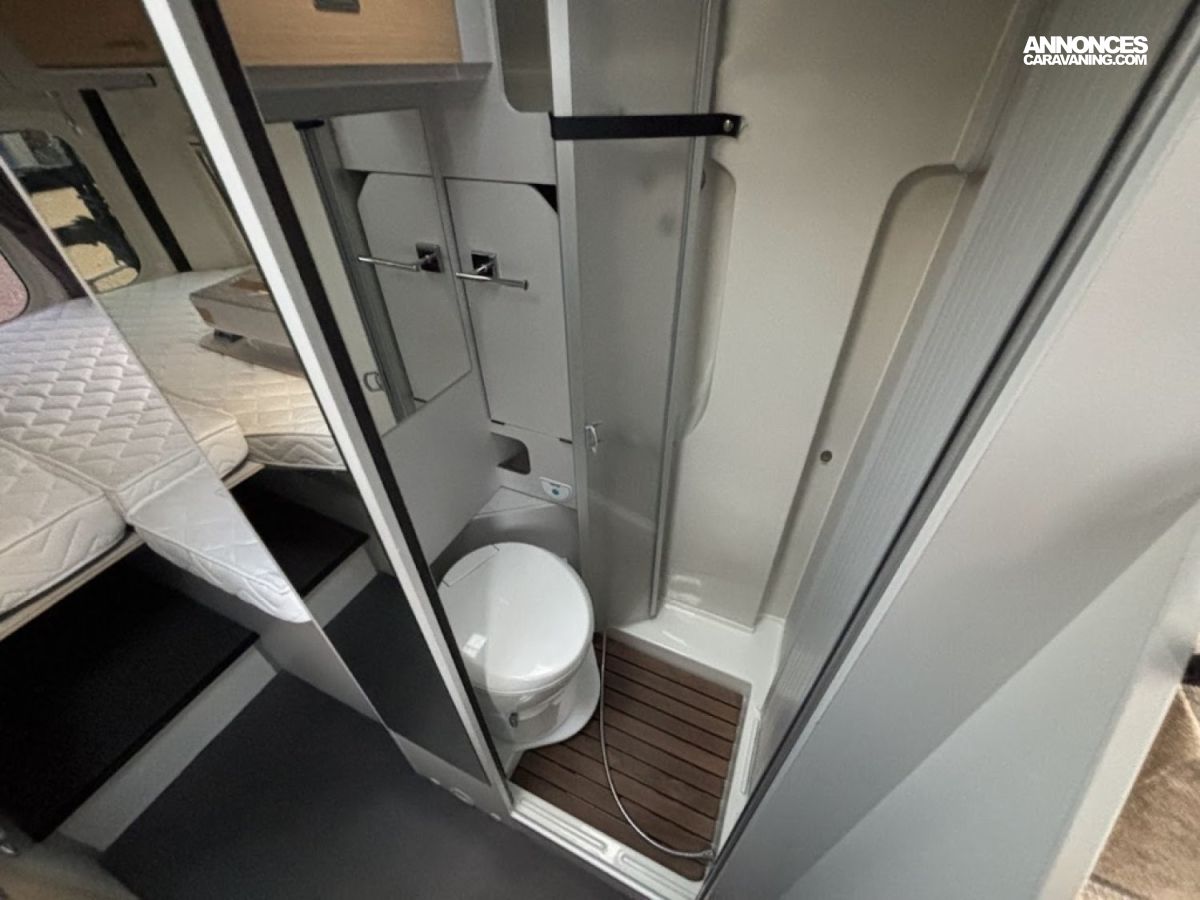 Cuisine en long, Douche à vario, Lit dînette avant, lit jumeaux, Salon avant sièges pivotants, WC Cassette.