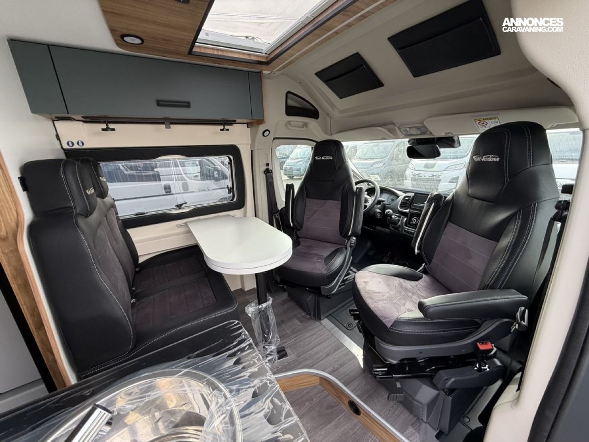 AIDE A LA CONDUITE : ESP /ABS / TRACTION +, PACK MULTIMEDIA, CHAUFFAGE CHAUFFE EAU TRUMA D4 GASOIL AVEC KIT ALTITUDE, COMMANDE RADIO AU VOLANT, REGULATEUR / LIMITATEUR DE VITESSE, JANTES ALU 16, PARE CHOCS PEINTS, GRIS FER, PACK LOISIRS : store + panneau solaire, REFRIGERATEUR A COMPRESSION 138 L, ORDINATEUR DE BORD, BANQUETTE ISOFIX, BATTERIE LITHIUM 120 AH, EAU PROPRE 100 L / USEES 100 L, FEUX ANTIBROUILLARDS AVANT