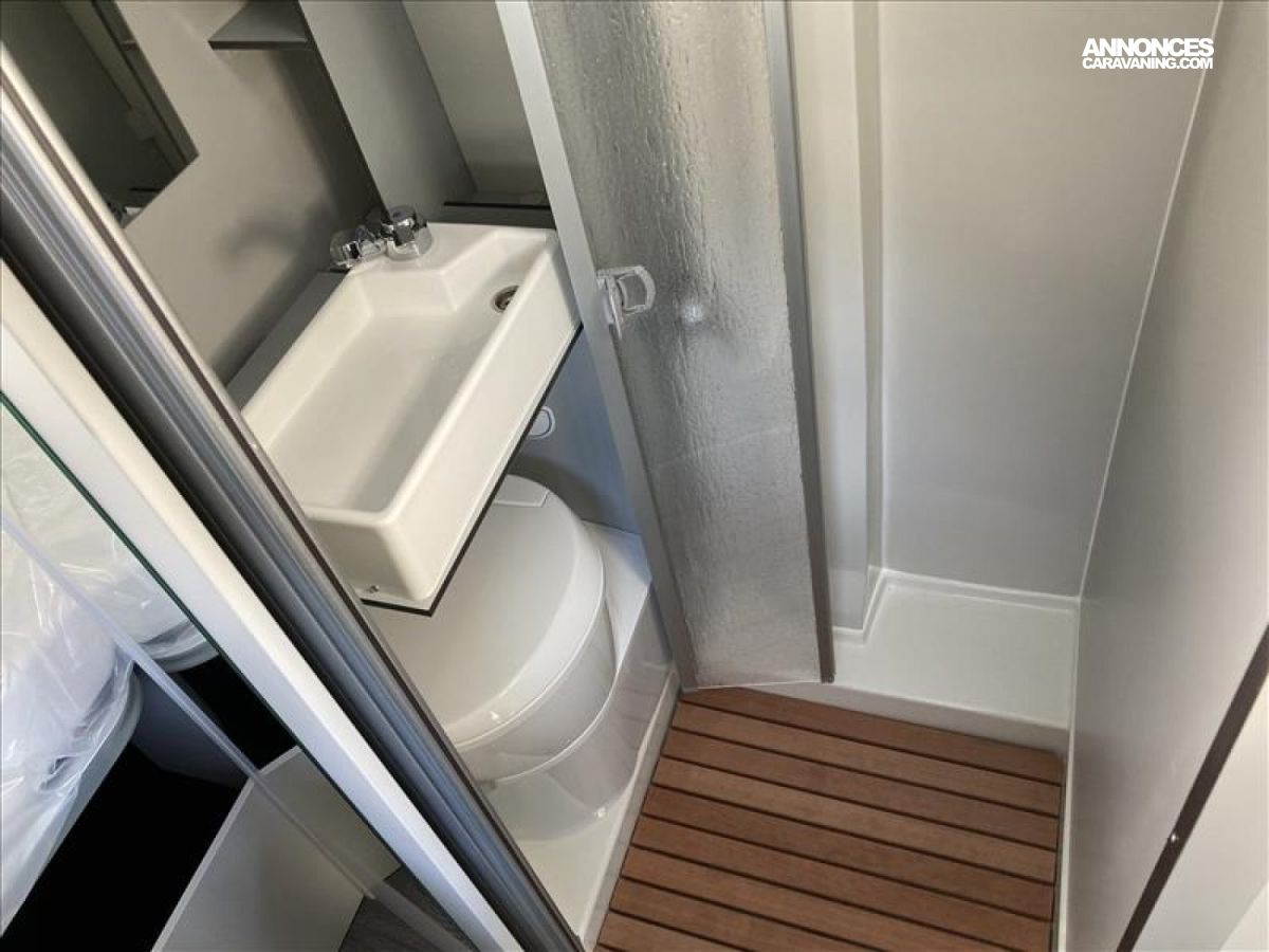 Anti brouillards, Batterie lithium 100 Ah, Climatisation de cabine, Régulateur de vitesse, Douchette extérieure porte arrière, Auto-radio avec commandes au volant, Combiné chauffage/ chauffe-eau Truma D4 go avec kit altitud, Caillebotis de douche, Rideaux isothermes arrière, Découpe de cabine, Pare-chocs avant peint, Air bags conducteur et passager, Rétro-caméra de recul, Sonde de réchauffage du réservoir des eaux usées, ABS / ESP / TCS