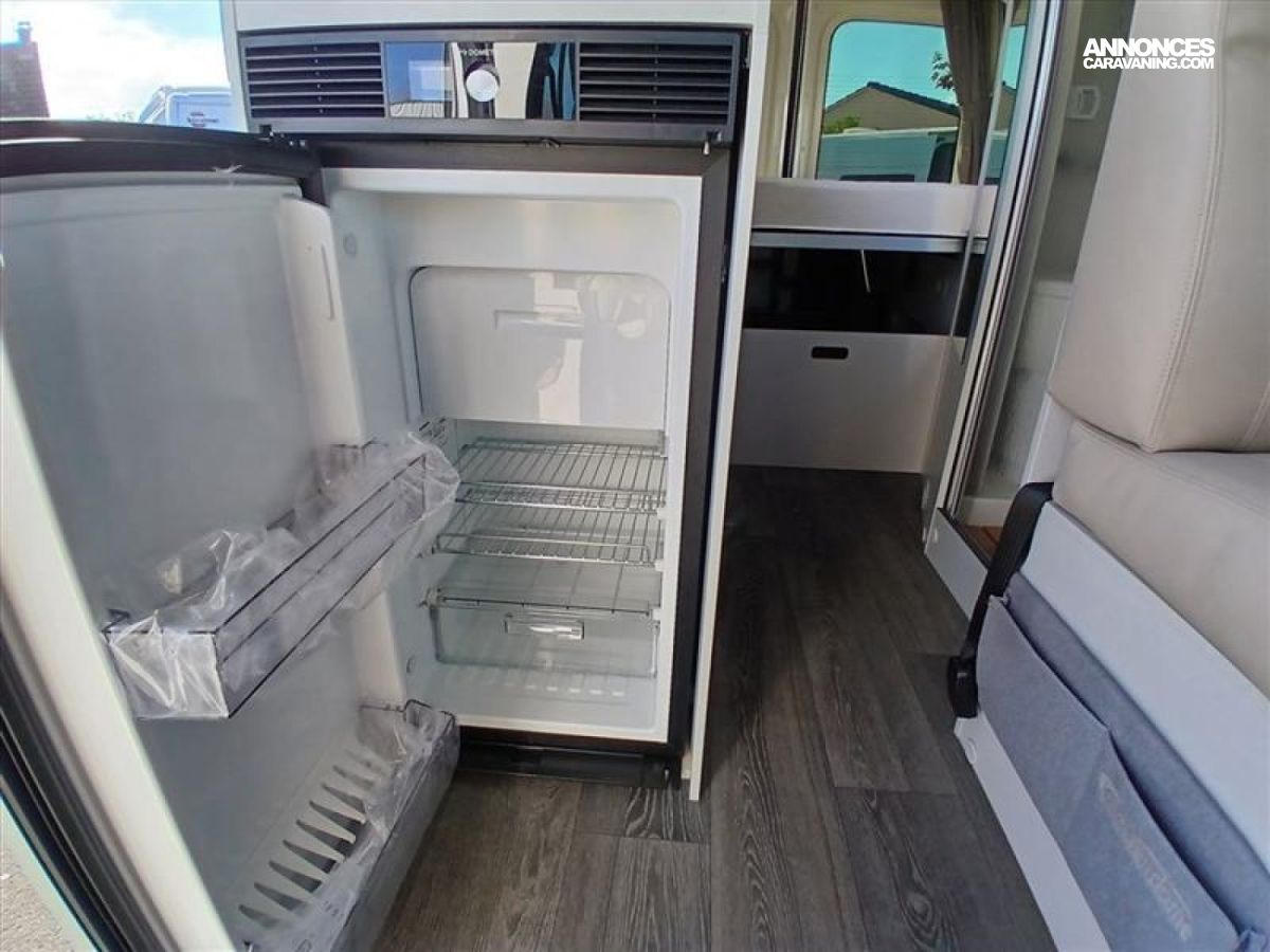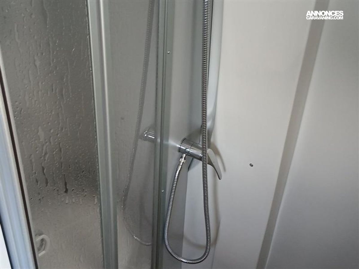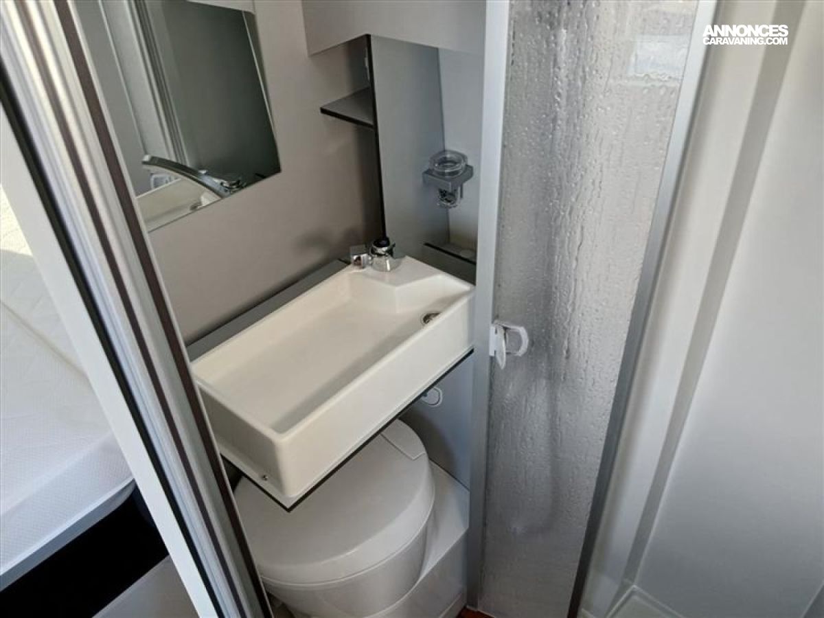 Régulateur de vitesse, Pare-chocs avant peint, Rideaux isothermes arrière, Caillebotis de douche, Combiné chauffage/ chauffe-eau Truma D4 go avec kit altitud, Anti brouillards, Rétro-caméra de recul, Sonde de réchauffage du réservoir des eaux usées, ABS / ESP / TCS, Auto-radio avec commandes au volant, Douchette extérieure porte arrière, Batterie lithium 100 Ah, Climatisation de cabine, Air bags conducteur et passager