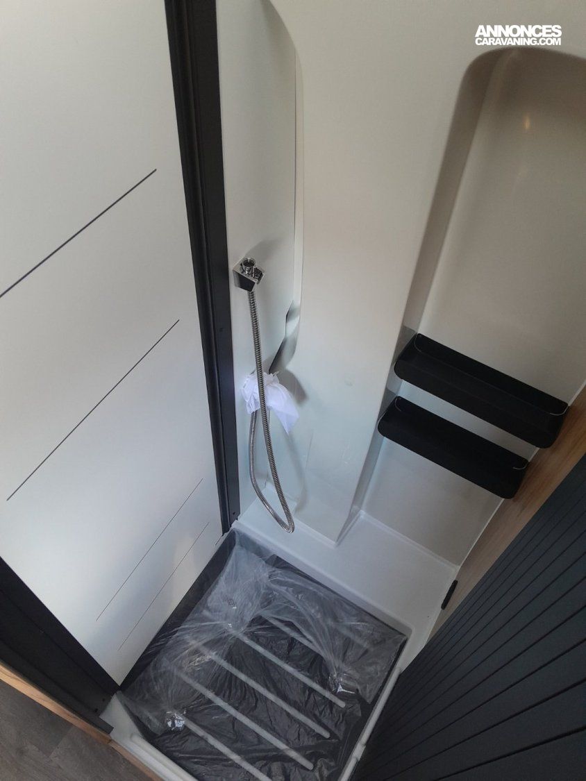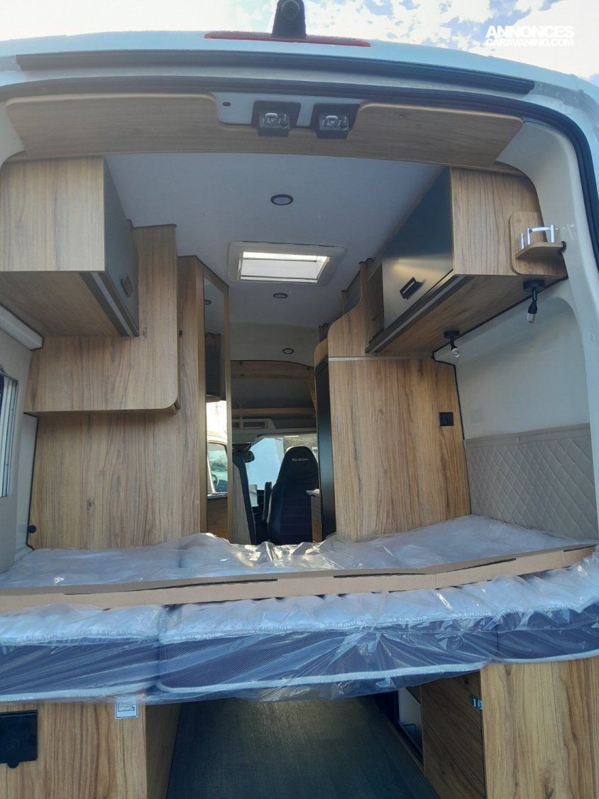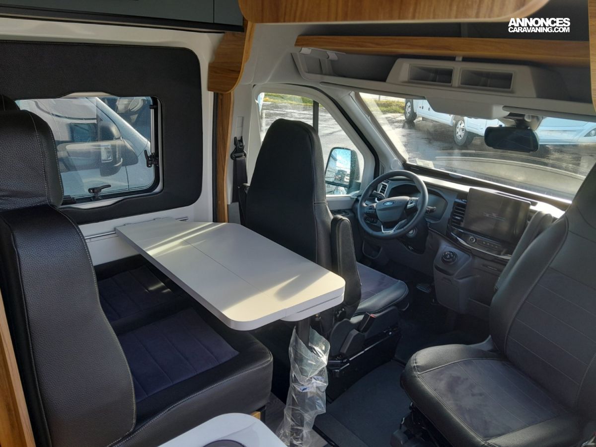 boîte auto 165Ch, pack style Ford ( panneau solaire, store, batterie Lithium 120Ah, jantes alu 16", rétro caméra de recul), chauffage/chauffe-eau Truma D4 gasoil avec kit altitude, autoradio, frigo à compression 138L, salle de bain modulable avec caillebotis de douche, booster DC-DC, moustiquaires et occultants, douchette extérieure, aide à la conduite.