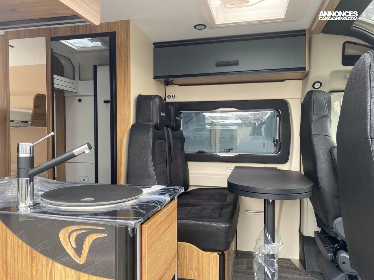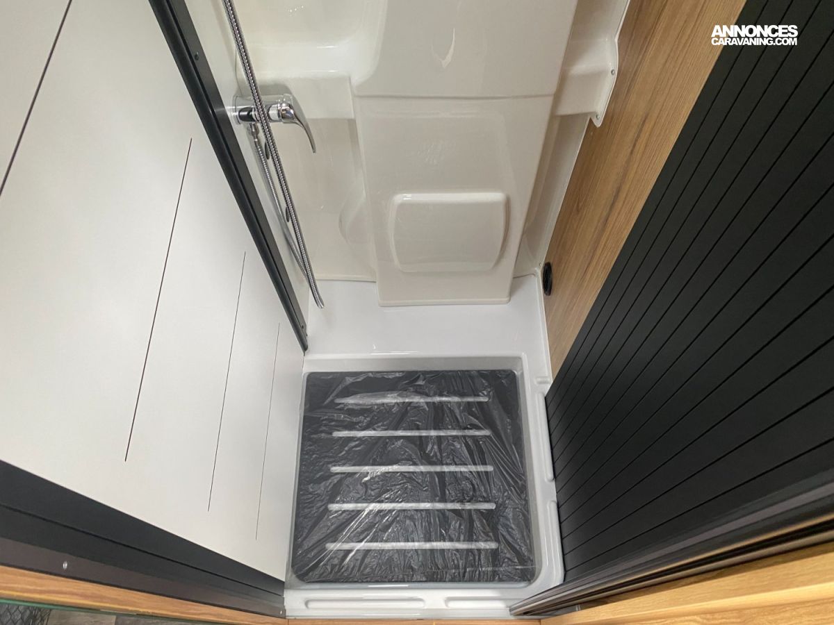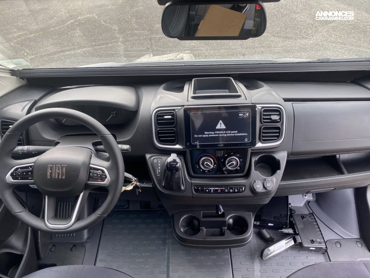Panneaux solaires, Reconnaissance des panneaux de vitesse, Réfrigérateur à compression 138 L, Jantes Alu 16", Limiteur de vitesse, Moustiquaire de porte latérale, Pack multimédia avec Apple CarPlay Android Auto, Régulateur de vitesse, Sonde de réchauffage du réservoir des eaux usées, Alerte de franchissement de ligne, Caillebotis de douche, Chargeur de batterie DC-DC, Boîte de vitesse automatique, Combiné chauffage - chauffe-eau Truma D4 gasoil avec kit alt, Batterie Lithium 120 Ah, Essuie-glaces avant automatiques avec détecteur de pluie, Pack Safety, Rétro-camera de recul, Rétroviseurs à commande électrique et dégivrants, Store auvent, Suspension renforcée, Système de prévention de collision, Douchette extérieure eau froide, Climatisation avant de cabine, Airbags conducteur et passager