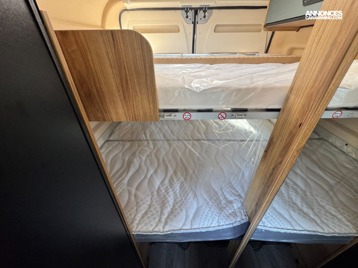 Batterie lithium 120 Ah, Chauffe eau CP+, Espaces optimisés en moins de 6m, Couchages modulables à la carte, 2 grands lits faciles d'accès, Réfrigérateur à compression 138L, Banquette Isofix, Grande salle de bain modulable, Nombreux rangements et grande soute, Pack multimédia, Store auvent, Panneau solaire