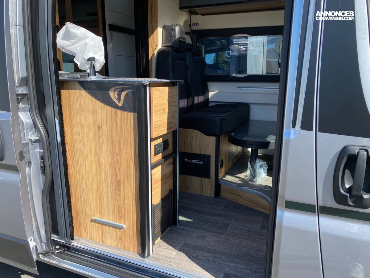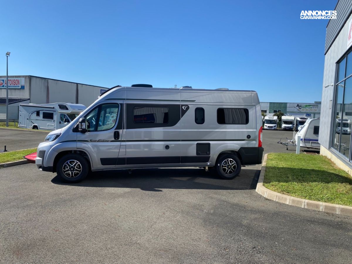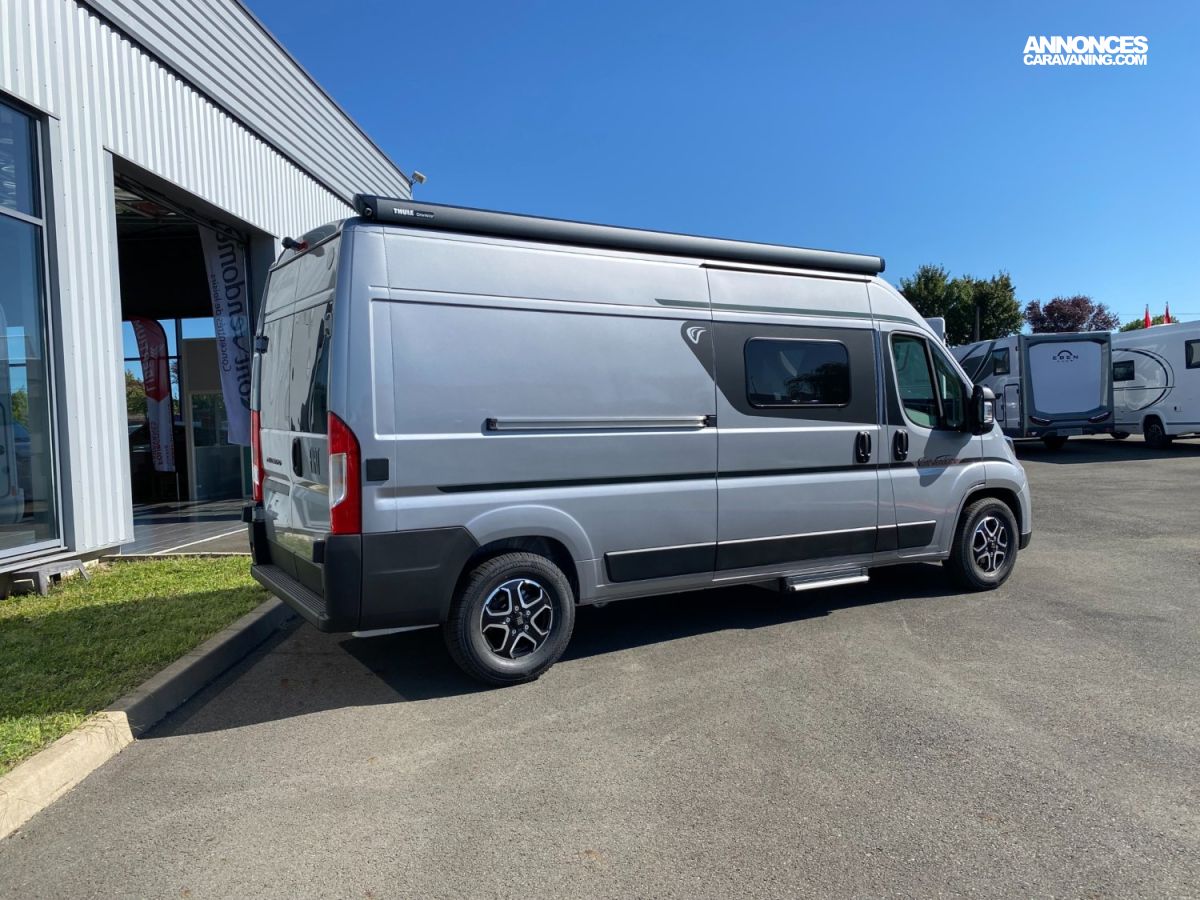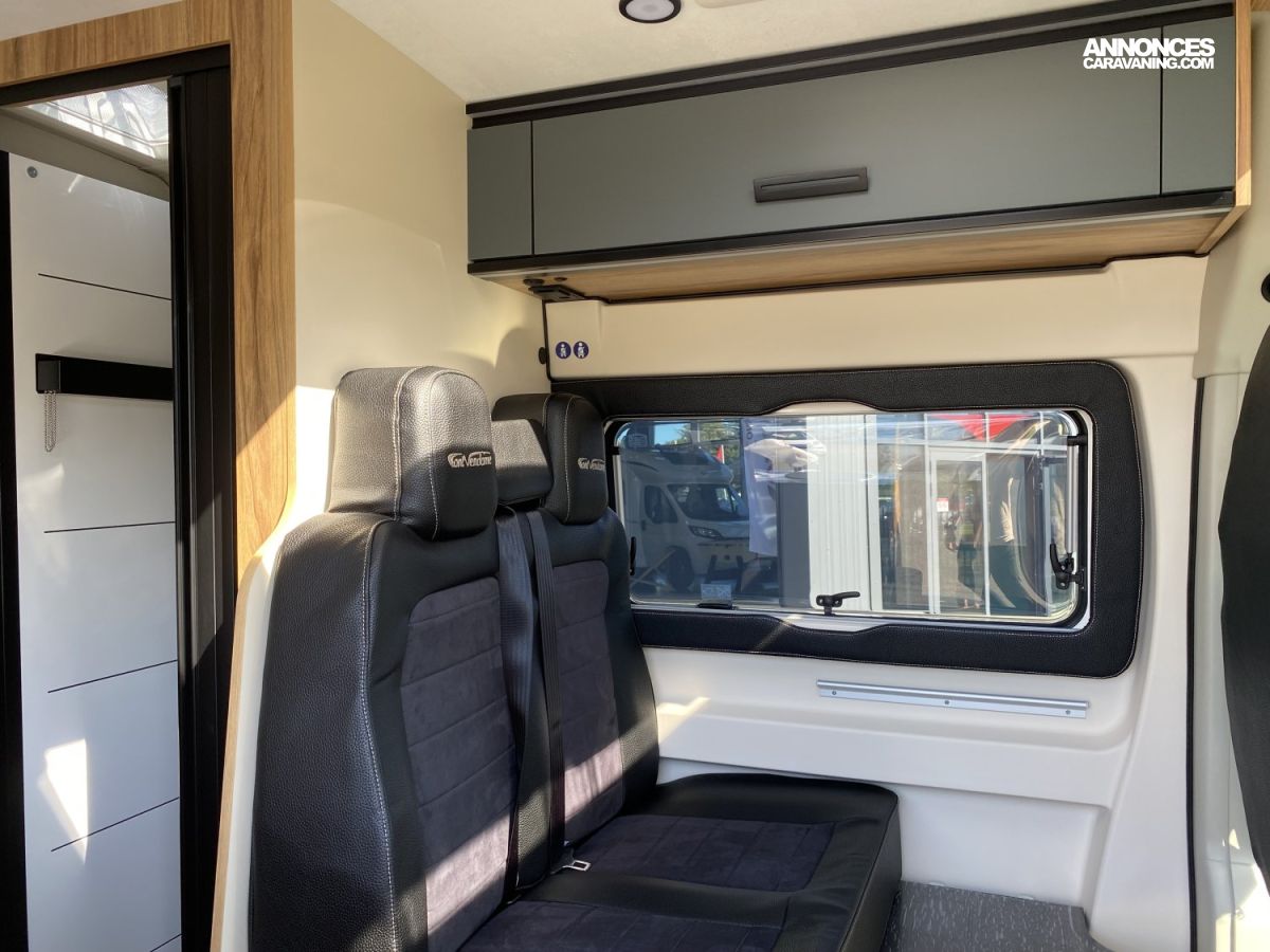 Baie double vitrage affleurante teintées, Couchage principal 194 x 147 CM, Batterie Lithium 120Ah, Soute adaptable et compartimentée, Grand salon lumineux avec skyroof, Banquette Isofix, Réservoir carburant 90L, Matelas Premium, Pack multimédia, Panneau solaire, Truma D4 gasoil avec kit altitude, Réfrigérateur à compression 138L, Store auvent
