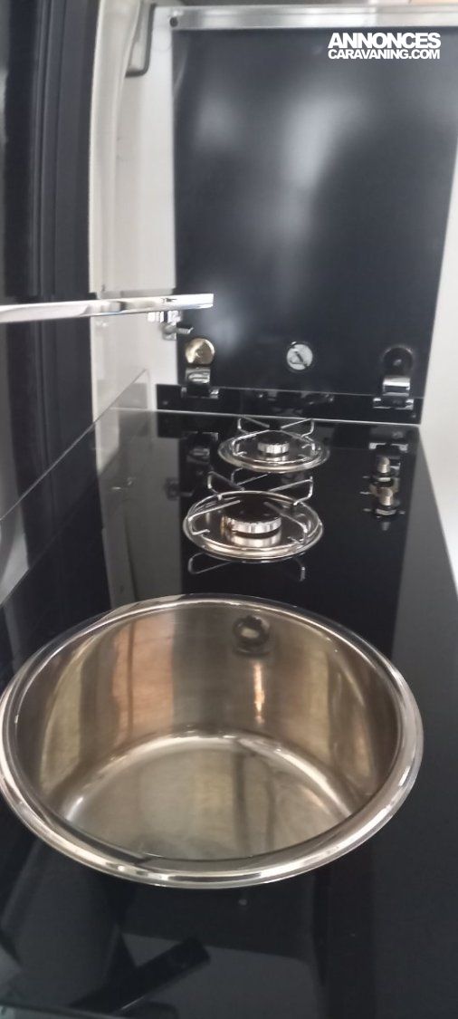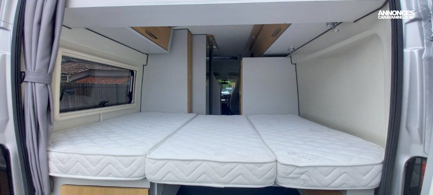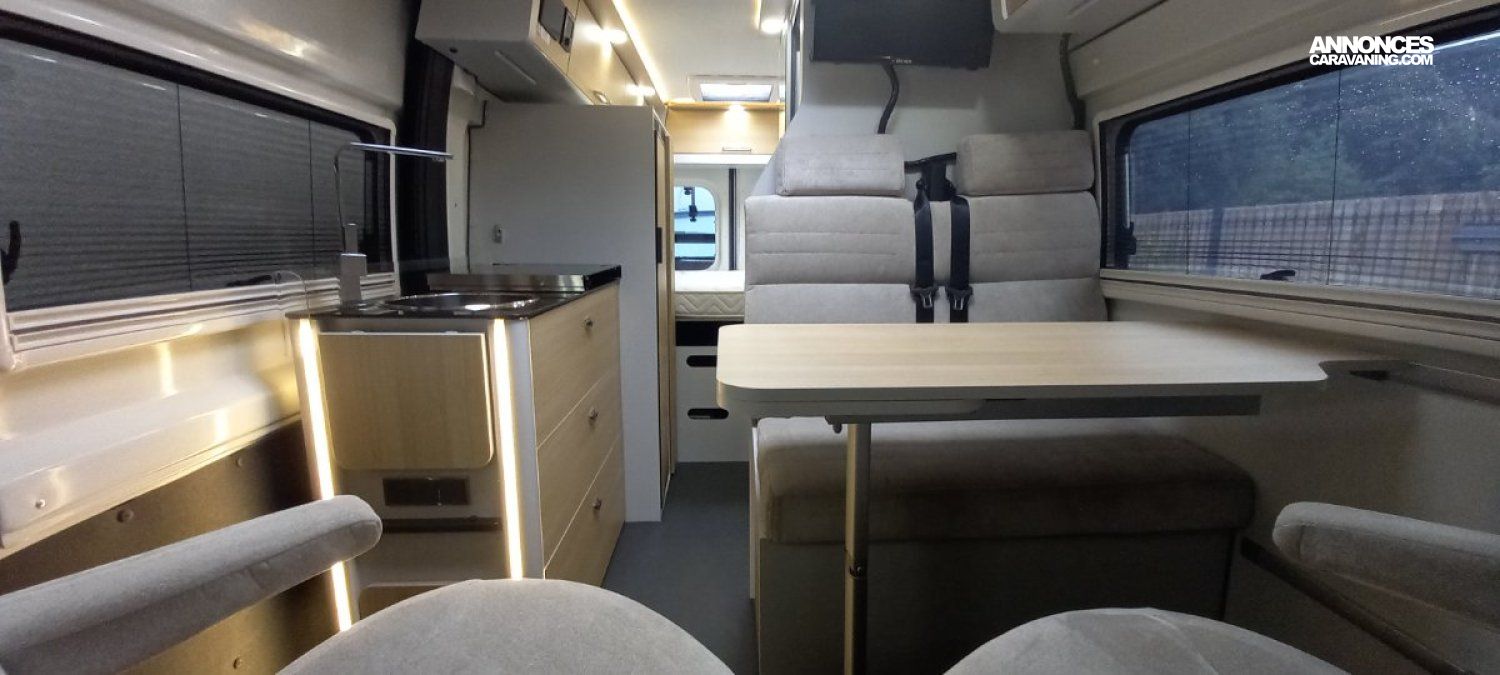 4 places assises, lit double transverse arrière, troisième couchage dinette.
