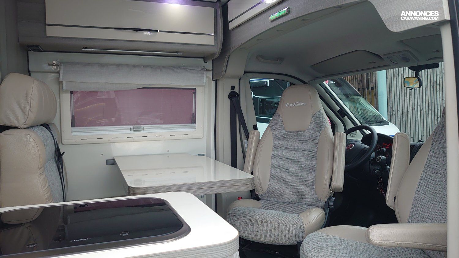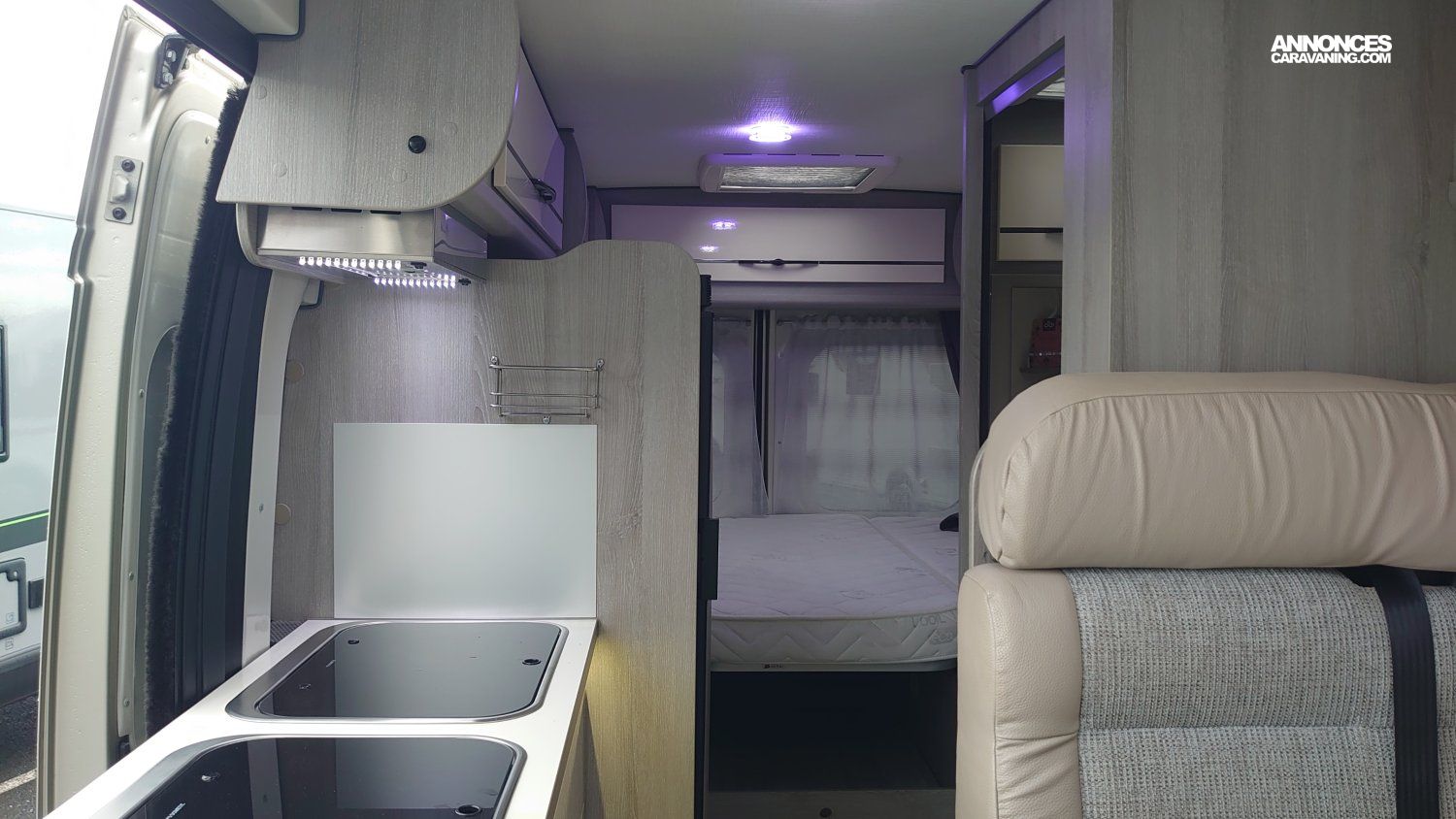 Il est doté d’un lit transversal à l’arrière, d’un réfrigérateur à compression 150 L et de nombreux équipements haut de gamme.