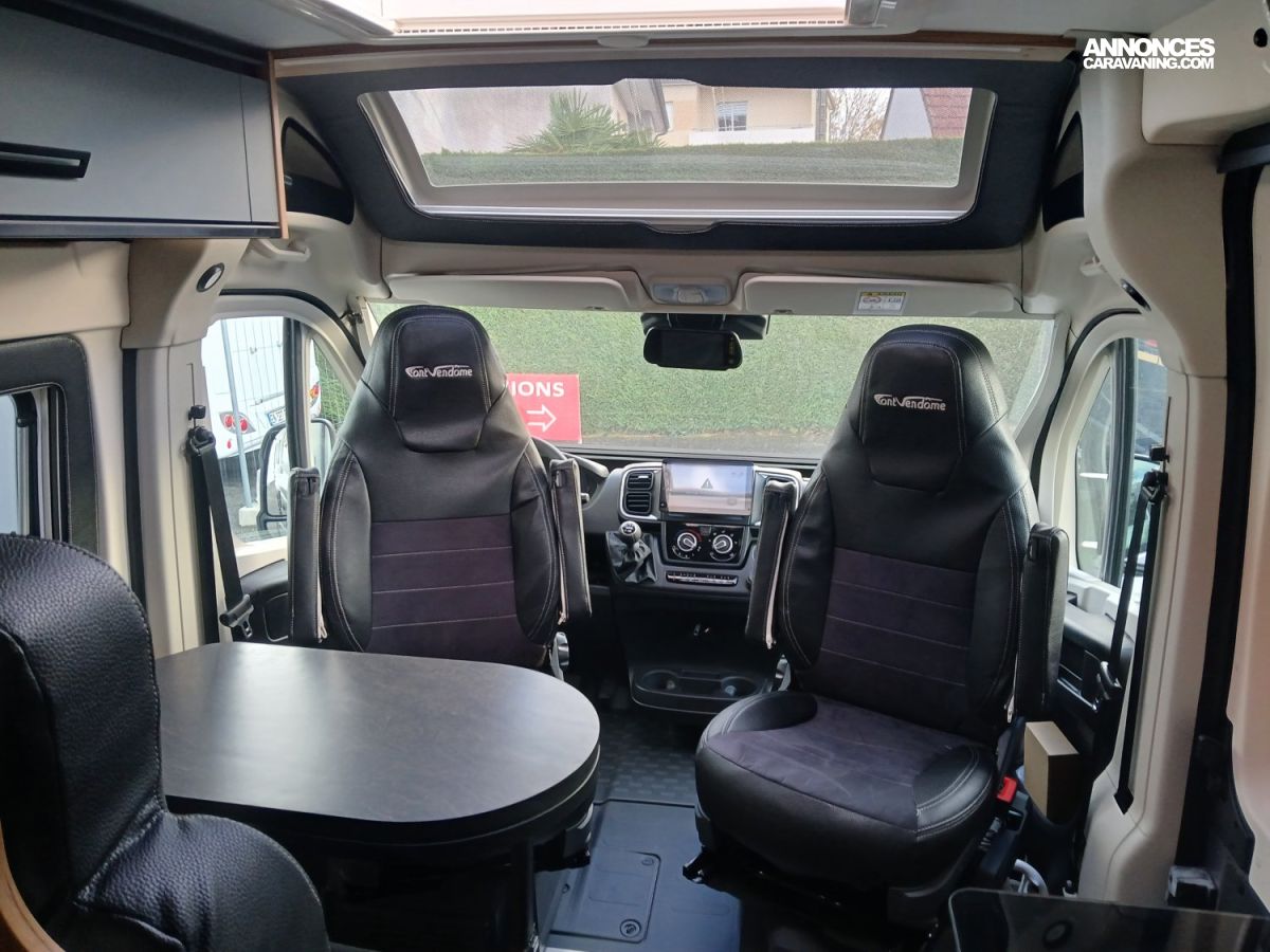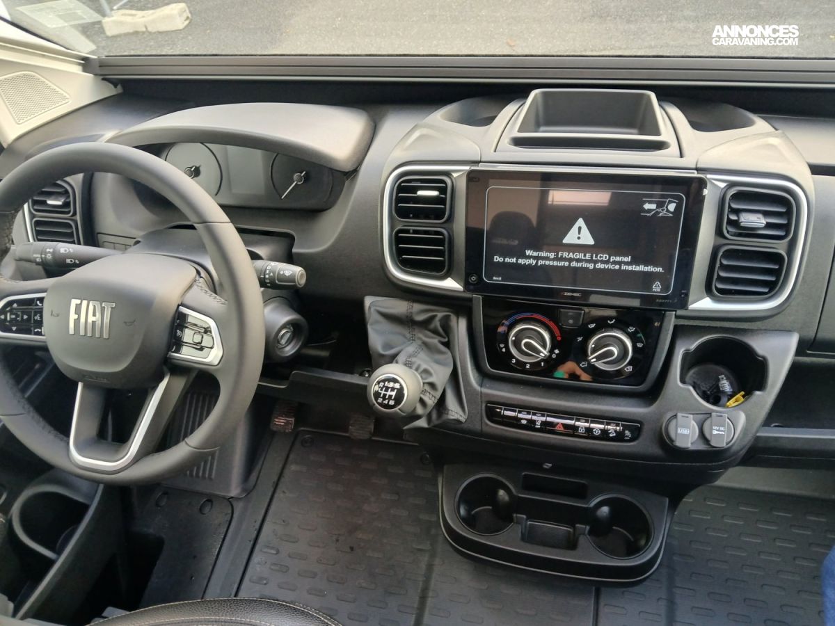 ESP/ASR/ABS/Traction +, Eclairage extérieur + gouttière sur porte latérale, Store plissé occultant et moustiquaire, Salle de bain modulable, Rétroviseurs électriques et dégivrants, Allumage automatique des feux, Reconnaissance des panneaux de vitesses, Réfrigérateur à compression 138L, Régulateur / Limiteur de vitesses, Réservoir 90L, Rétro caméra de recul, Essuie glaces auto avec détecteur de pluie, Feux de brouillard avant, Airbags conducteur et passager, Alerte franchissement de ligne, Housses de sièges avant, Marche pied électrique, Moustiquaire de porte latérale, Pack multimédia, Pack safety, Panneaux solaires, Pare chocs avant peint, Prises USB-12V-220V, Pré-equipement TV, Banquette Isofix, Sonde réchauffage du réservoir des eaux usées, Soute adaptable et compartimentée, Start & Stop, Store auvent, Jantes Alu 16", Grand lanterneau dessus dinette, Batterie Lithium 120Ah, Caillebotis de douche, Chargeur batterie DC-DC, Climatisation cabine avant, Combiné chauffage-chauffe eau Truma D4, Douchette extérieure eau froide, Suspension renforcée, Système de prévention de collision, Vitre électriques, Pack multimédia avec Apple Carplay, Android Auto