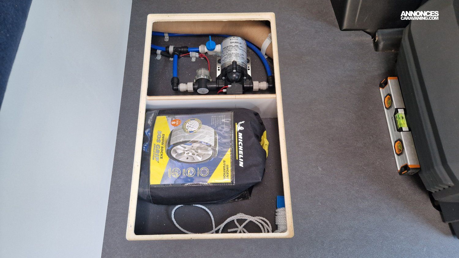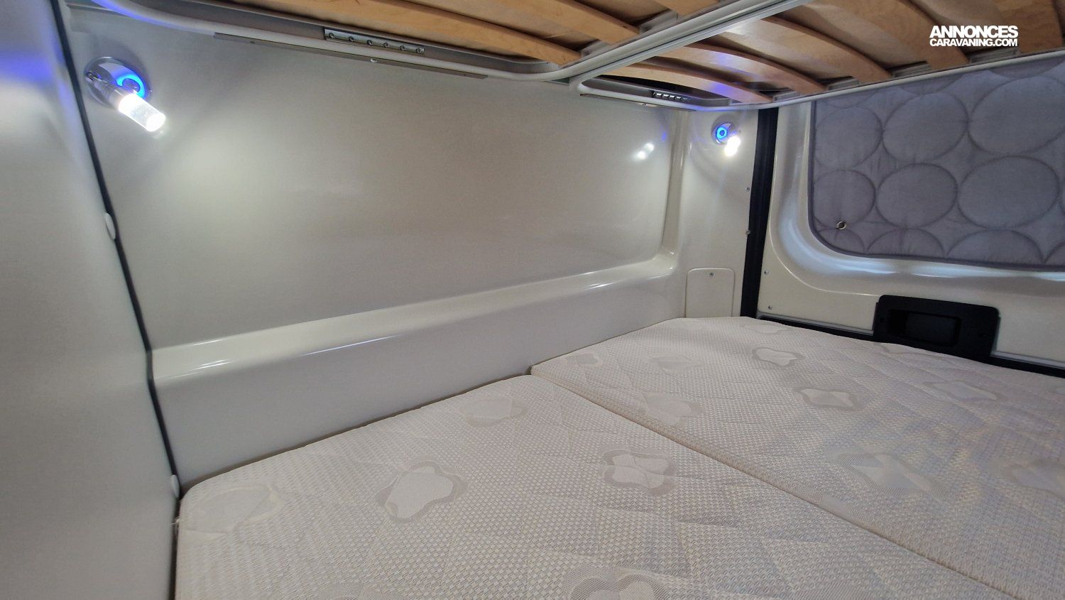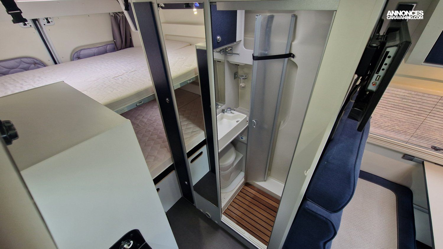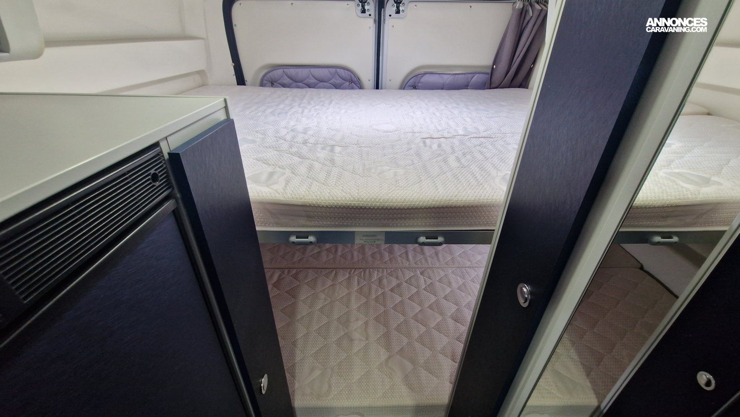 CHAUFFAGE CARBURANT, STORE EXTERIEUR 3.5M, GAZINIERE 2 FEUX, DOUCHETTE DANS SOUTE, VOLET ISOTHERME INTERIEUR, VOLET EXTERIEUR ISOTHERME, REFRIGERATEUR 12V A COMPRESSION