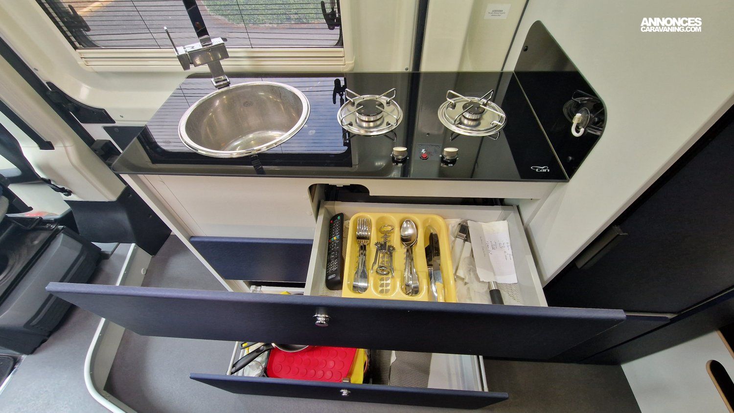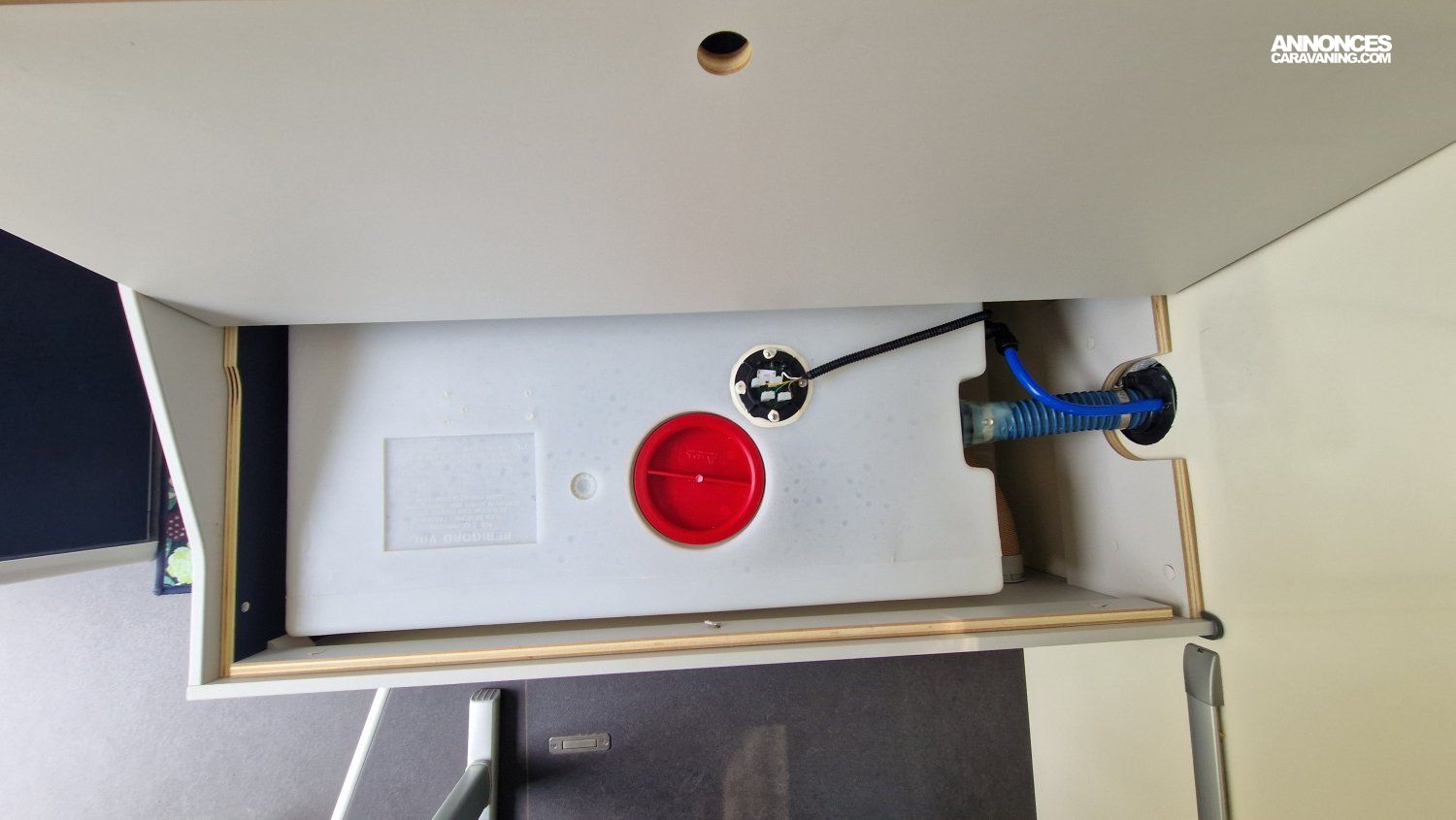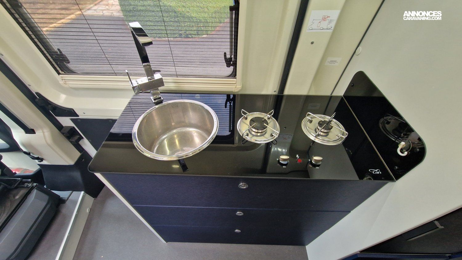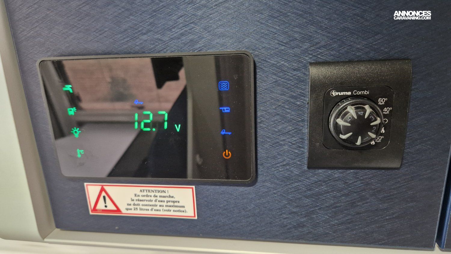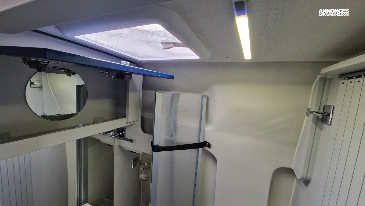 CHAUFFAGE CARBURANT, STORE EXTERIEUR 3.5M, GAZINIERE 2 FEUX, DOUCHETTE DANS SOUTE, VOLET ISOTHERME INTERIEUR, VOLET EXTERIEUR ISOTHERME, REFRIGERATEUR 12V A COMPRESSION