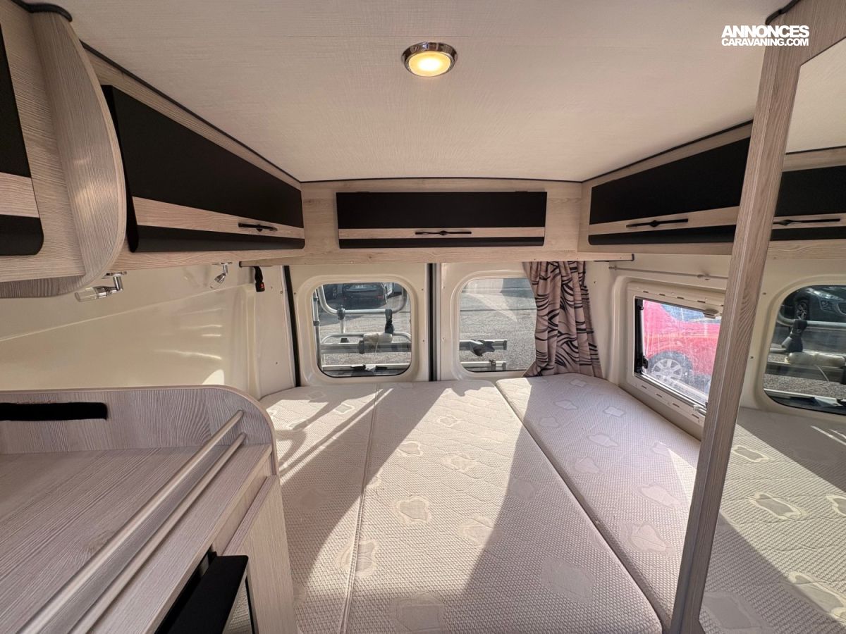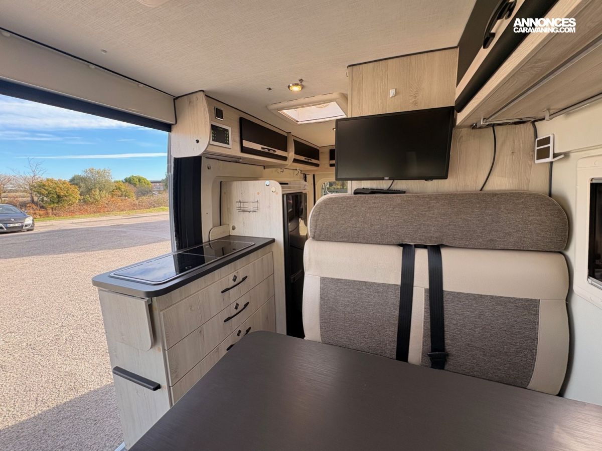 ATTELAGE, PANNEAU SOLAIRE, STORE EXT, CLIM CABINE, LUMIERE EXT, PORTE VELOS, STORE OCCULTANT REMIS, AUTORADIO MULTIMEDIA, BATTERIE AGM, CAMERA DE RECUL, MOUSTIQUAIRE DE PORTE, SMART TV CONNECTEE