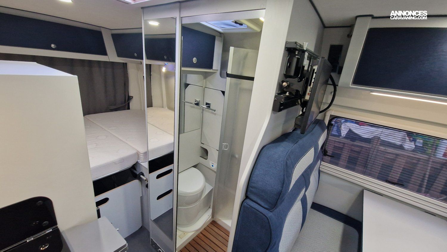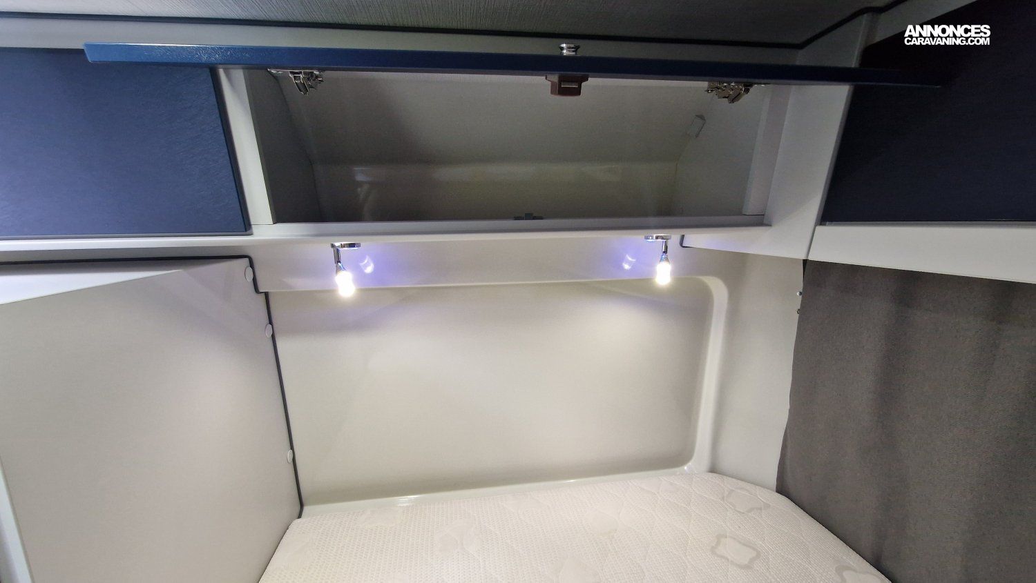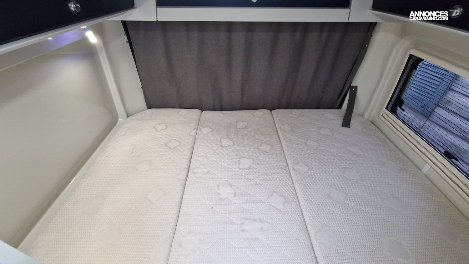 Evadez-vous sans limites et profitez d’une implantation idéale pour un couple et un enfant : grand lit transversal AR + lit d’appoint dinette supplémentaire, un bloc cuisine chic & design bien équipé avec de multiples rangements, un espace salon lumineux et convivial.