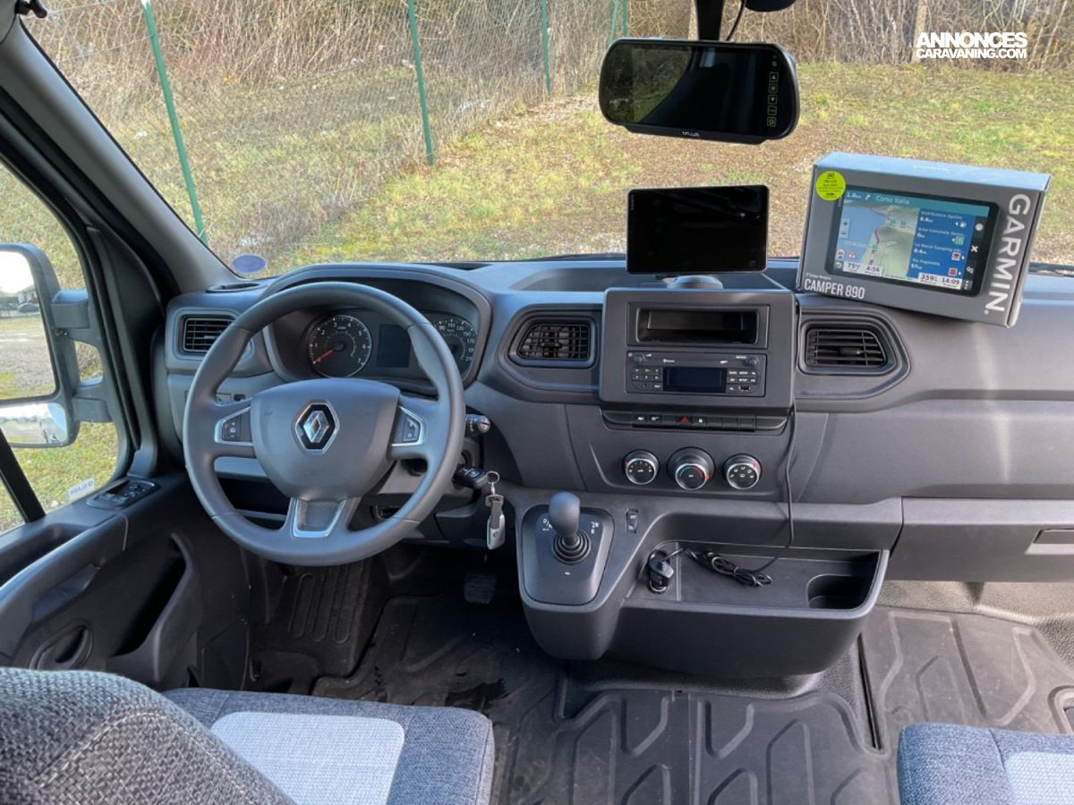 COCKPIT: Radio MP3+ USB, GPS Garmin Camper 890, Caméra de recul sur rétroviseur, Climatisation, Lève-vitres & Rétroviseurs G/D élec., Double Airbag, ASR, Régulateur/Limiteur de vitesse, Alarme volumétrique,Traceur GPS anti-vol., Boîte AUTO 6 rapports, Rideaux tissus + isotherme.