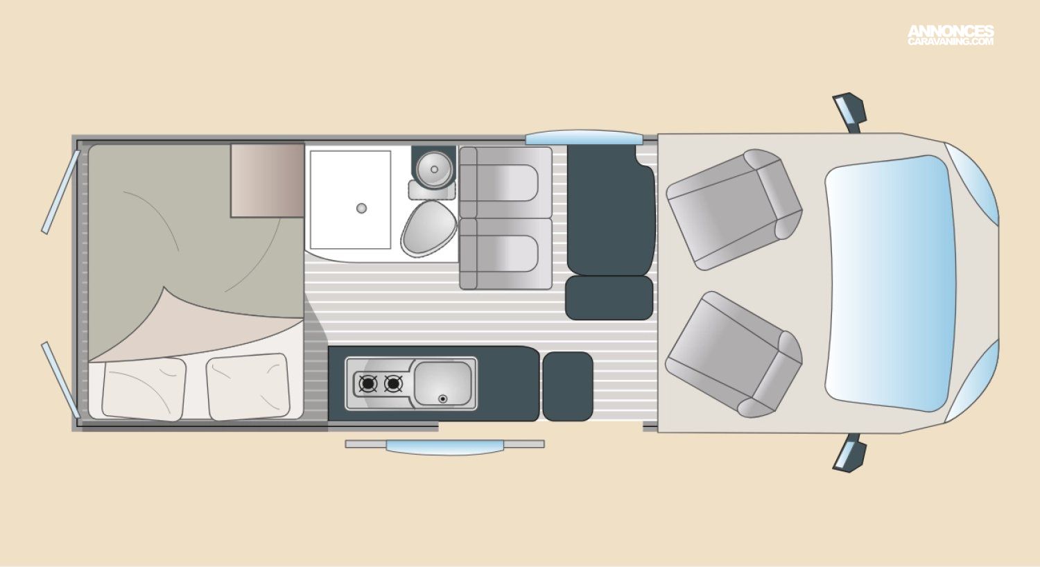 Bavaria, Burstner, Caravelair, Elios, Font Vendome, Hobby, Knaus, La Strada, Mc Louis, Mini Freestyle, Rapido, Roller Team, Silver, Sprite, T@b, Weinsberg, Westfalia