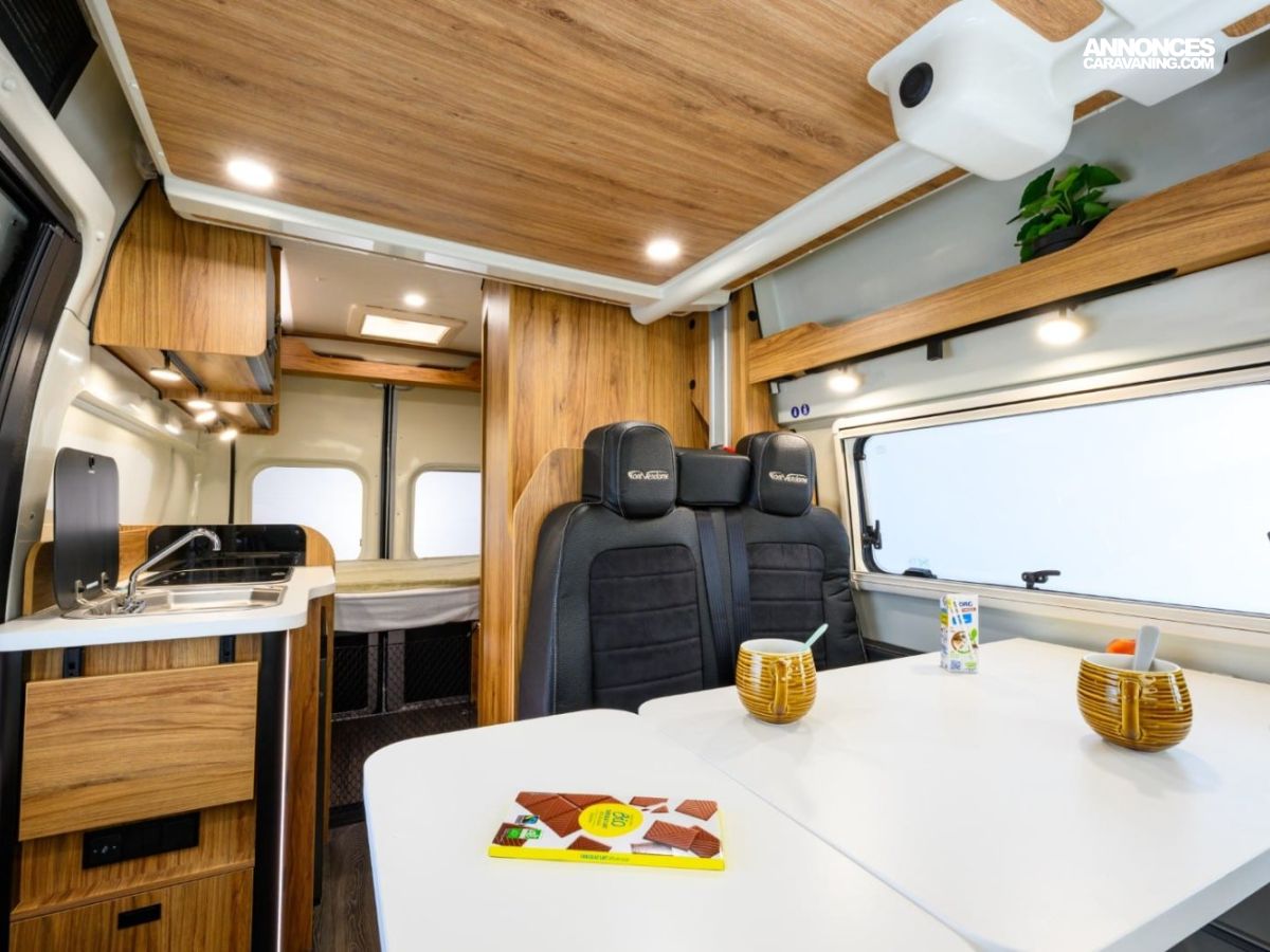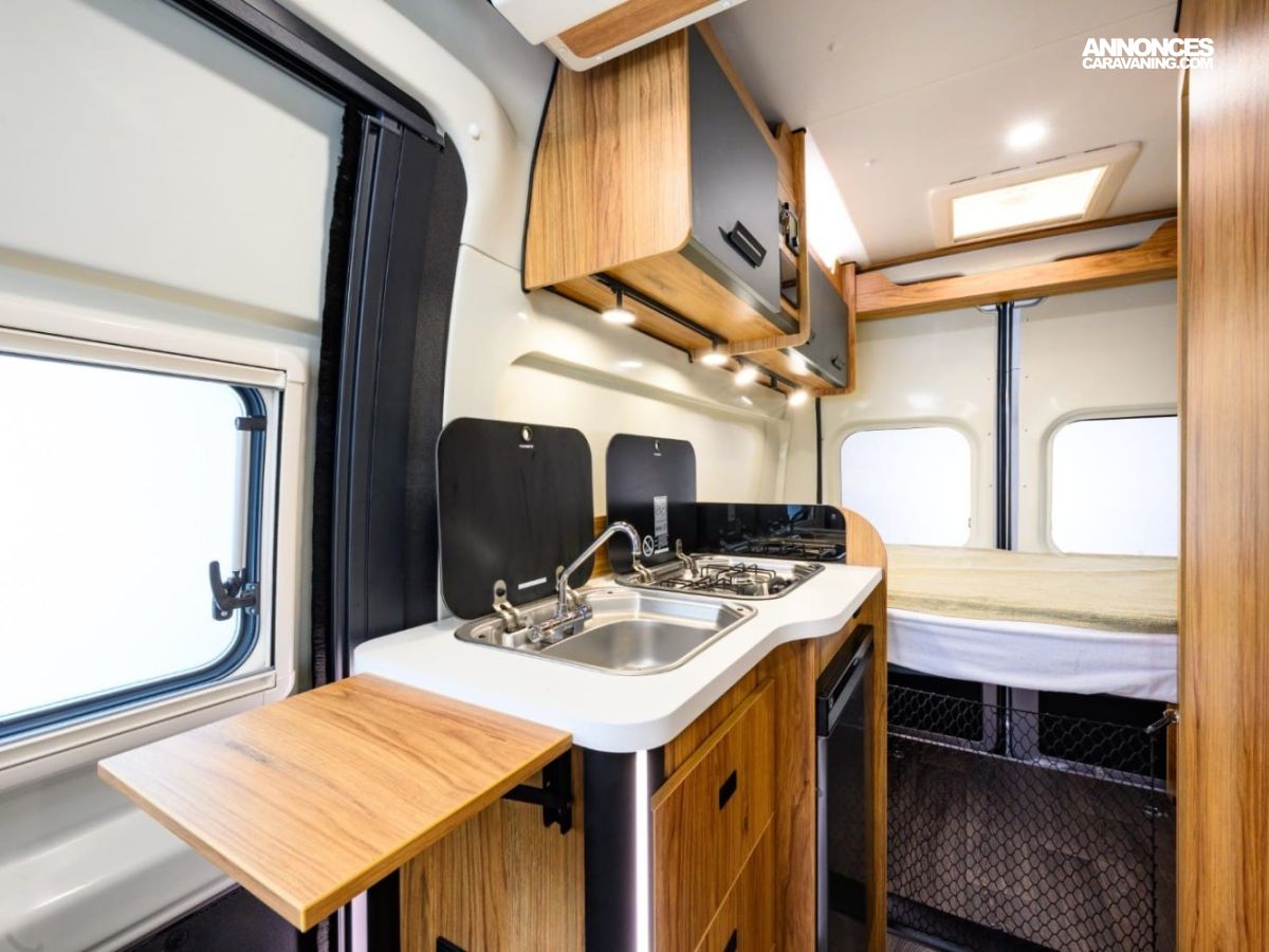 Quoi de mieux que partager ses découvertes et ses voyages en famille ou entre amis ? Doté d'une 5ème place carte grise de série, le Terravan peut accueillir 5 personnes en couchage, grâce à son intérieur parfaitement optimisé dans 6m de longueur. Son lit supérieur électrique vous permettra de moduler les lieux de vie sans effort. Les espaces cuisine et salle de bains sont pensés pour profiter au maximum de votre voyage.