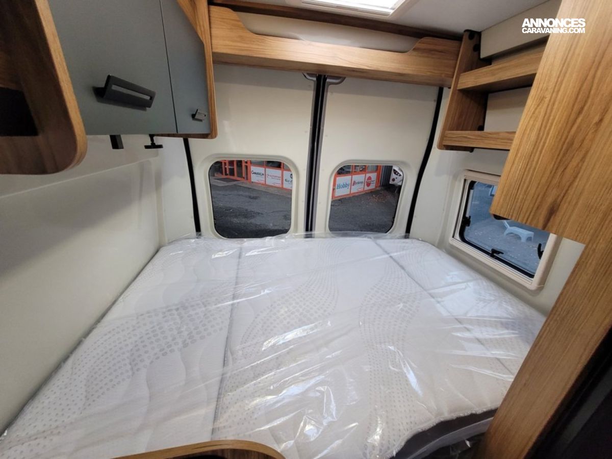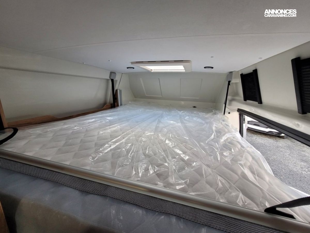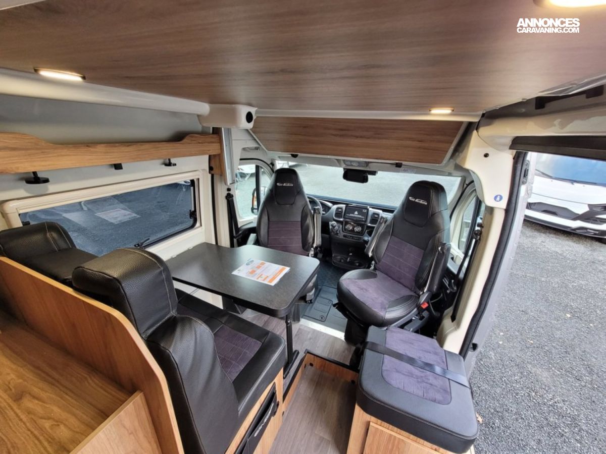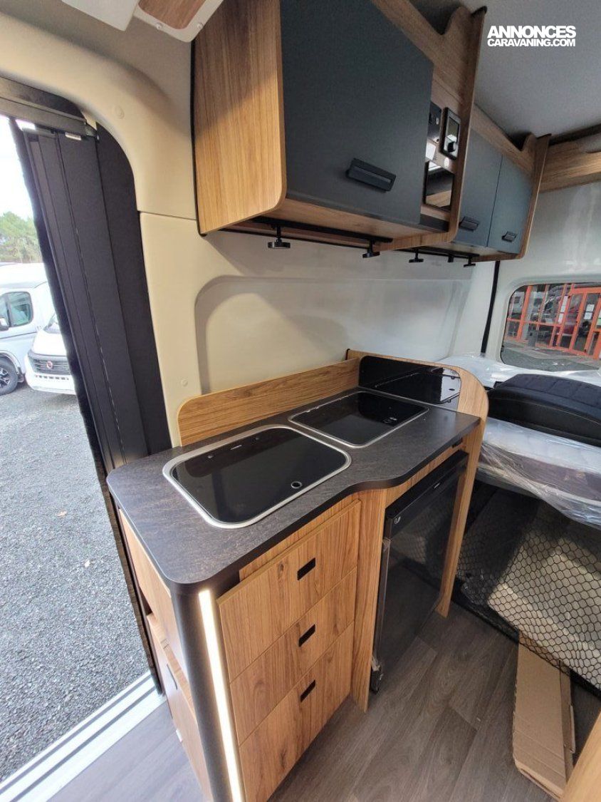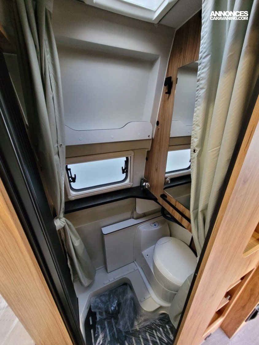 Cuisine en long, Douche modulable, Douche extérieur, Lit arrière transversal, lit pavillon, Salon avant sièges pivotants, WC Cassette.