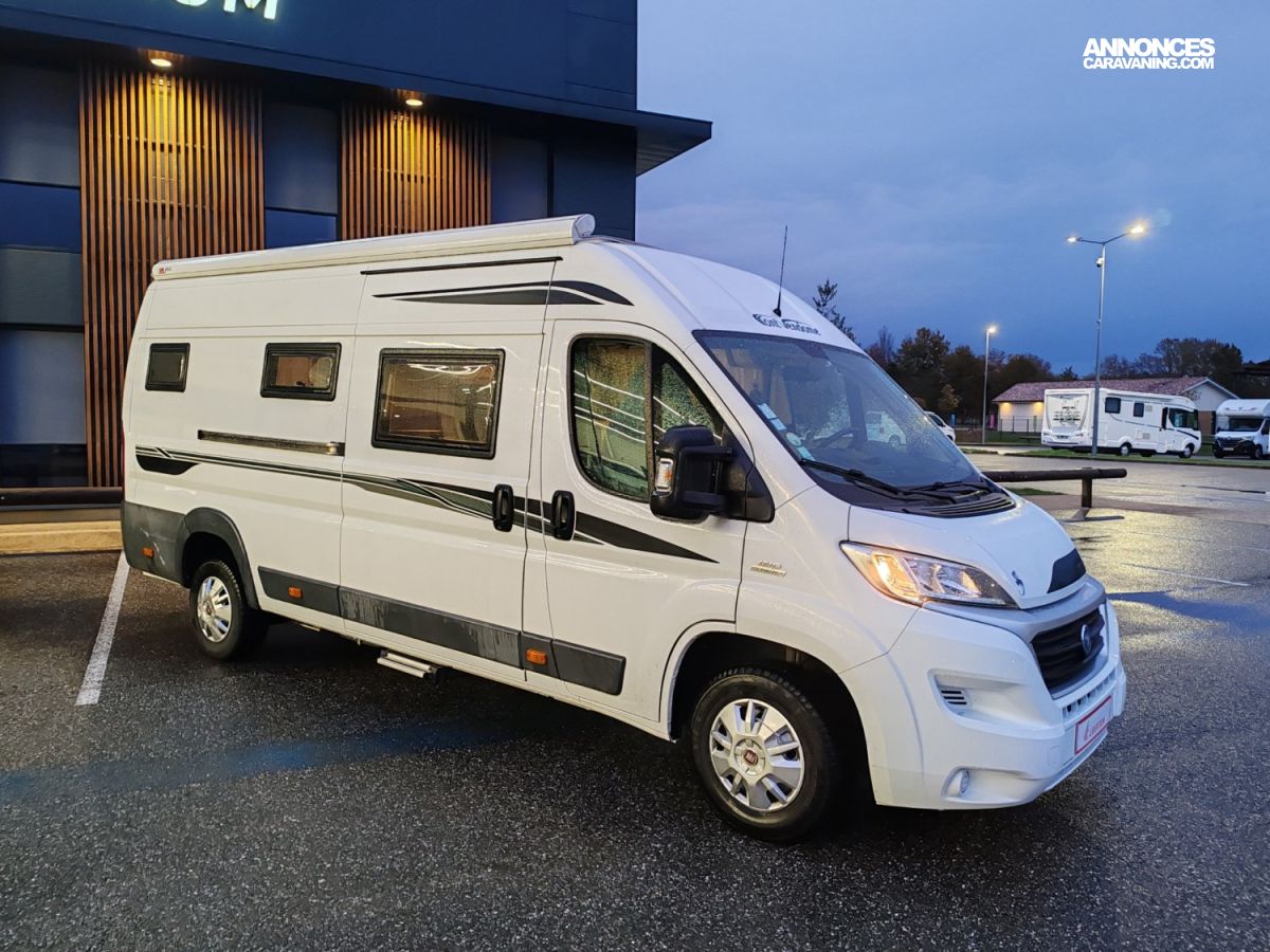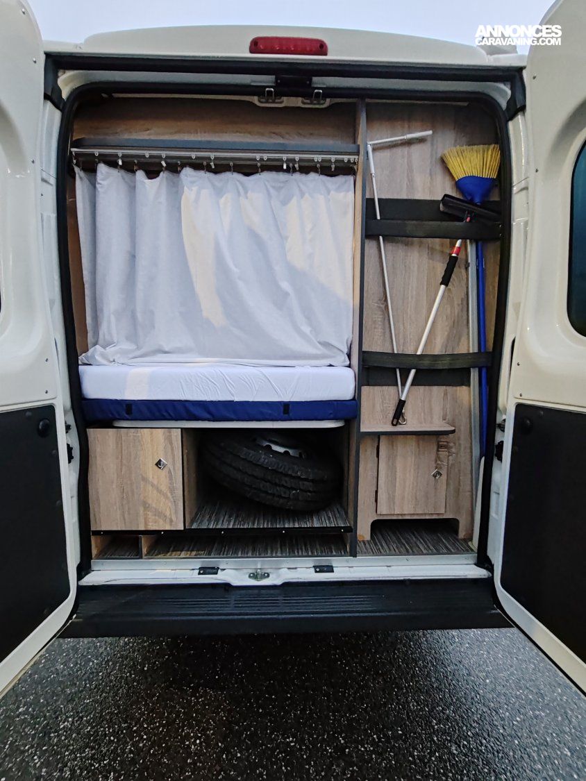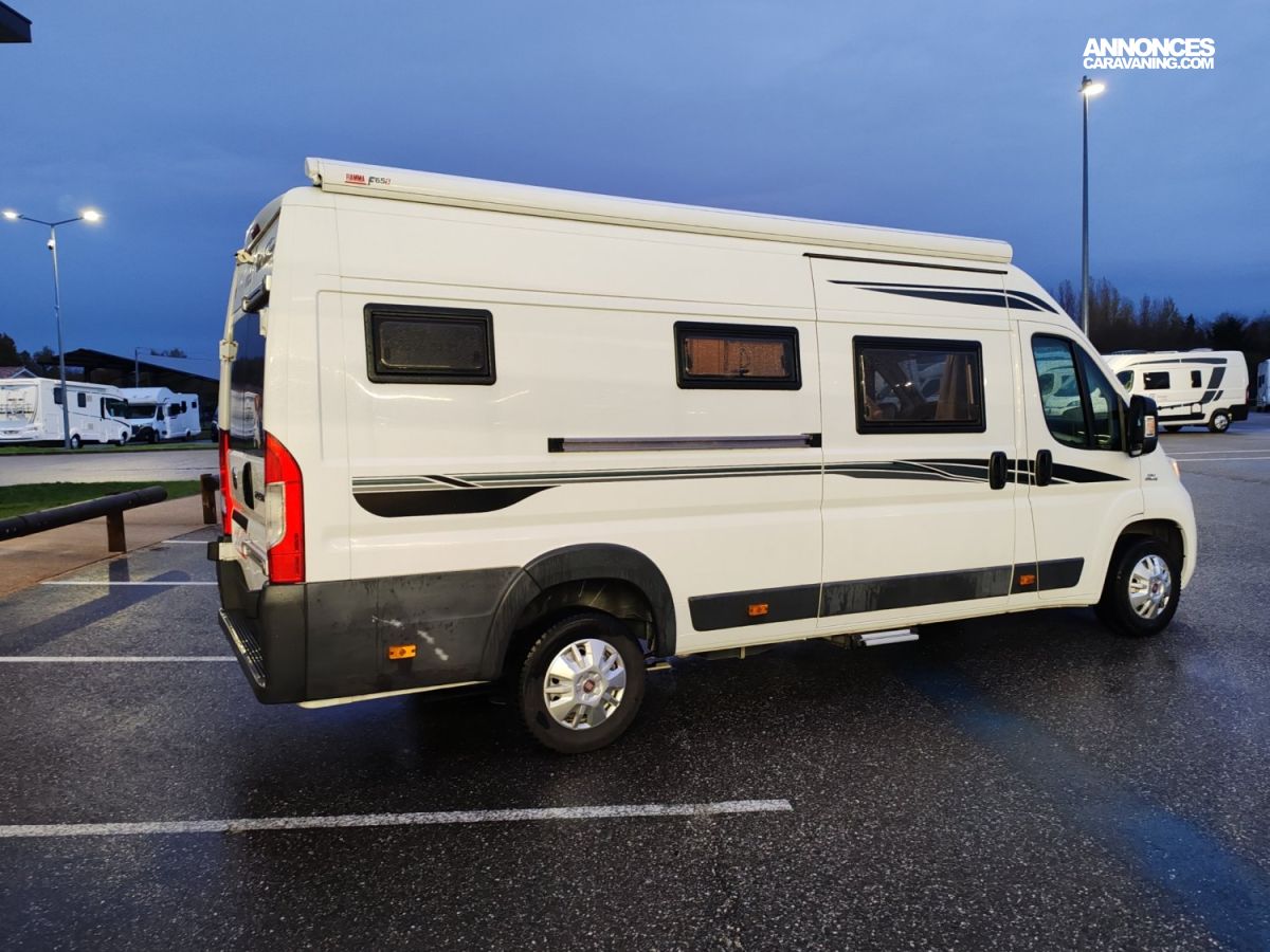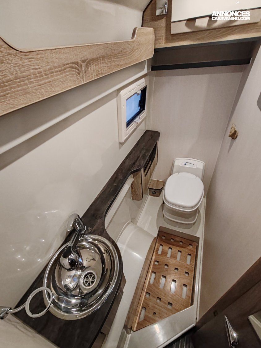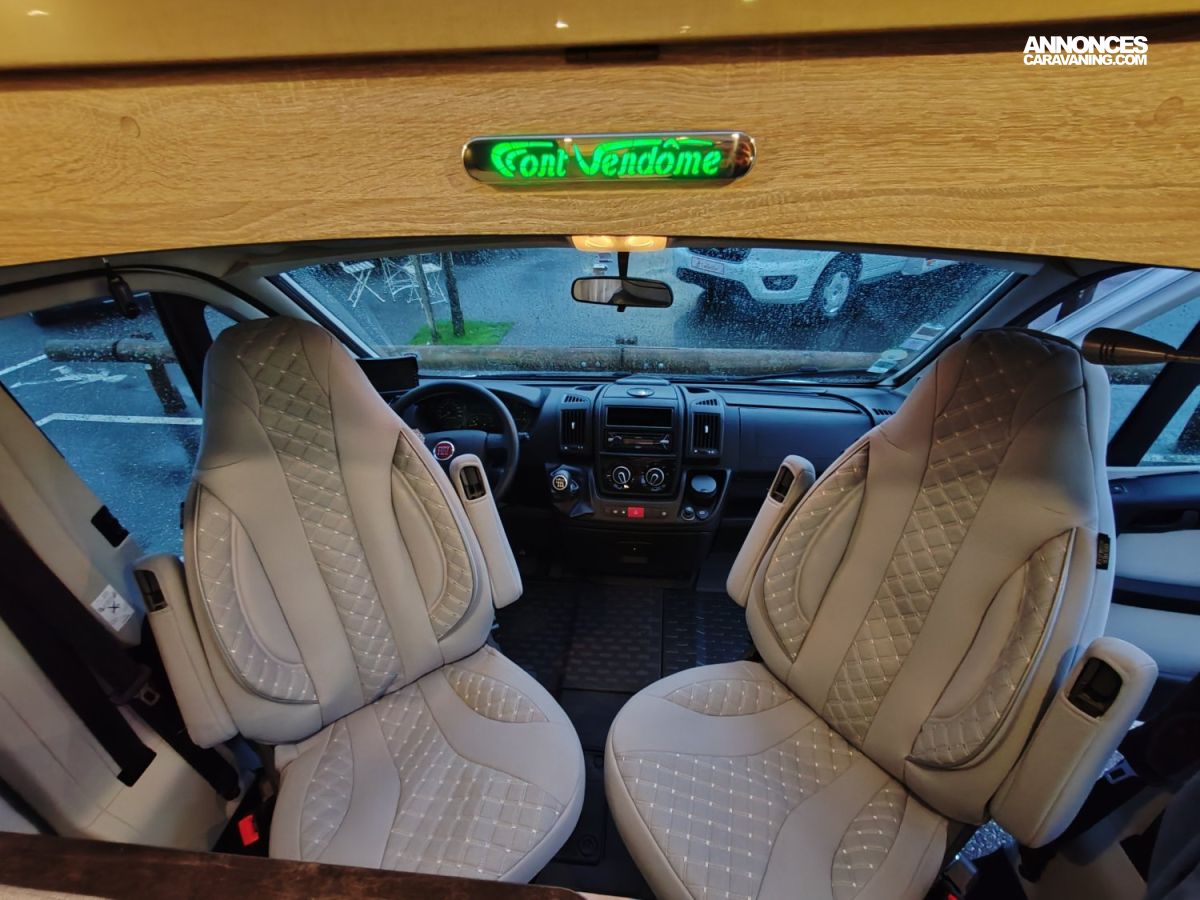 Store extérieur, Panneau solaire, Verrins stabilisateur hydrauliques, Coussins pneumatiques, Roue de secours, Moustiquaire porte cellule, Chauffage Carburant, Antenne sat manuelle, TV, Lit permanent arrière (192 x 130 cm), Lit de banquette (188 x 121 cm), Réfrigérateur 150 litres Trimixte, Hotte aspirante, Batterie Lithium 100A, Convertisseur 2000w, Marche pied electrique