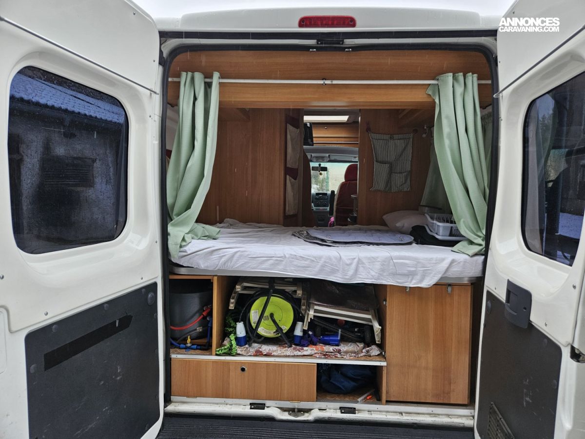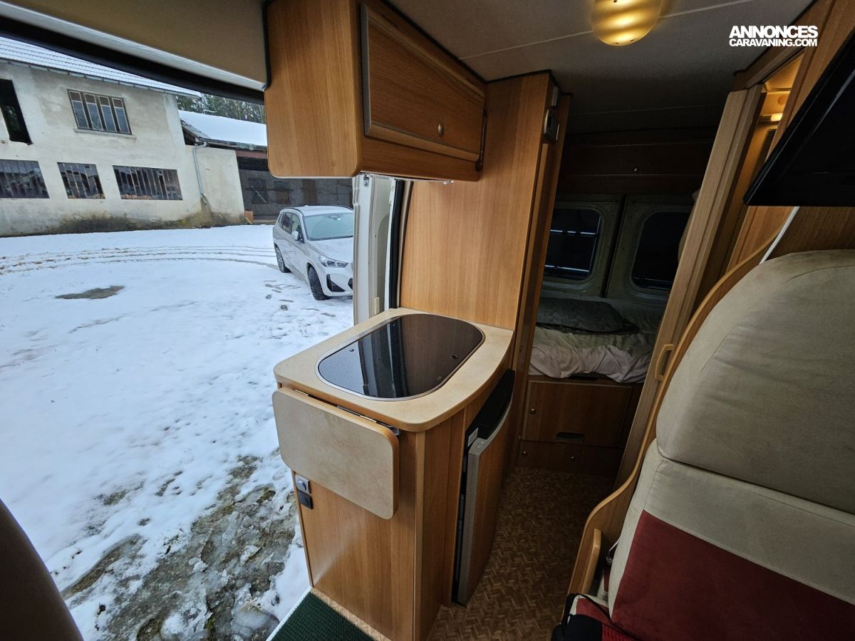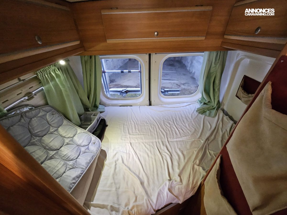 CHAUFFAGE CARBURANT, GAZINIERE 2 FEUX, ECLAIRAGE LED, PORTE VELO, REFRIGERATEUR TRI MIX, STORES PLISSES DE CABINE