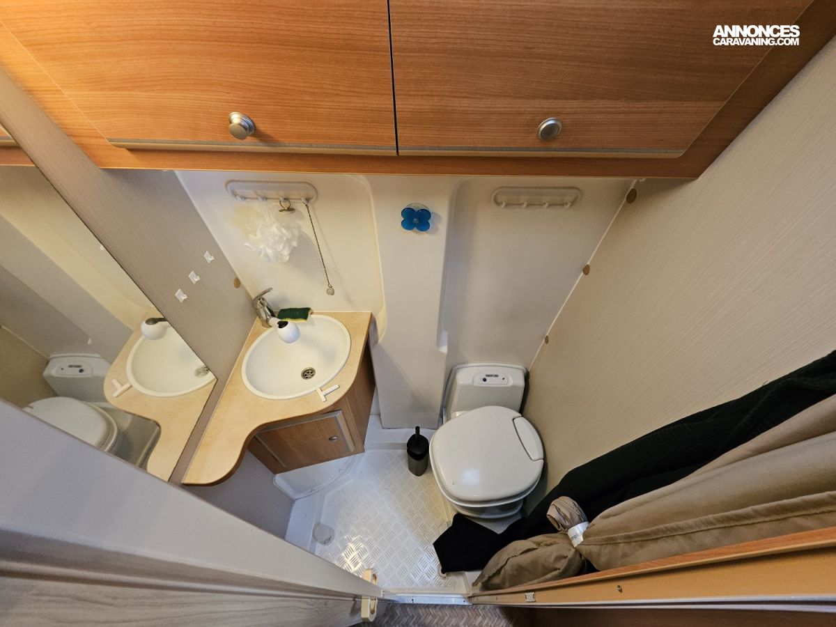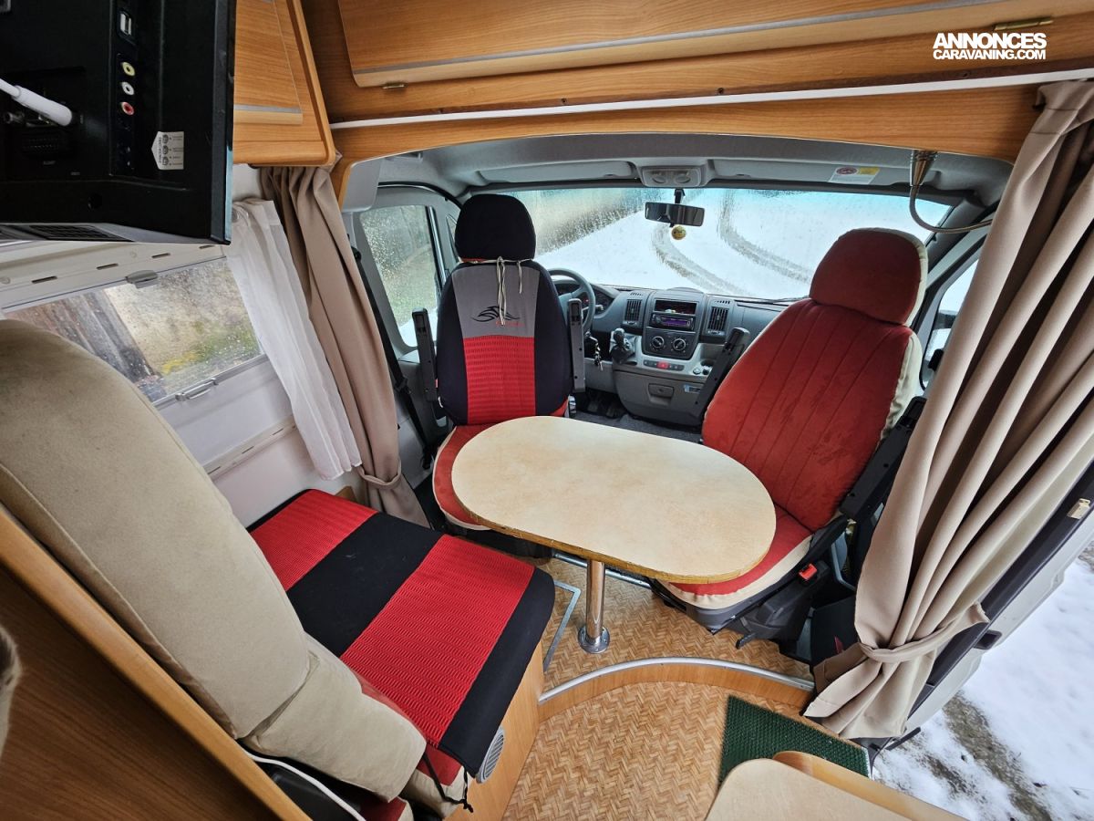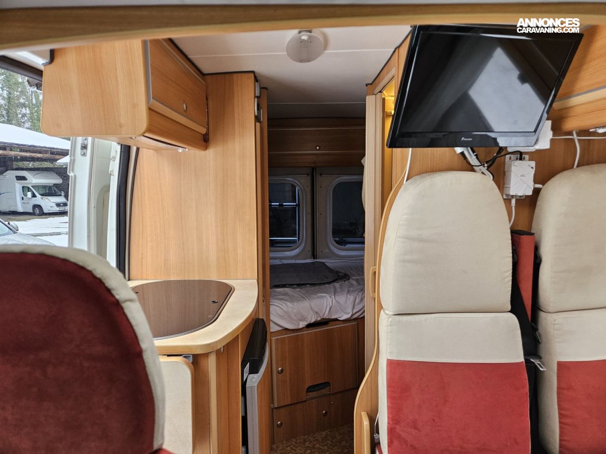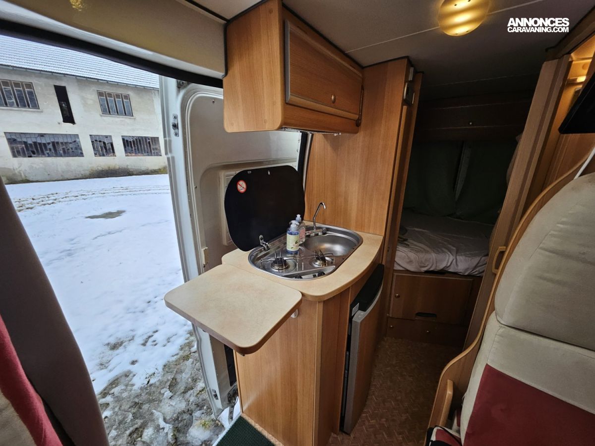 CHAUFFAGE CARBURANT, GAZINIERE 2 FEUX, ECLAIRAGE LED, PORTE VELO, REFRIGERATEUR TRI MIX, STORES PLISSES DE CABINE