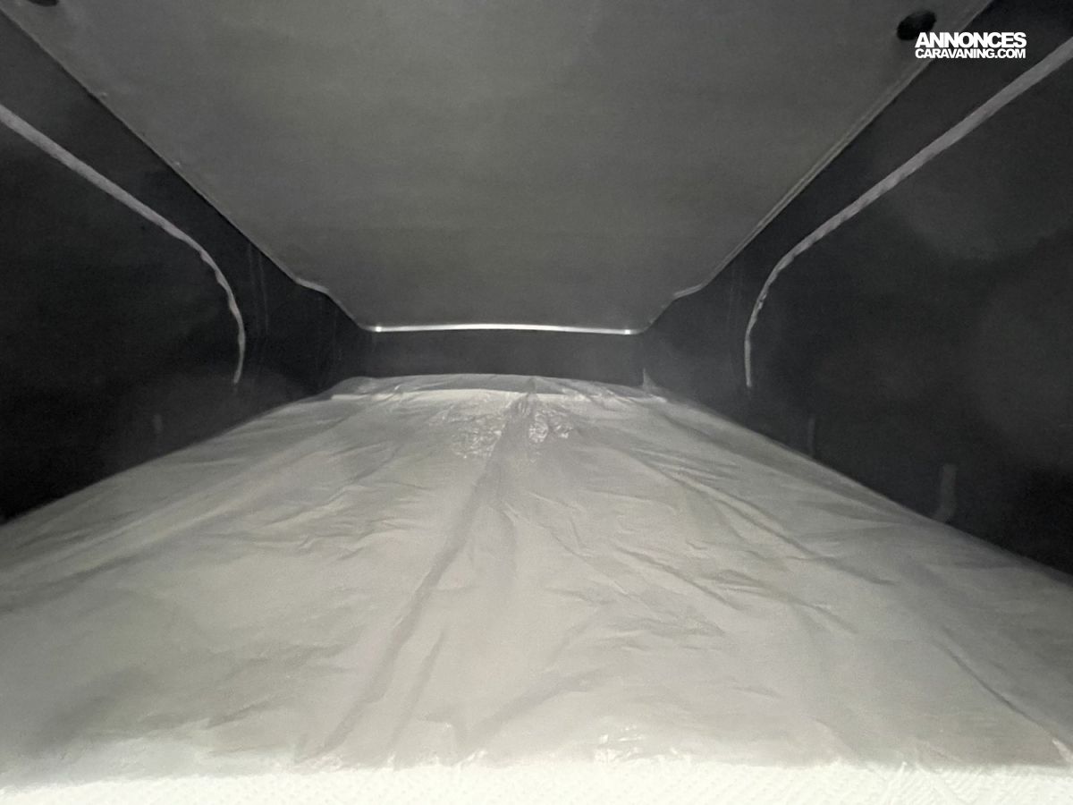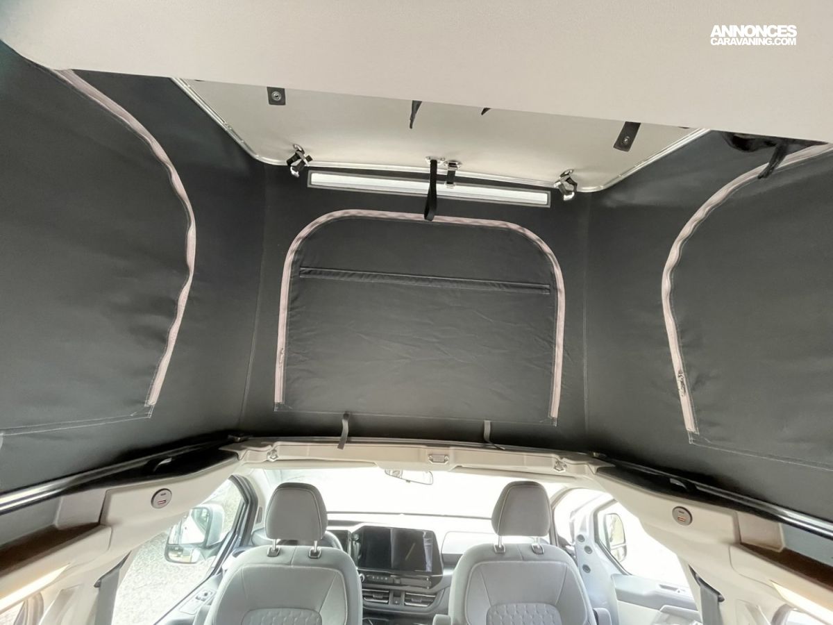 Toit relevable avec un large lit de 207 x 127 cm, avec échelle d’accès