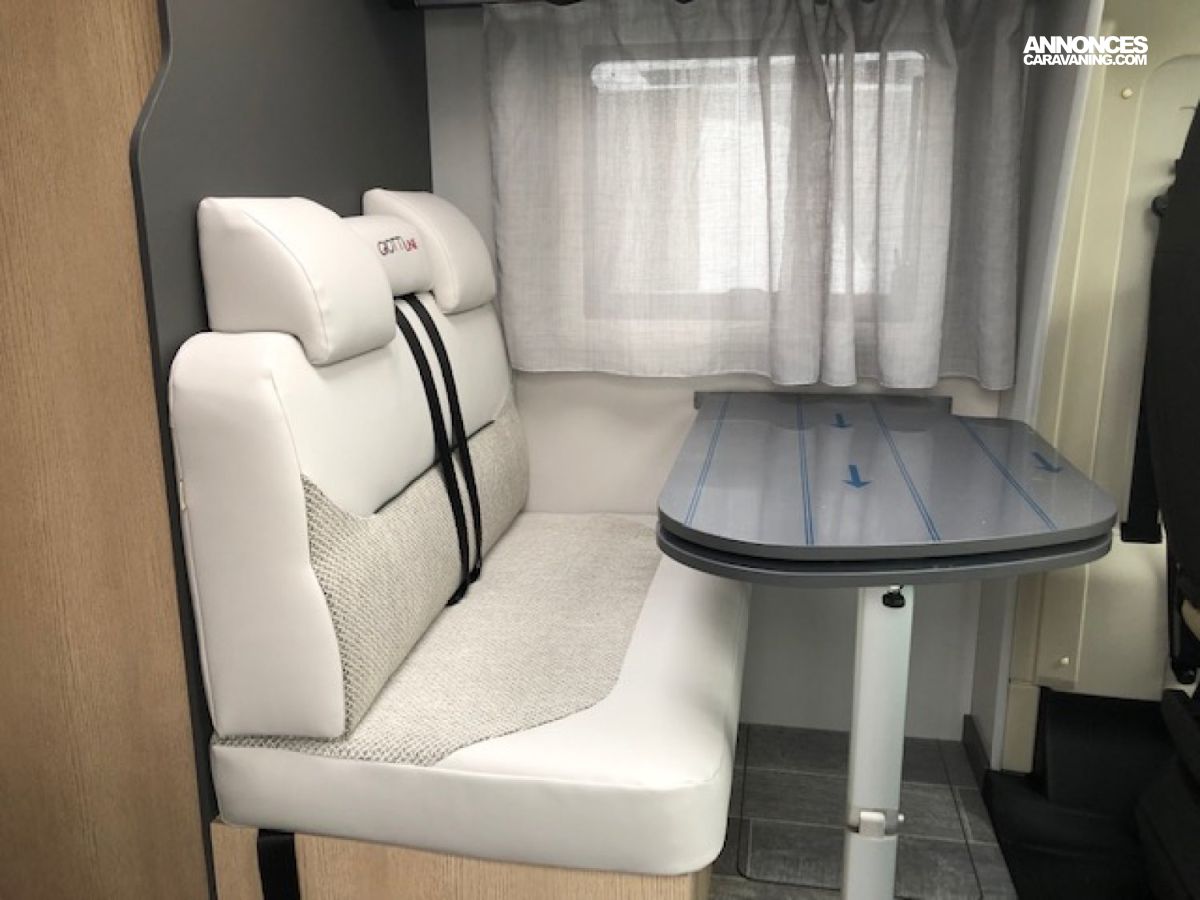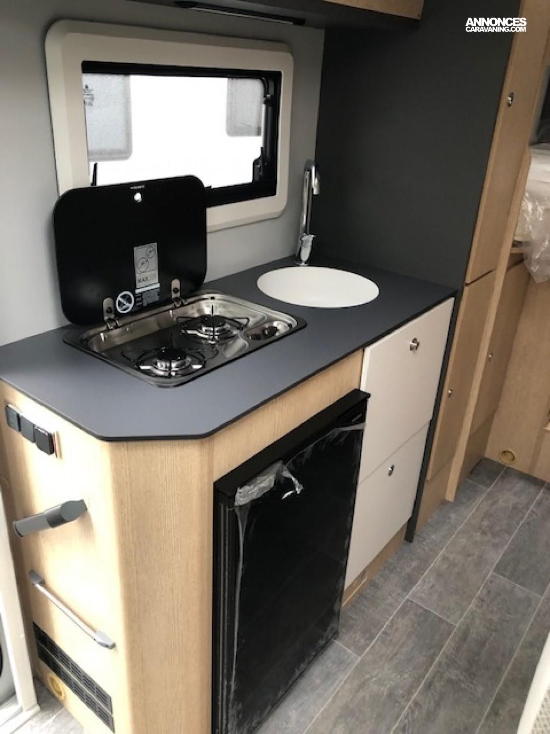 Pack Giotticompact : Climatisation cabine, ESP Traction + avec aide à la montée/descente, Start&Stop, régulateur de vitesse, 2 Airbags, Rétroviseurs électriques chauffants, pré-équipement radio, Housses sur sièges cabine, Eaux usées chauffées, Porte cellule XL, Moustiquaire porte cellule, Sommier à lattes, Pare-chocs peint, éclairage extérieur LED, commande Truma CP+, Midi Heiky 500X700, marchepied électrique.