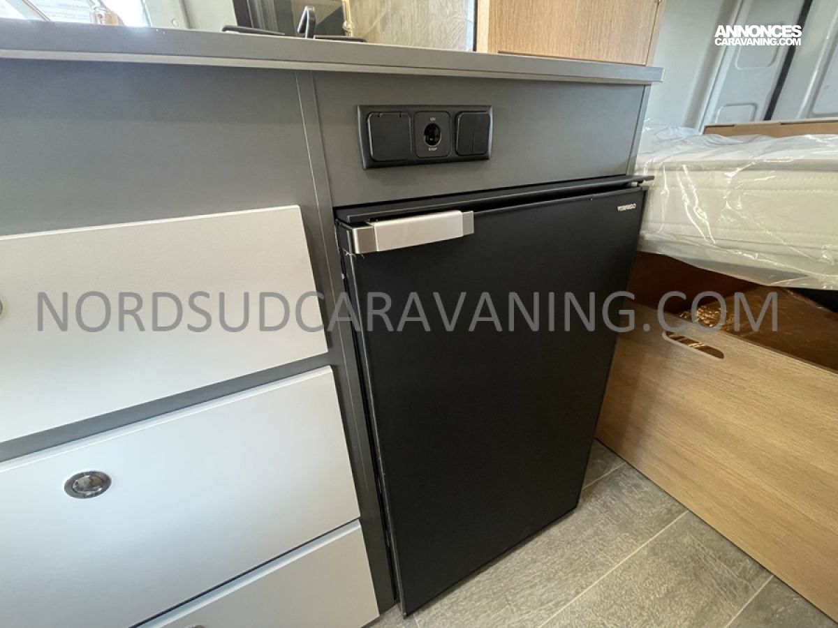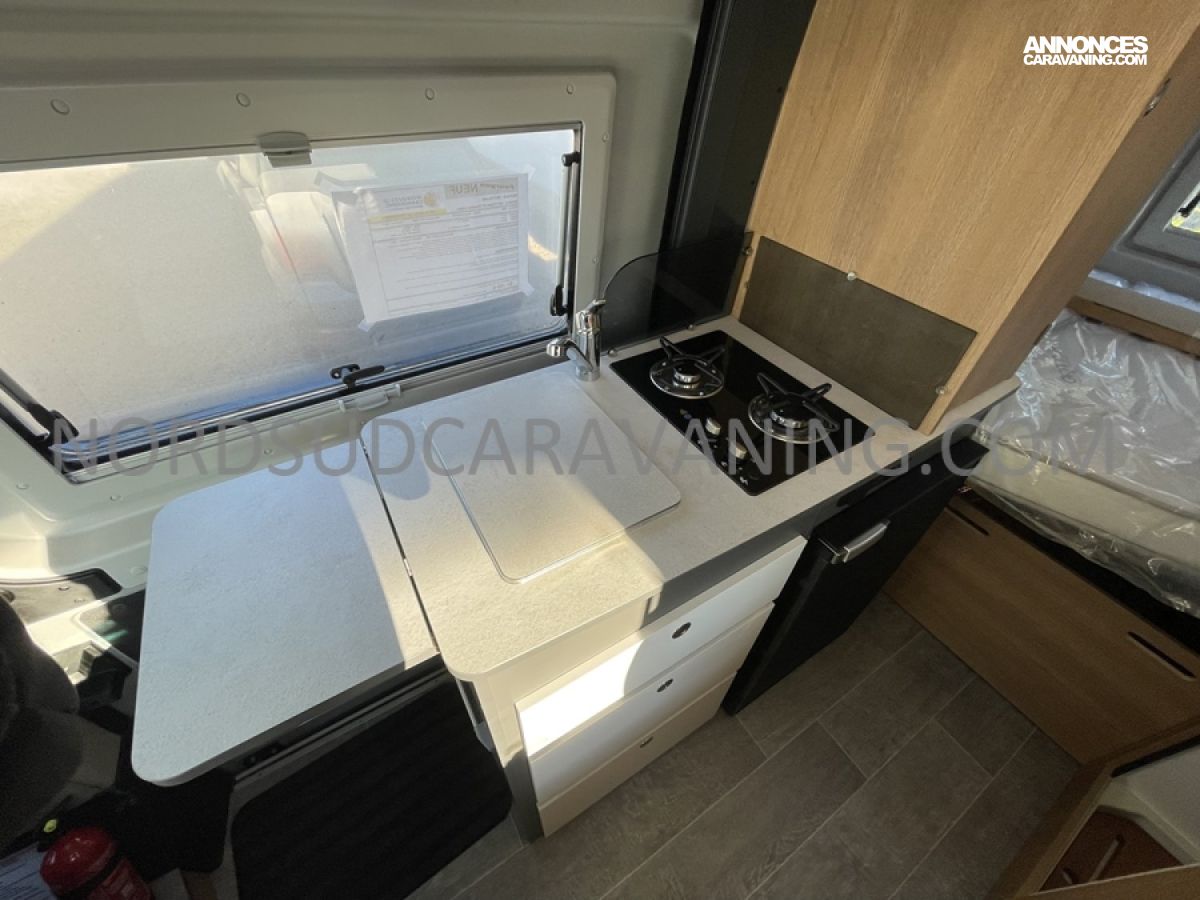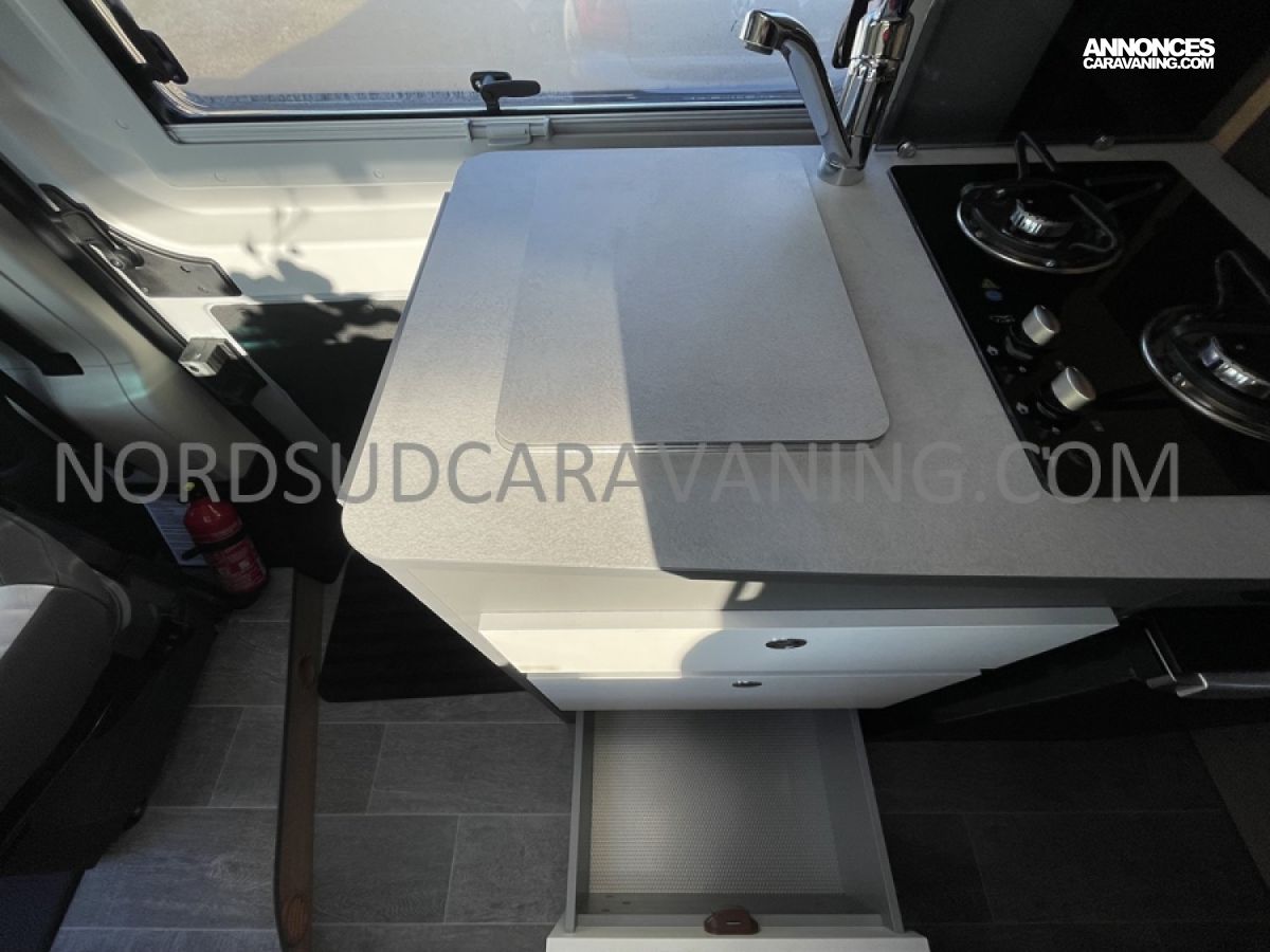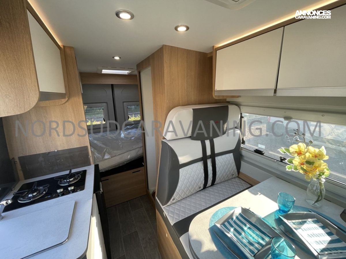 Sa dinette agréable et lumineuse se transforme en couchage d’appoint. Sa cuisine latérale pratique et fonctionnelle est équipée d’un réchaud 2 feux, évier et plan de travail rabattable. En face, une salle d’eau compacte tout-en-un qui ne manque de rien (Lavabo, miroir, WC, Douche). A l’arrière, c’est un couchage transversal confortable et agréable sur soute qui est proposé, vous permettant de ranger vos vélos, de retour de balades. Sans oublier ses nombreux rangements astucieux !