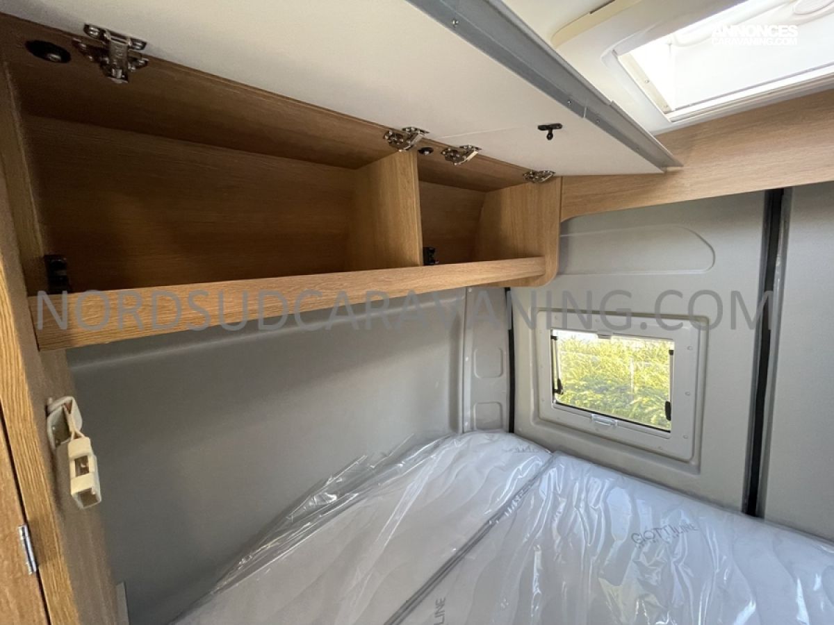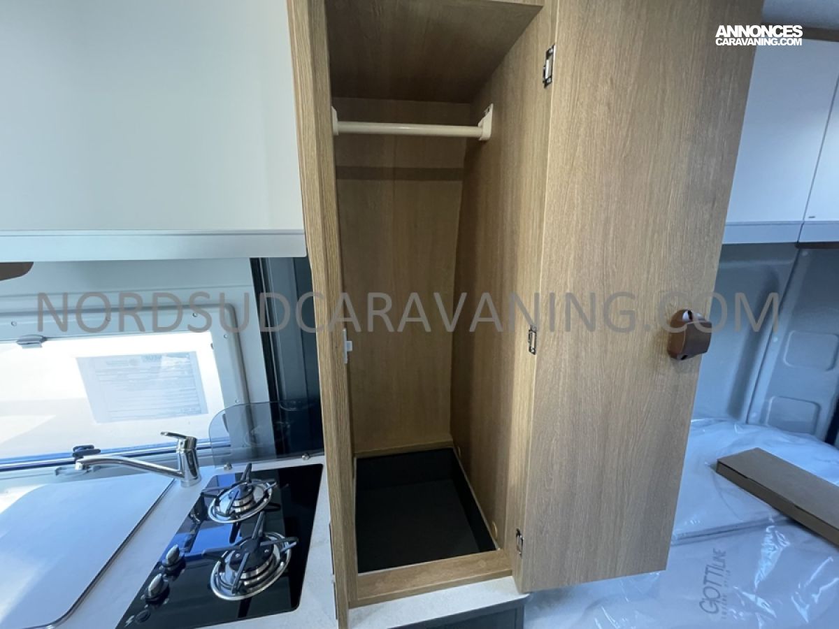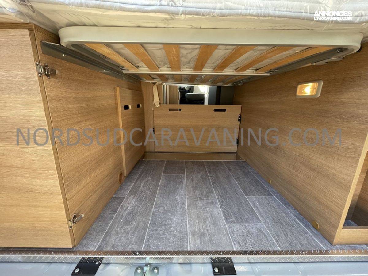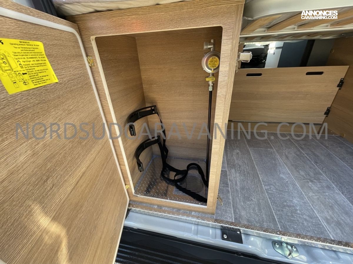 Sa dinette agréable et lumineuse se transforme en couchage d’appoint. Sa cuisine latérale pratique et fonctionnelle est équipée d’un réchaud 2 feux, évier et plan de travail rabattable. En face, une salle d’eau compacte tout-en-un qui ne manque de rien (Lavabo, miroir, WC, Douche). A l’arrière, c’est un couchage transversal confortable et agréable sur soute qui est proposé, vous permettant de ranger vos vélos, de retour de balades. Sans oublier ses nombreux rangements astucieux !