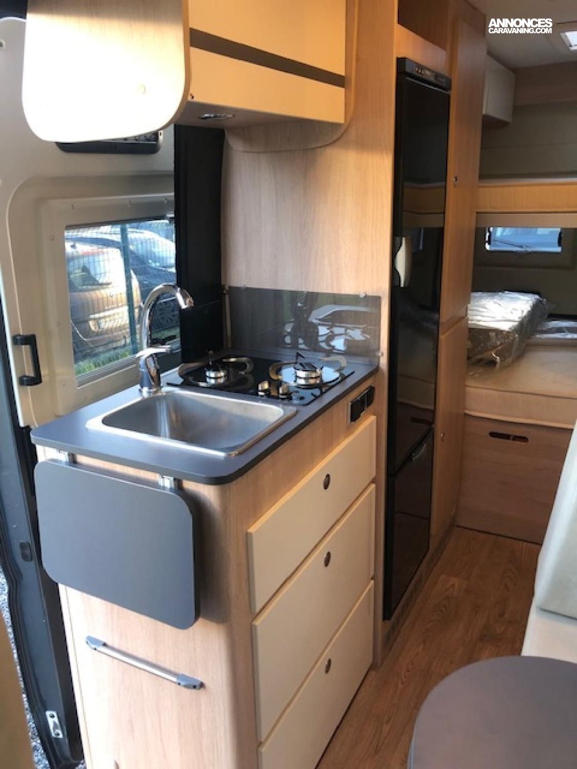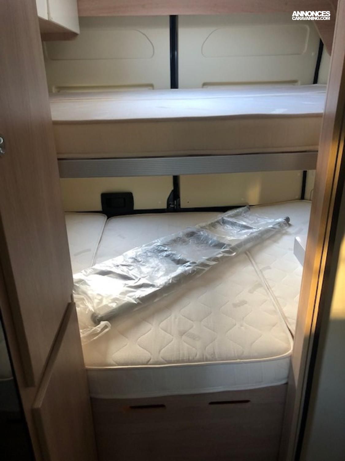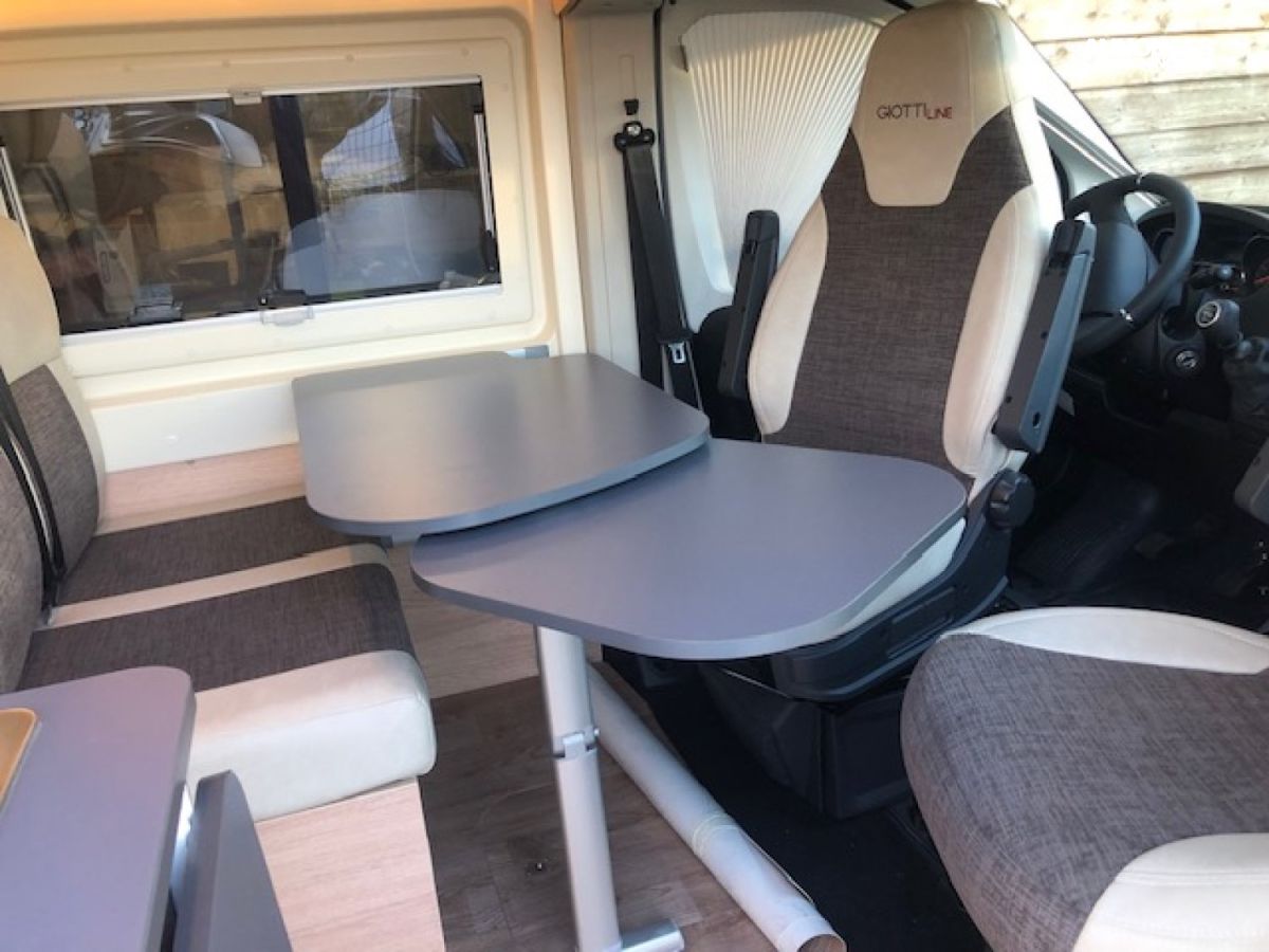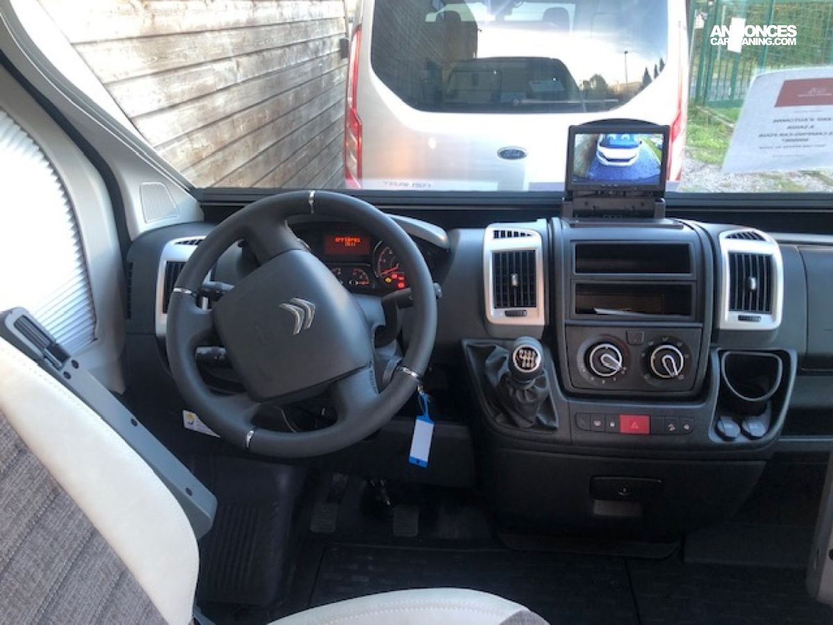 Housses de cabine coordonnées, marchepied électrique, Moustiquaire de porte cellule, Caméra de recul 9’’, Store occultant cabine, Eclairage extérieur Led, Sellerie NEBULA