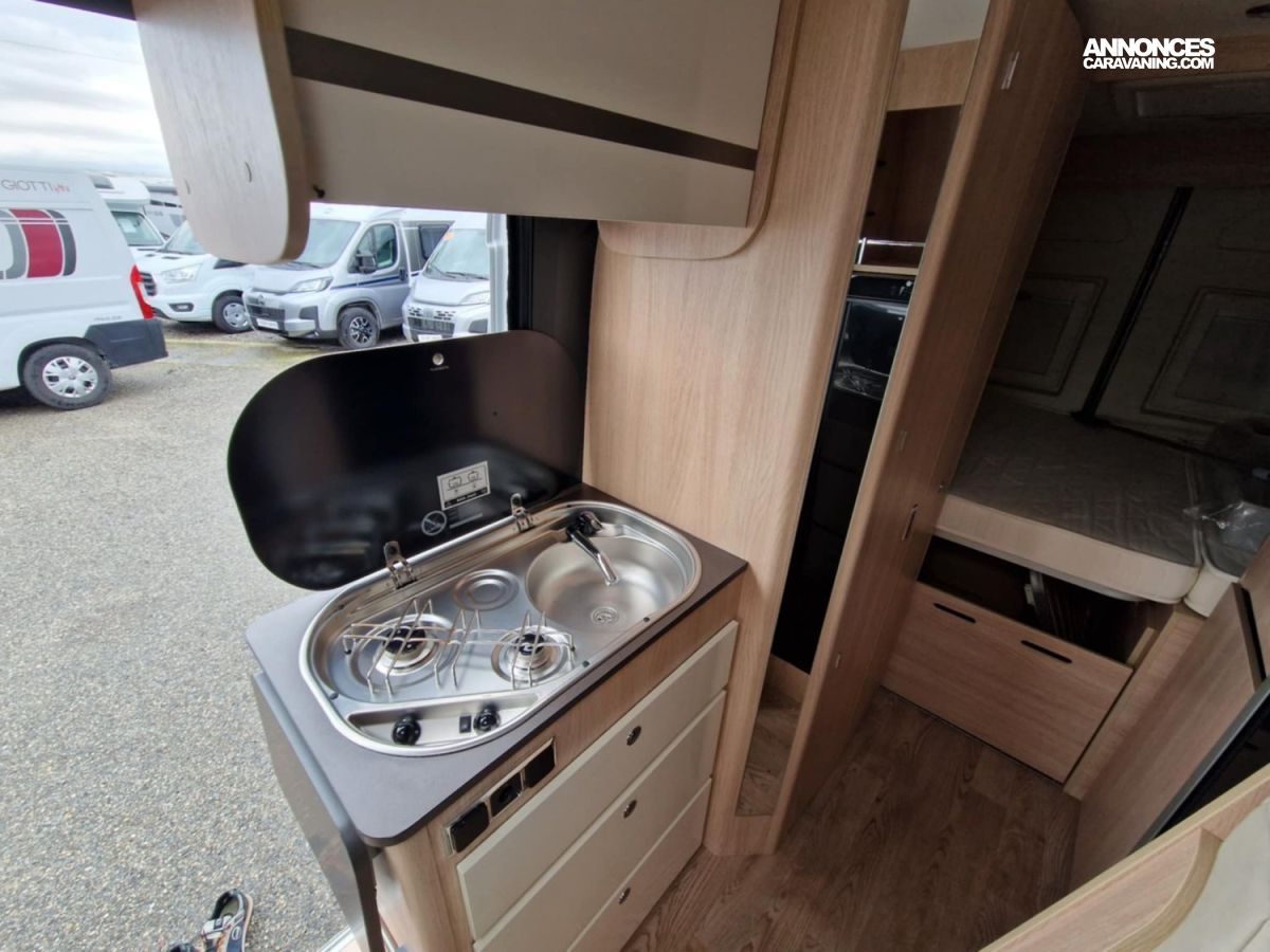 Climatisation de cabine / Traction control + Hill holder + Hill descent / Régulateur de vitesse / Start & Stop / 2° Airbag / Rétroviseurs électriques chauffants / Pare-chocs laqué / Prédisposition radio / Commande Truma CP Plus / Sommier à lattes lit arrière / Dinette convertible en lit simple / Feux anti-brouillard