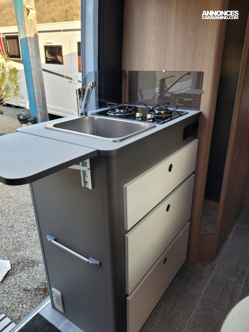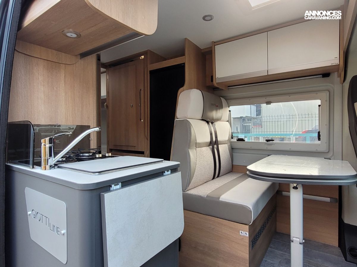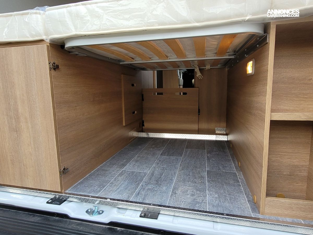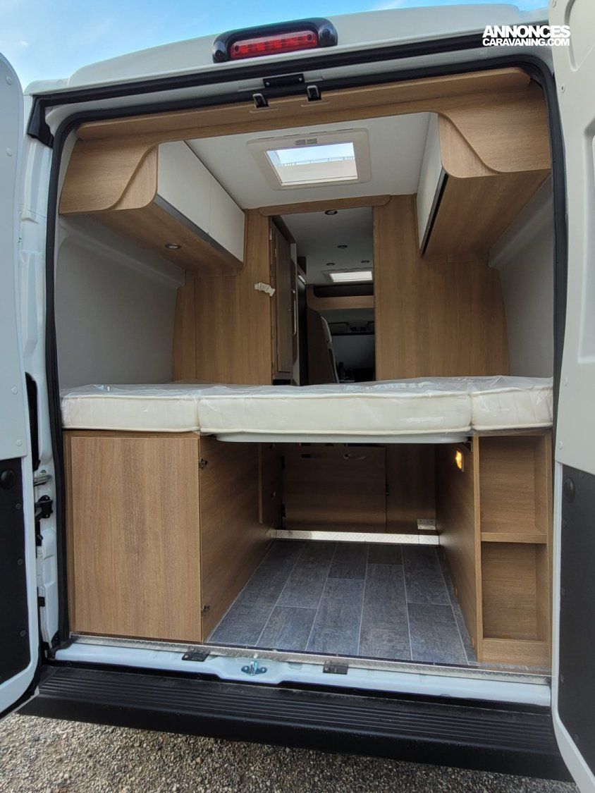 Lit arrière 2 places permanent + lit 1 place transformable à partir de la dinette.