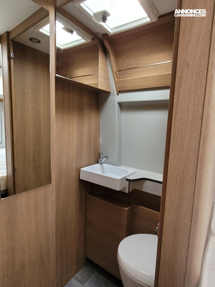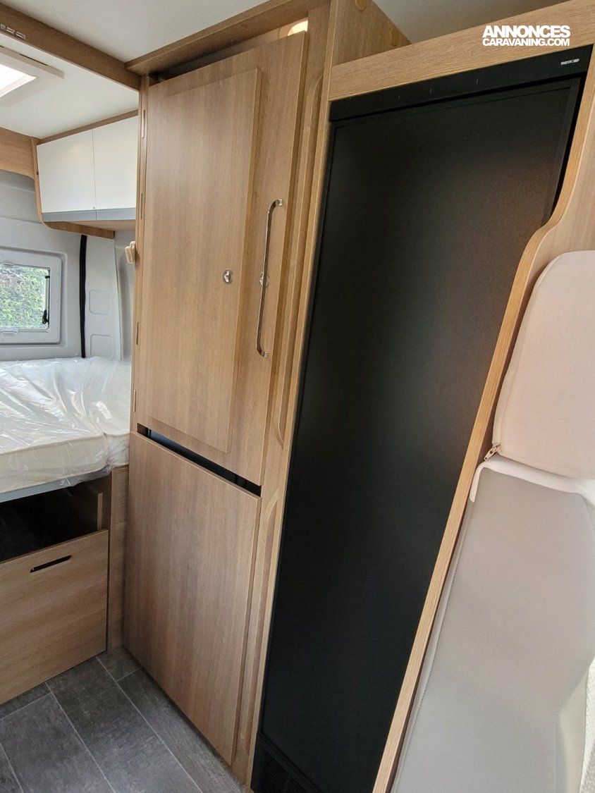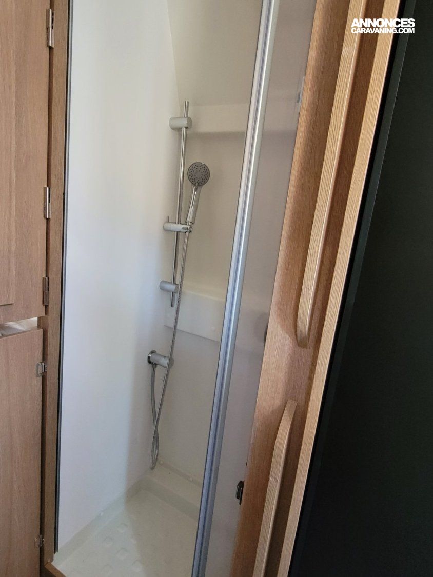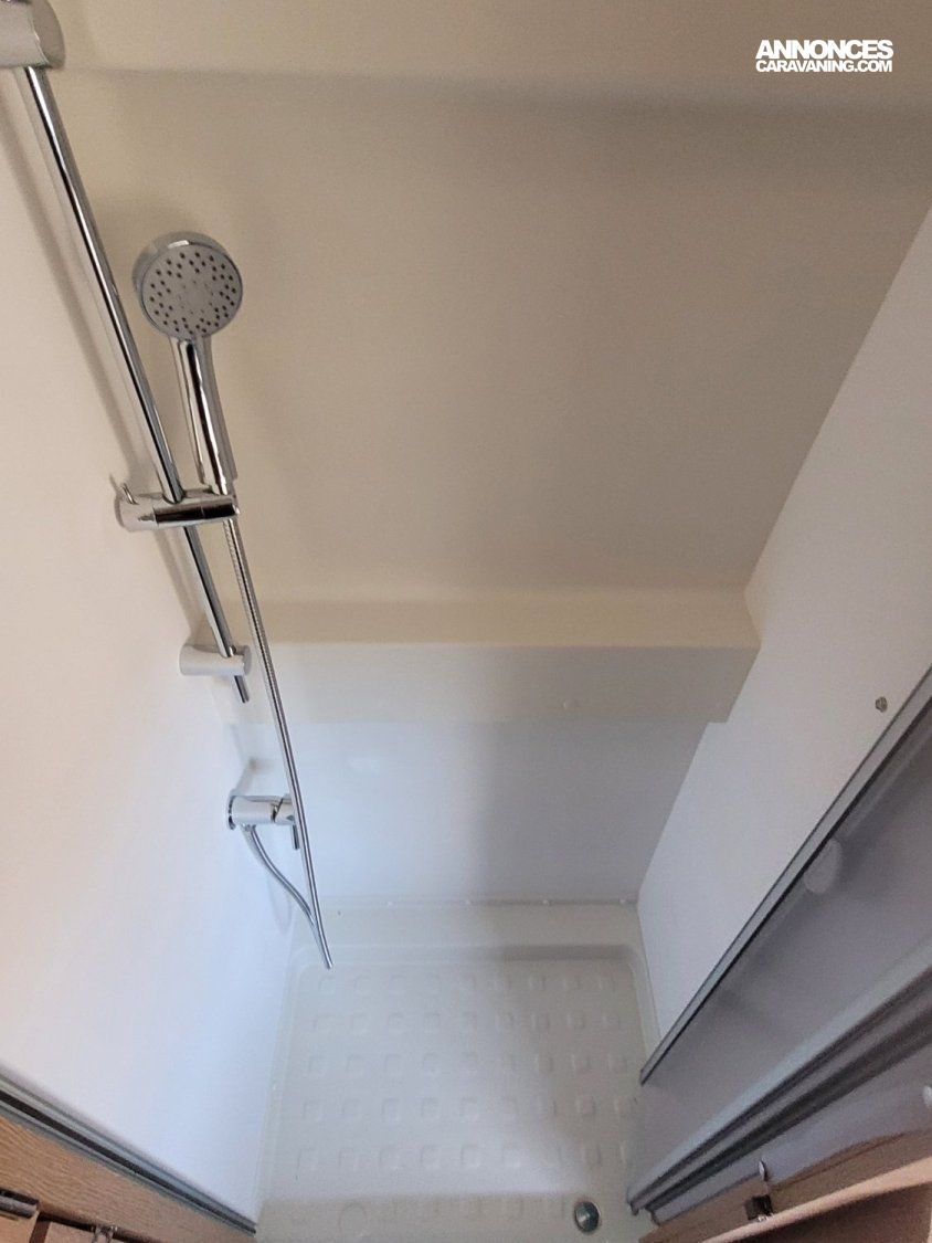Rare dans un fourgon : Vaste cabinet de toilette avec douche séparée. Implantation exclusive du groupe RAPIDO : MODUL’SPACE®, qui permet de disposer d’une douche complètement indépendante avec porte rigide grâce à un ingénieux système breveté. Vous bénéficierez d’un grand cabinet de toilette central avec un espace WC et douche complètement séparé entre eux et fermé par rapport à la partie jour de l’habitacle.