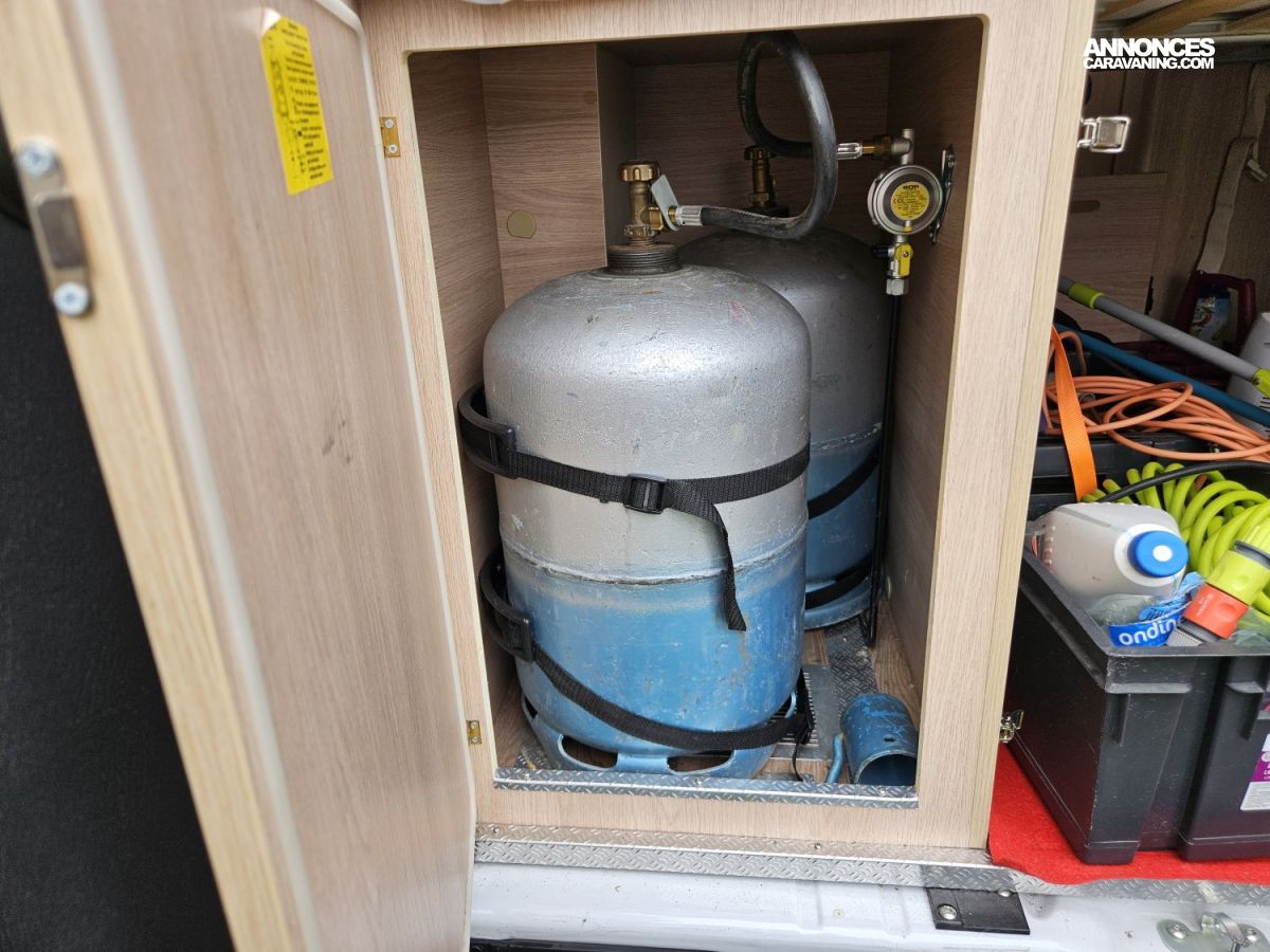 CHAUFFAGE COMBI TRUMA 4, REFRIGERATEUR/CONGELATEUR, GAZINIERE 2 FEUX, DOUCHE ET WC SEPARES, ECLAIRAGE LED, MOQUETTE CELLULE, MOUSTIQUAIRE DE PORTE CELLULE, RALLONGE DE TABLE, REFRIGERATEUR TRI MIX, STORES PLISSES DE CABINE