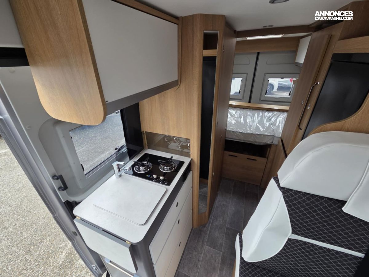 Sa dinette agréable et lumineuse se transforme en couchage d’appoint. Sa cuisine latérale pratique et fonctionnelle est équipée d’un réchaud 2 feux, évier et plan de travail rabattable. Sur la droite, une salle WC unique, et en face, Une douche indépendante. A l’arrière, c’est un lit transversal, pour des nuits confortables et agréables. Sans oublier ses nombreux rangements astucieux ! Pourquoi faire des compromis quand le GIOTTIVAN 60T 1ère Edition existe. C’est le véhicule qu’il vous faut !!!