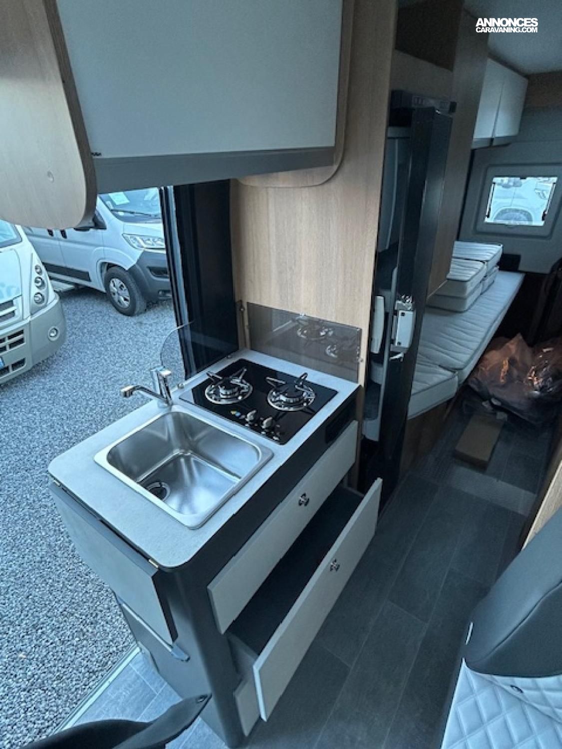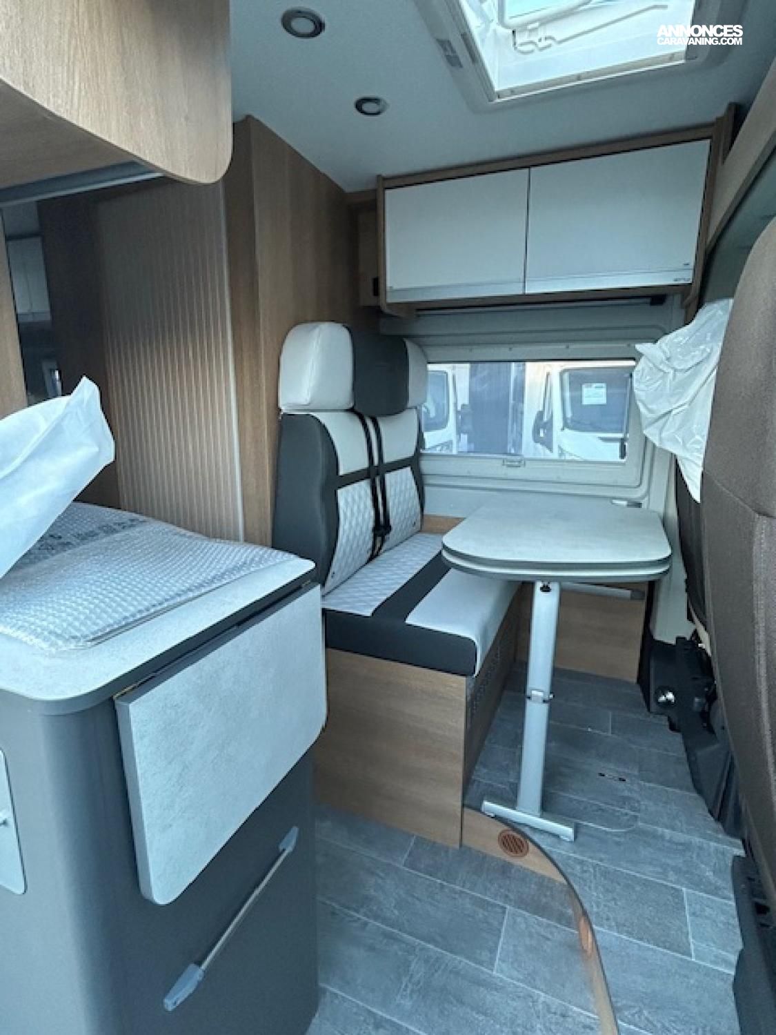 Châssis 3.5T – Boite de vitesse automatique – Climatisation cabine – ESP avec traction Plus - Aide à la montée et à la descente – Start&Stop – Régulateur de vitesse – Airbags – Rétroviseurs électriques et chauffants – pneus M+S 4 saisons – Jantes alu 16’’ – Radio 9’’ (Apple car play et Android) avec commandes au volant – Housses sièges cabine coordonnées - Caméra de recul – Volant et pommeau de vitesse cuir – Pare-chocs laqué – Antibrouillards – Isofix - Chauffage Truma combi 4000 diésel Stores plissés en cabine - Baies affleurantes – Moustiquaire de porte – Marche-pied électrique – Lit supplémentaire dînette – Store extérieur - Moquette cabine + cellule
