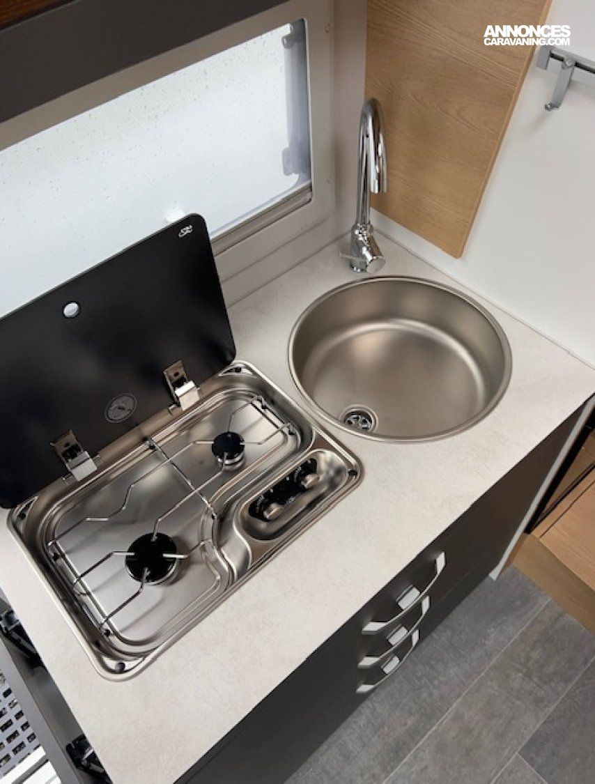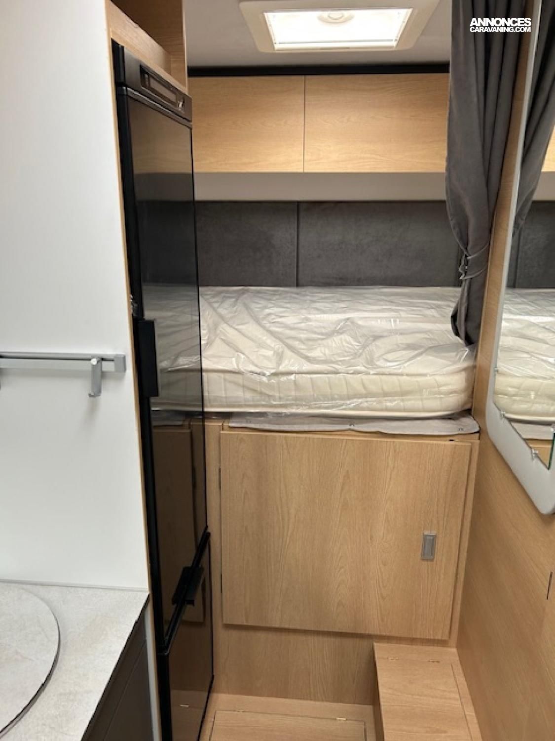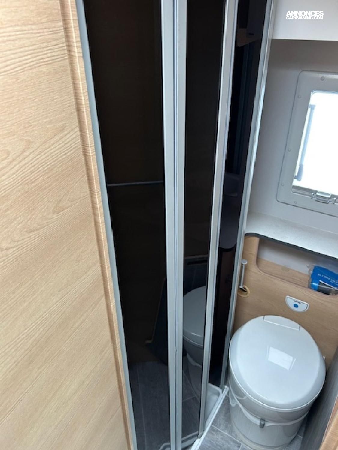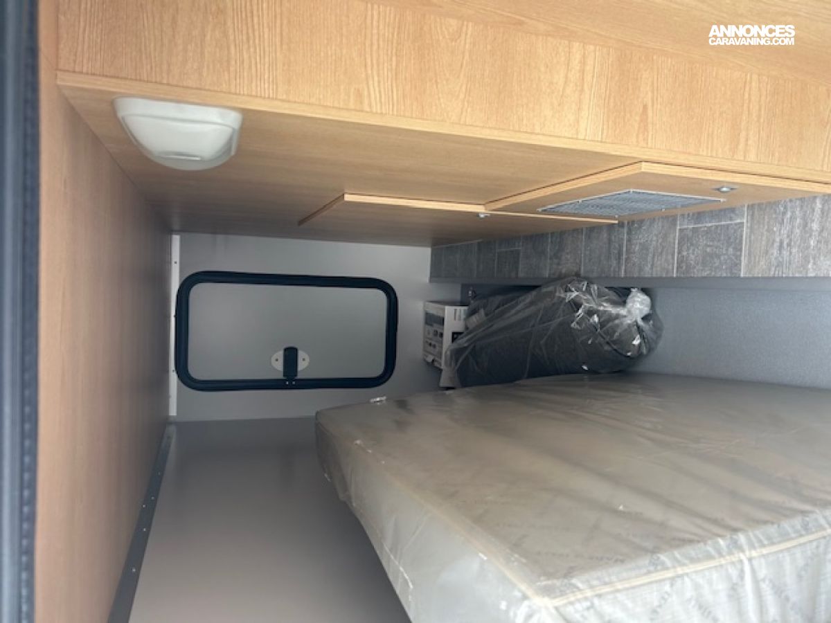Climatisation cabine, ESP avec aide à la montée/descente, Traction +, régulateur de vitesse, 2 Airbags, pré-équipement radio, Suspensions AR renforcées, Housses sur sièges cabine, Eaux usées chauffées, Moustiquaire porte cellule, Sommier à lattes, Pare-chocs peint, éclairage extérieur LED, commande Truma