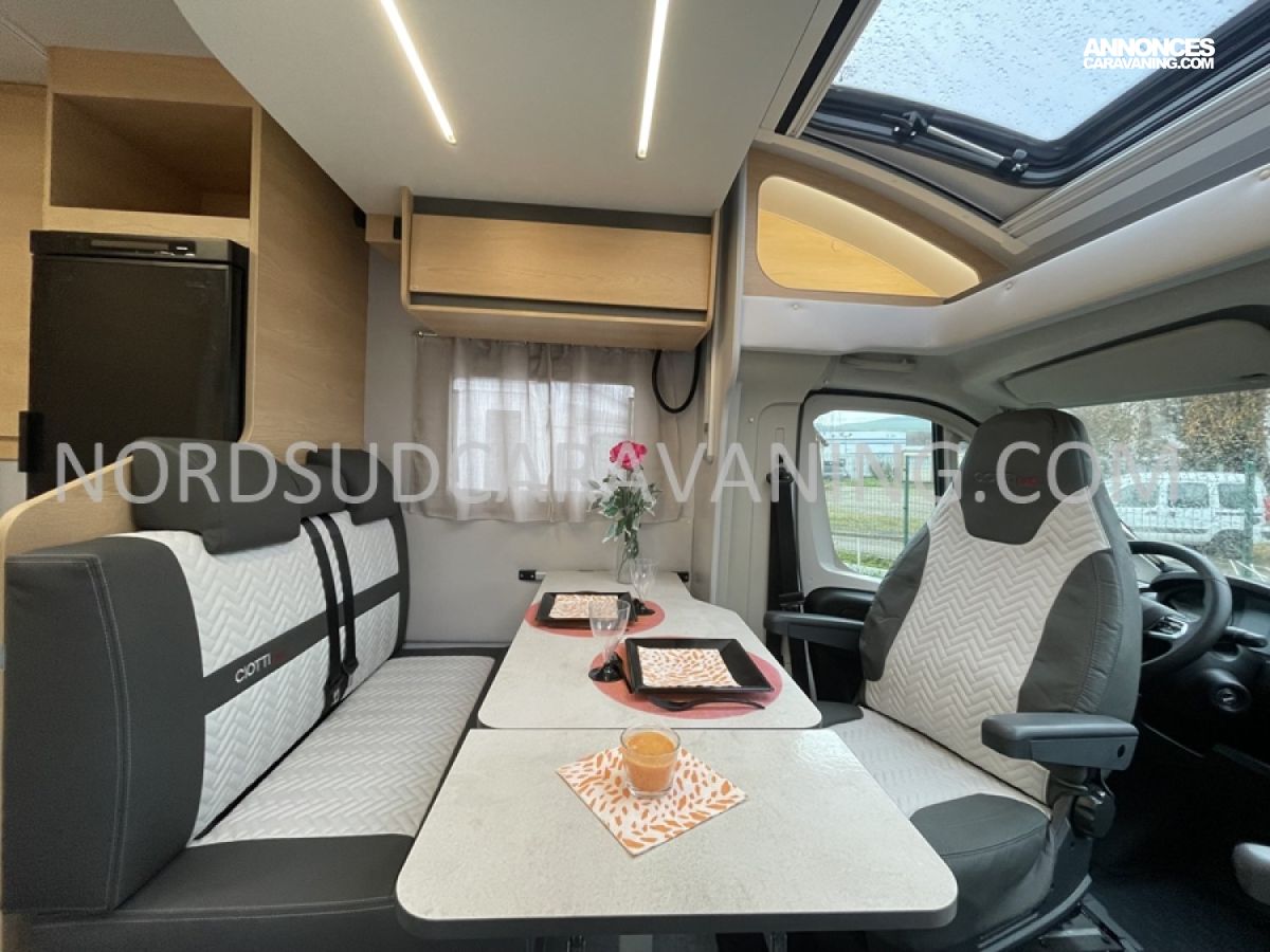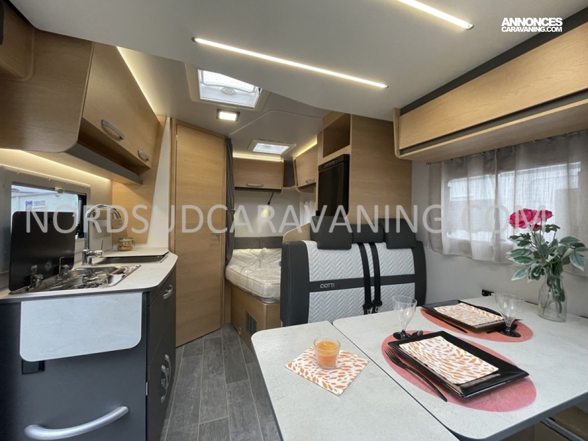Magnifique Camping-car profilé GIOTTILINE SIENA 330 Première Edition compact, pratique et fonctionnel avec un salon généreux qui va de la grande cuisine au grand réfrigérateur en passant par la douche séparée. Le tout concentré en seulement 5.99 m